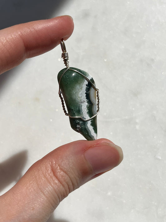 “Imagine” 8th Vein Ocean Jasper Wire Wrap Pendant (925 Sterling Silver)
