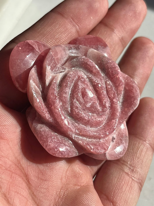 Gemmy Rhodochrosite Rose Carving #3