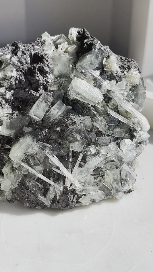 Green Apophyllite w/Scolecite Sprays on Basalt Matrix Specimen #30