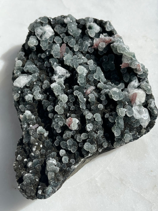 Clúster de calcedonia negra y apofilita #1