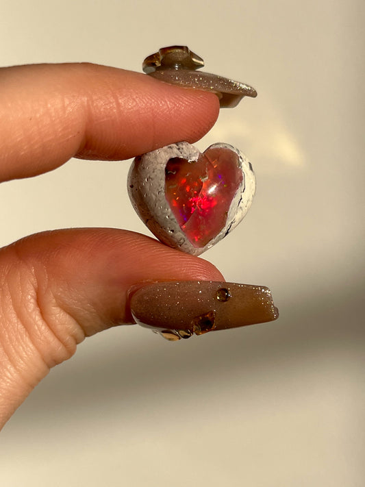 Mexican Fire Opal Heart Carving w/ Dendritic Inclusions #24