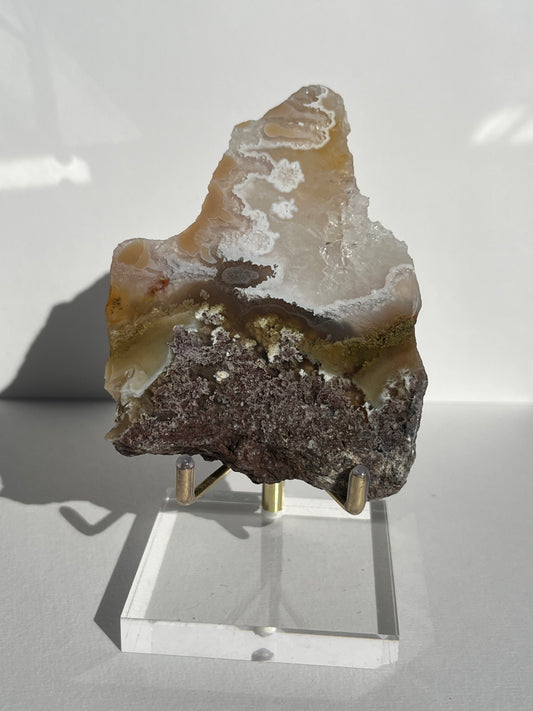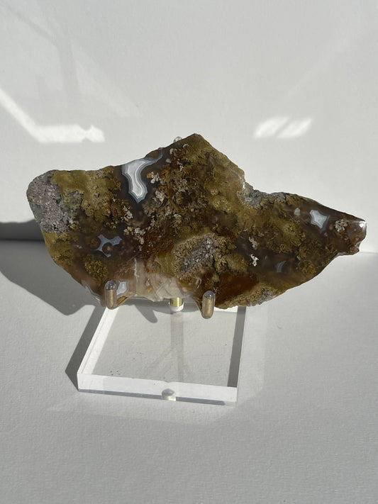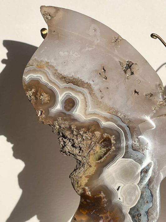 Nebula Agate with Dendritic Inclusions Butterfly on Stand