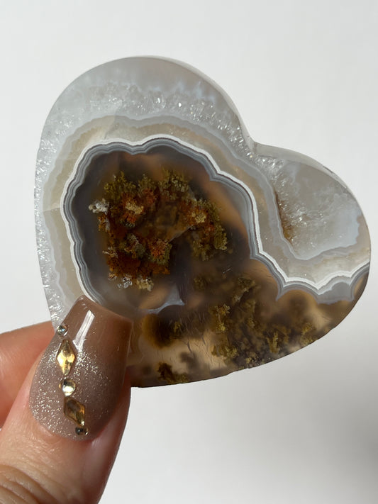 Nebula Agate with Scenic Moss Flatback Heart with Dendritic Inclusions J