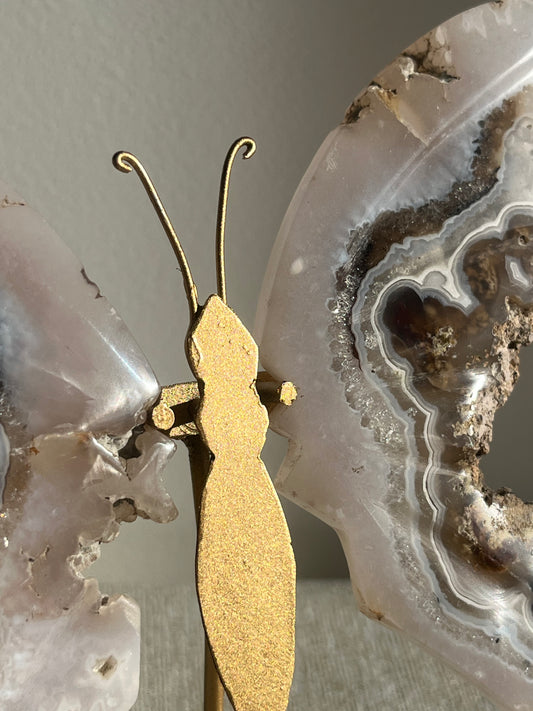 Nebula Agate with Scenic Moss and Dendritic Inclusions Butterfly Wings on Stand A
