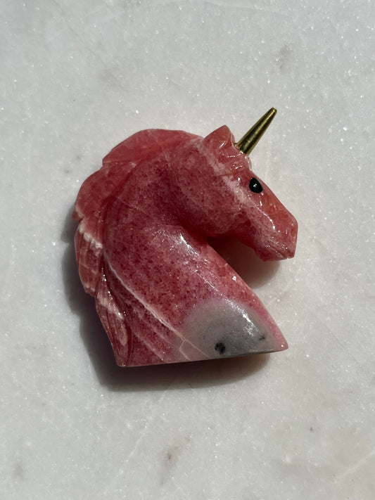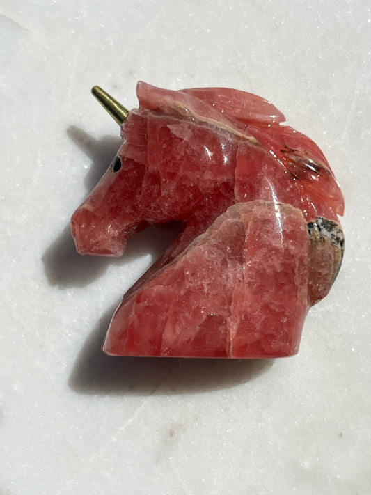 ‘Asli’ Gemmy Rhodochrosite Unicorn w/Brass Horn