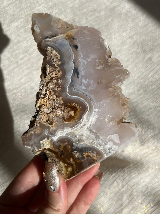 Orbicular Nebula Agate and Scenic Moss Slab with Dendritic Inclusions H