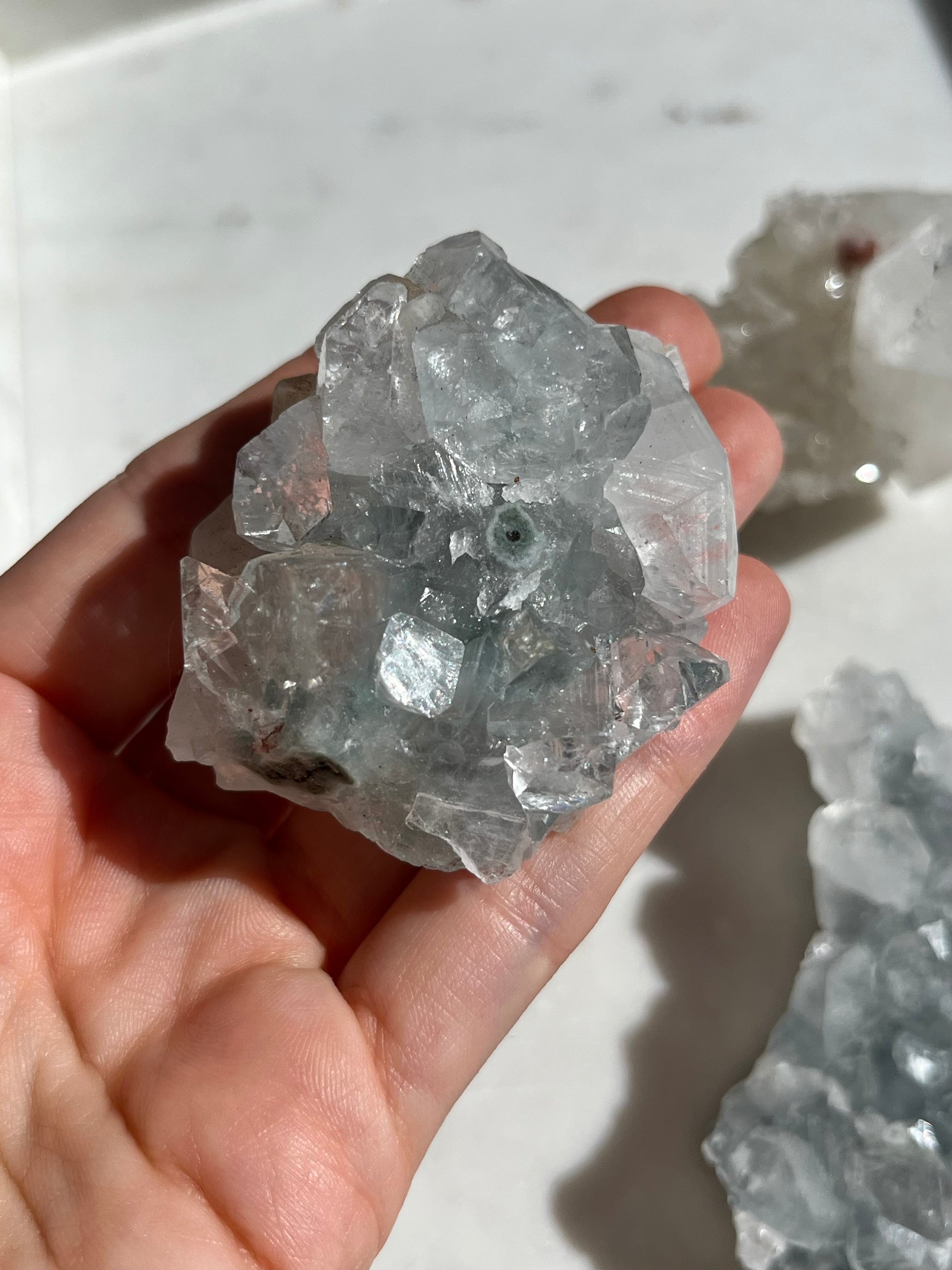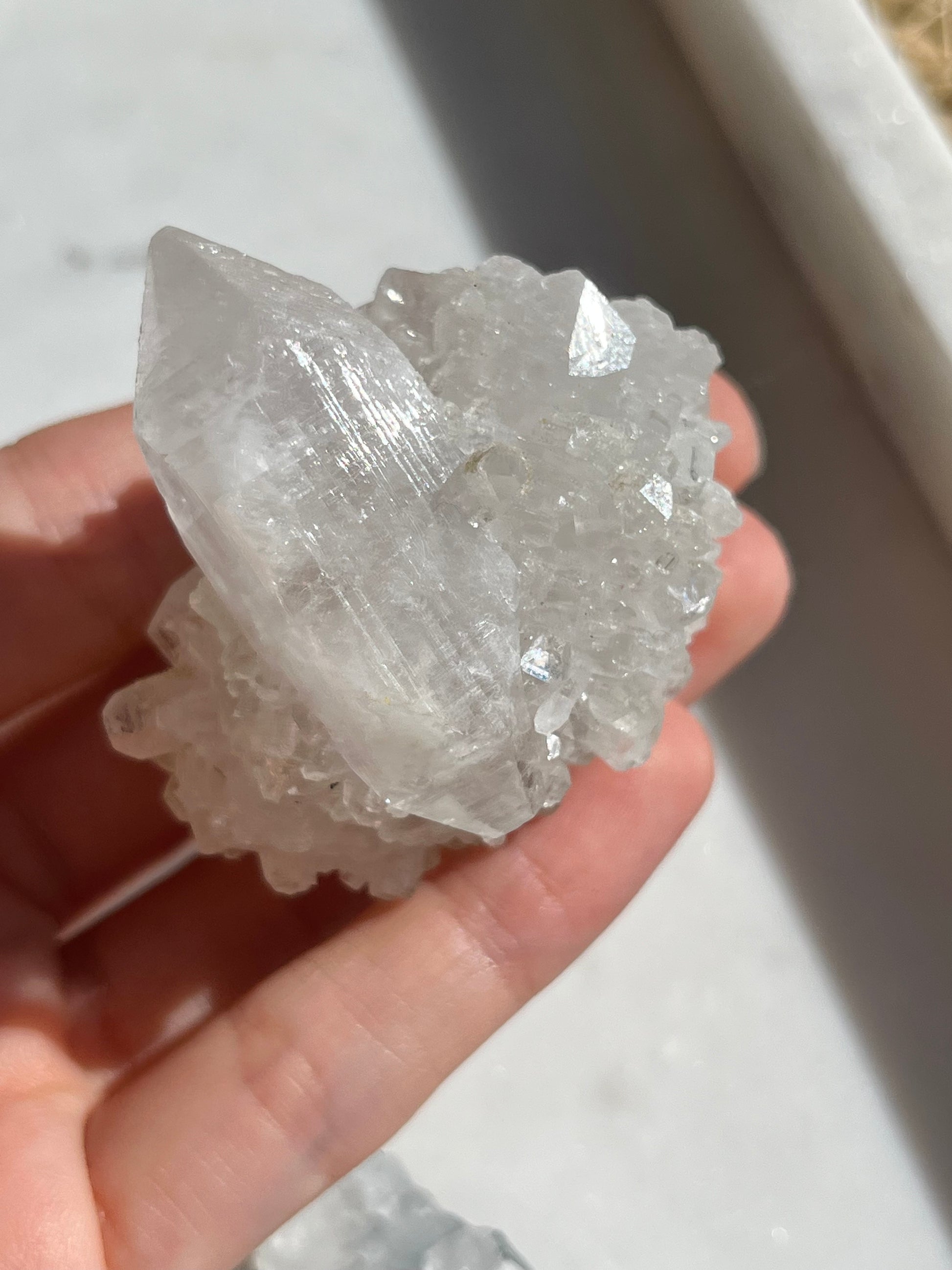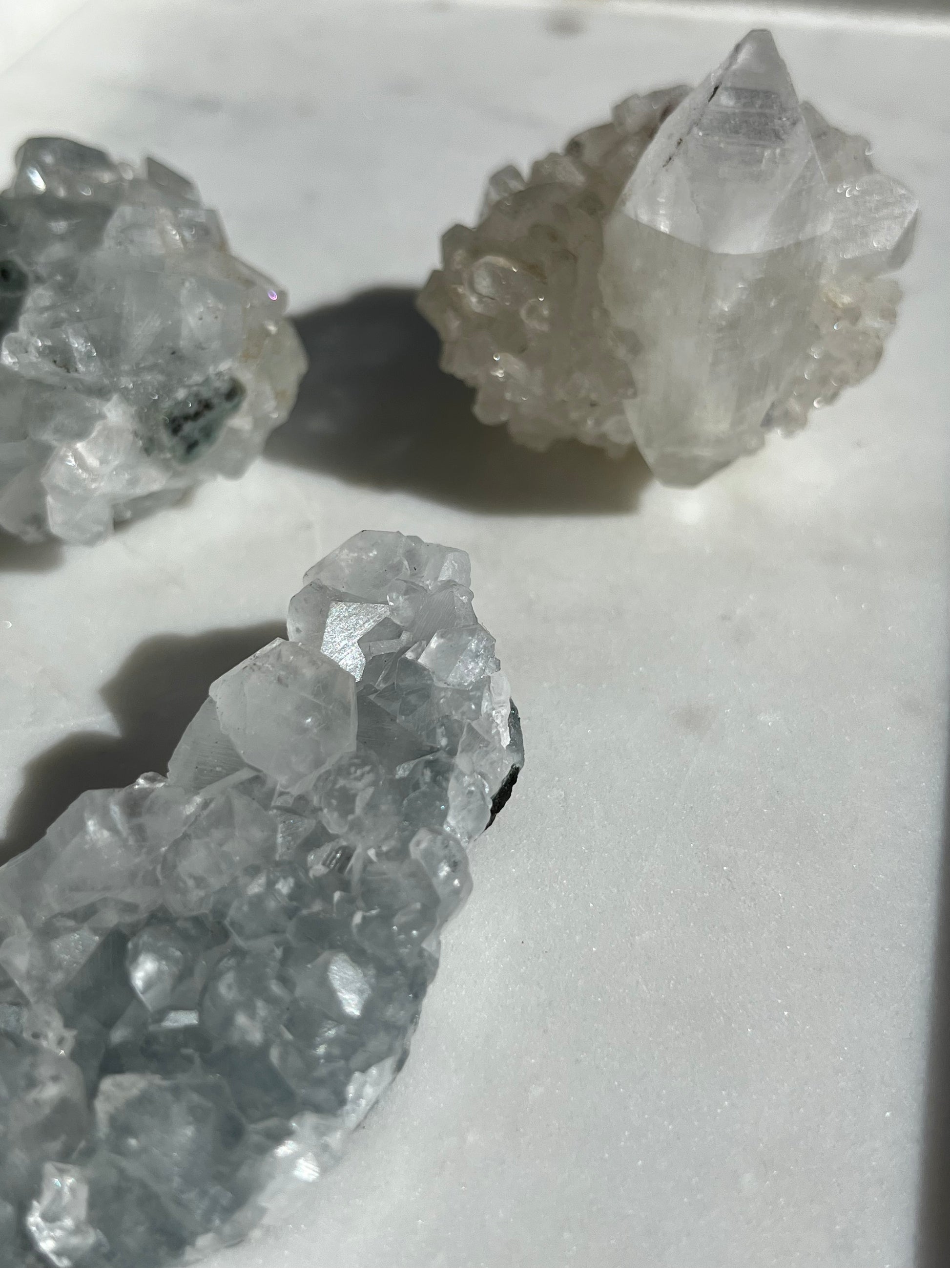 Una piedra profundamente psíquica recomendada para quienes desean expandir su conexión espiritual, conectarse con su lado intuitivo y expandir sus dones energéticos. La apofilita es popular entre los curanderos de reiki debido a esto. Un cristal poderoso para meditar y recibir orientación.
