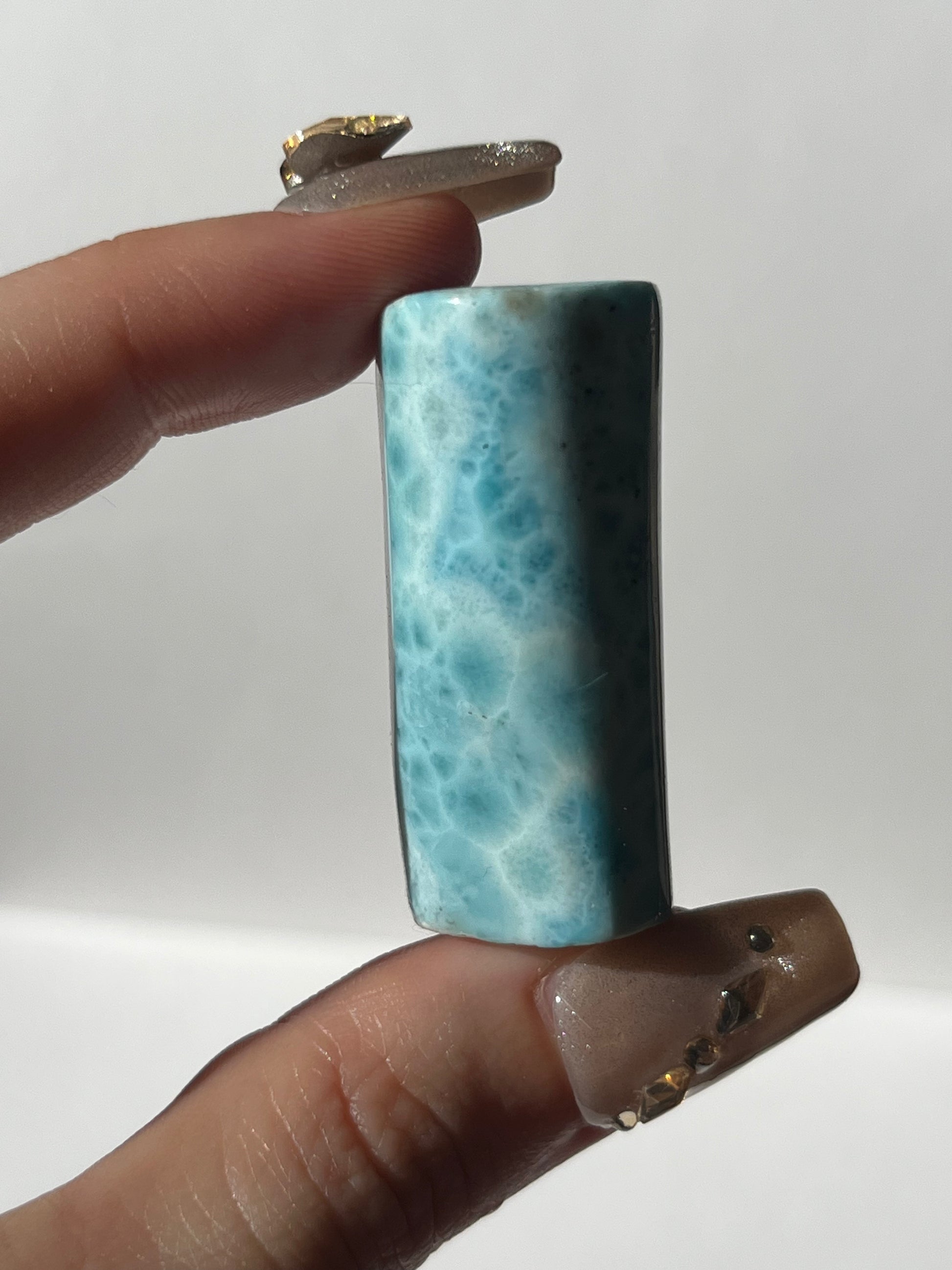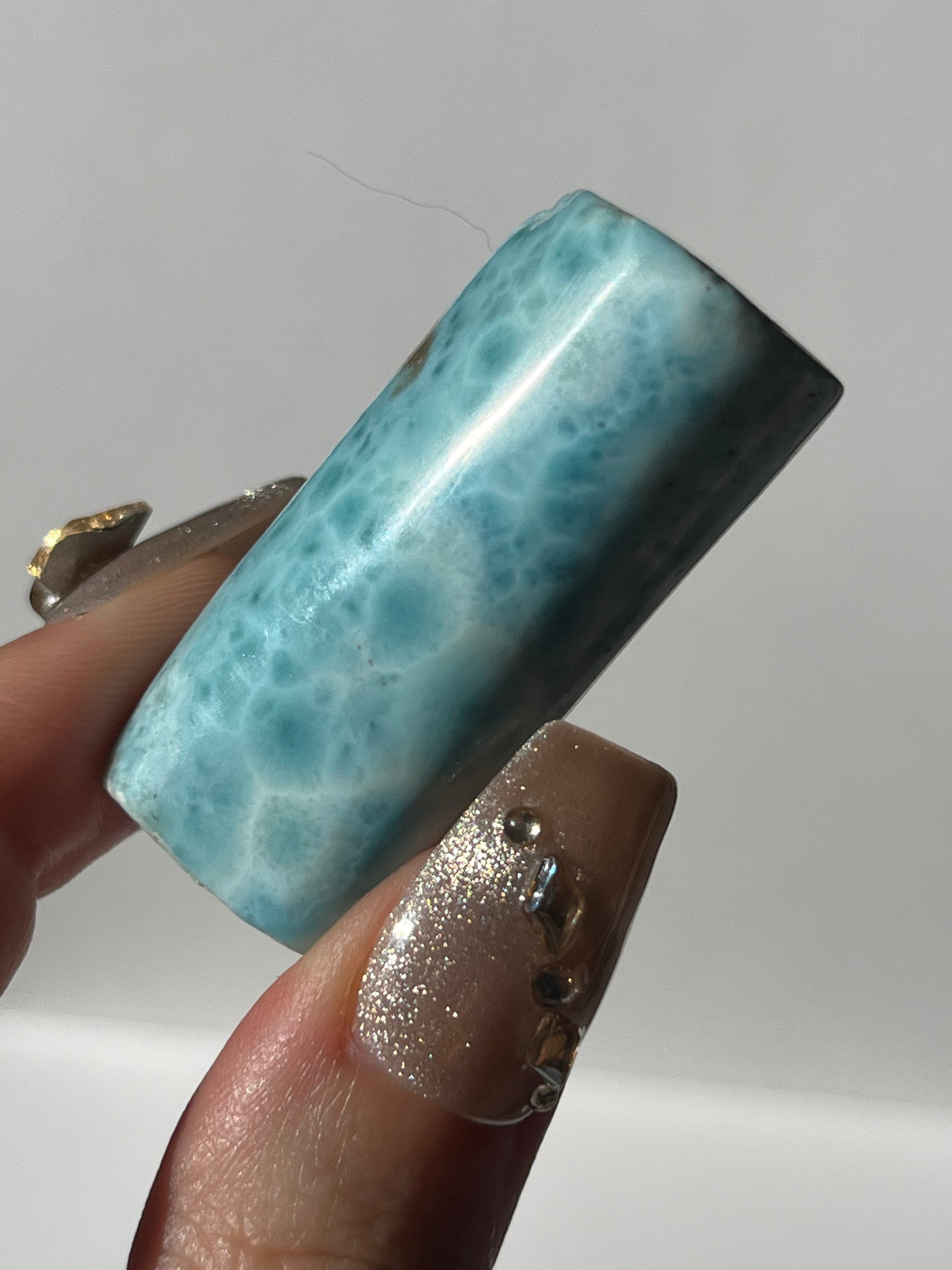Larimar carries a calming, oceanic energy that soothes emotions and encourages clear, heartfelt communication. Its tranquil blue tones support balance, self-expression, and gentle emotional release, helping you navigate change with serenity and steady inner strength.