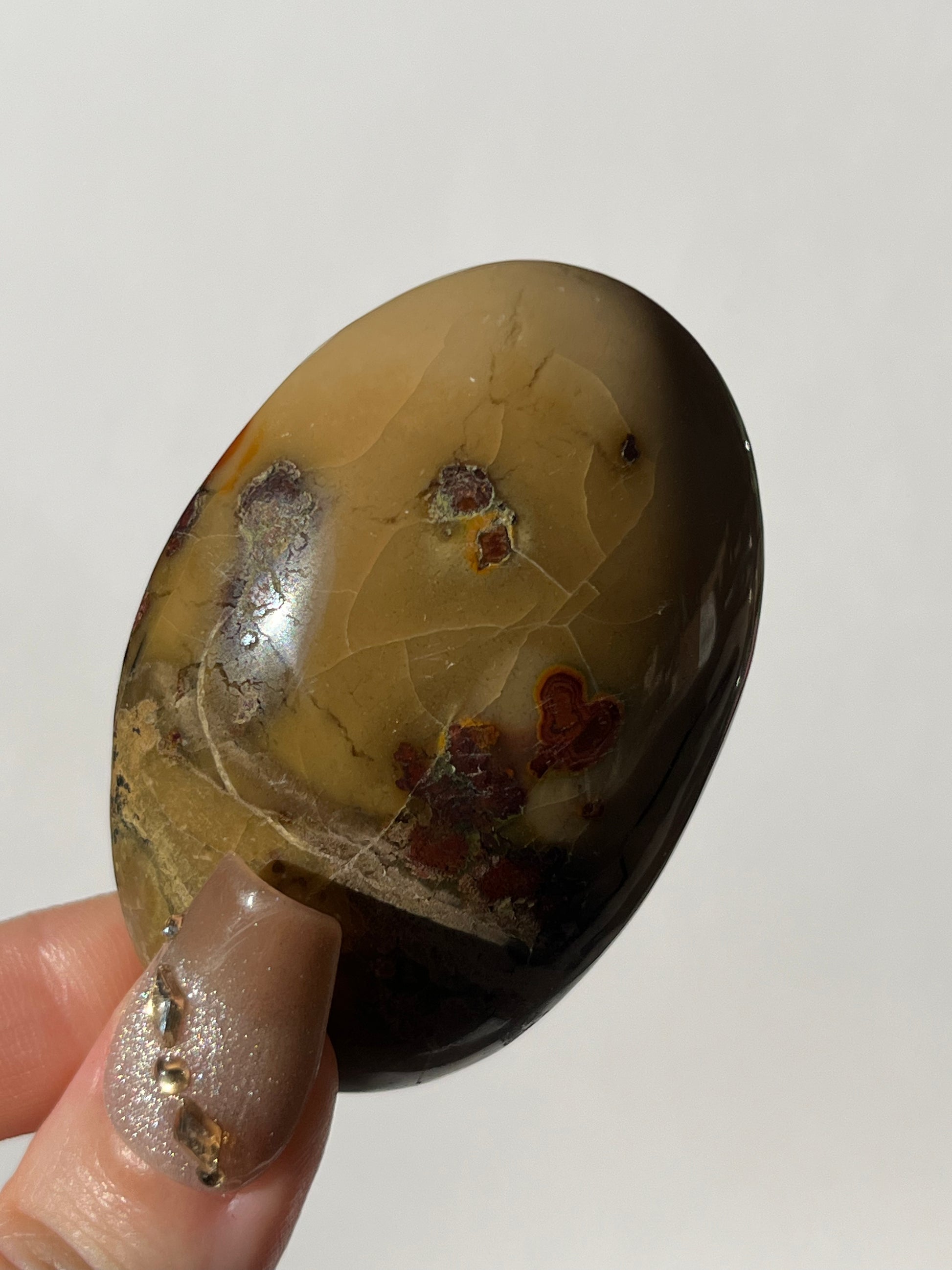 Named by Priestess Crystals, Batu Seniman is a distinctive Indonesian Picture Jasper prized for its ceramic-like tones, nature-inspired motifs, and antiquated surface character. Its aesthetic depth and cultural narrative make it a highly desirable piece for collectors drawn to artful, story-rich stones.