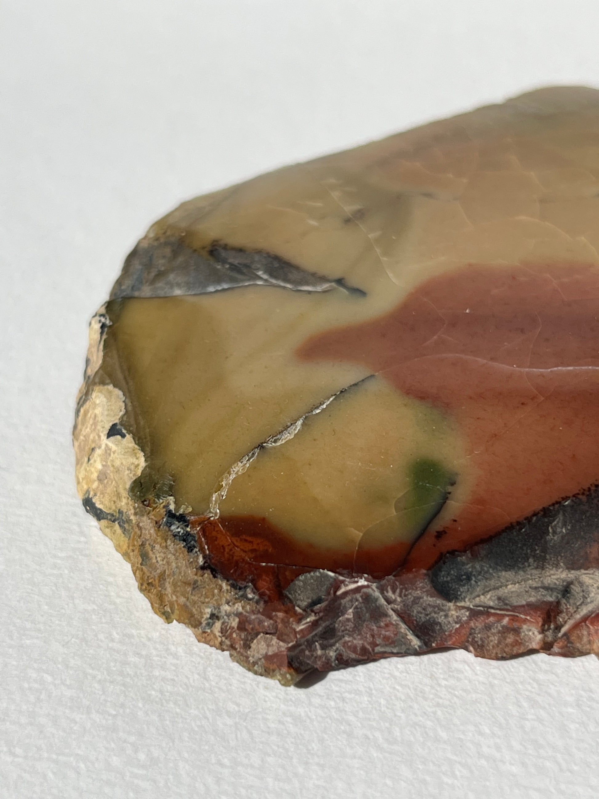Named by Priestess Crystals, Batu Seniman is a distinctive Indonesian Picture Jasper prized for its ceramic-like tones, nature-inspired motifs, and antiquated surface character. Its aesthetic depth and cultural narrative make it a highly desirable piece for collectors drawn to artful, story-rich stones.