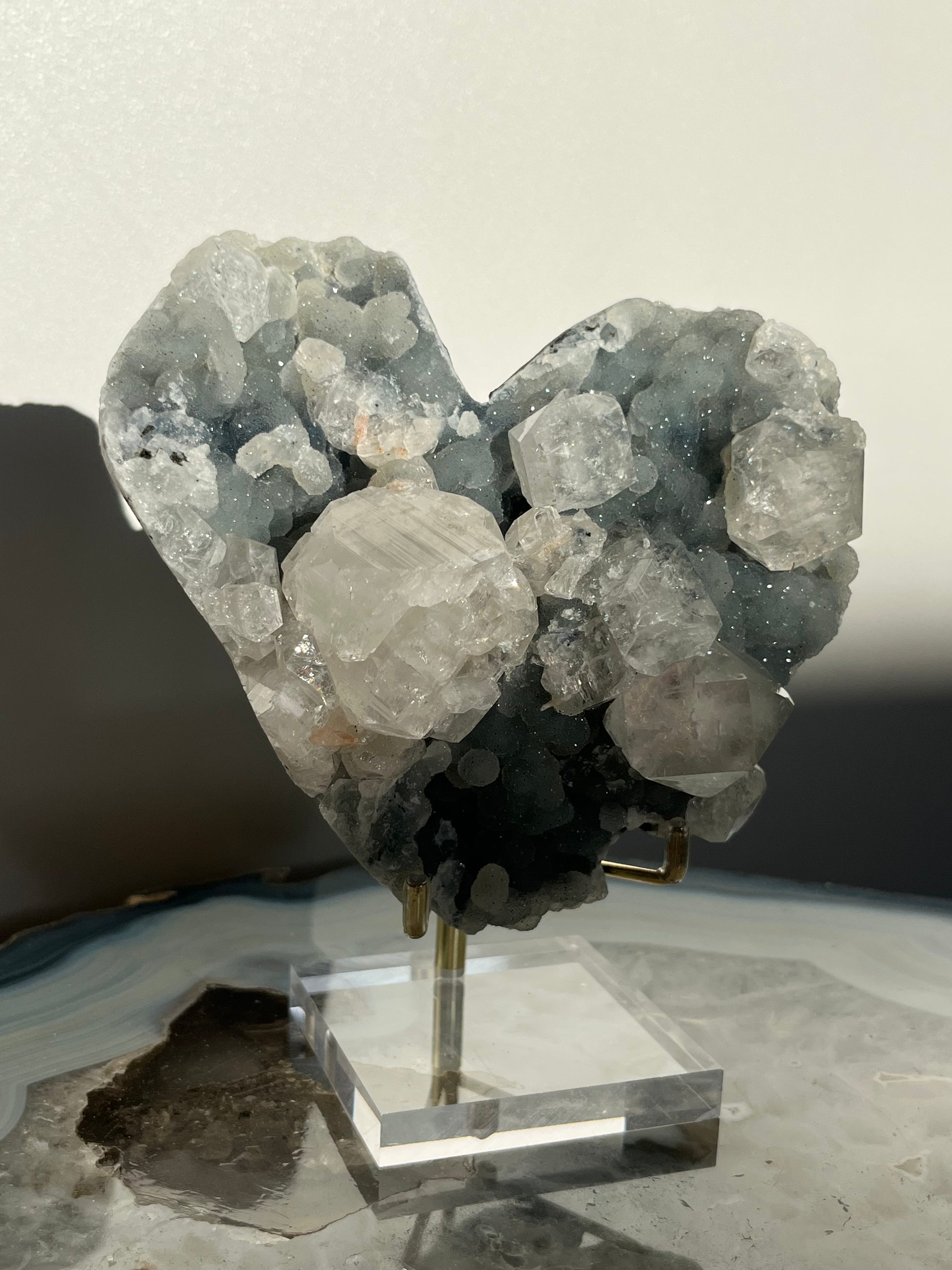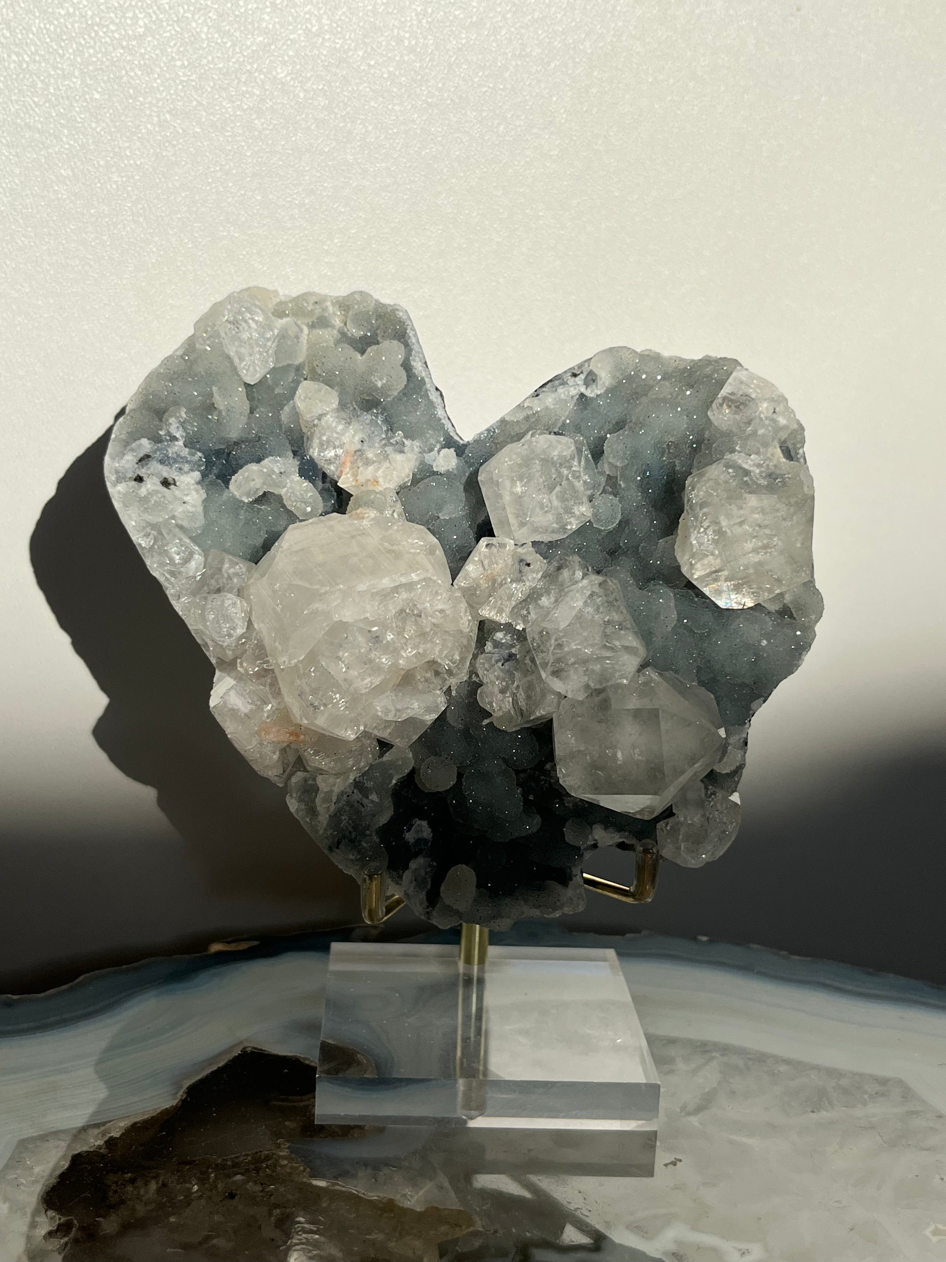 Heart Shaped Blue Chalcedony and Apophyllite with Stilbite Specimen S