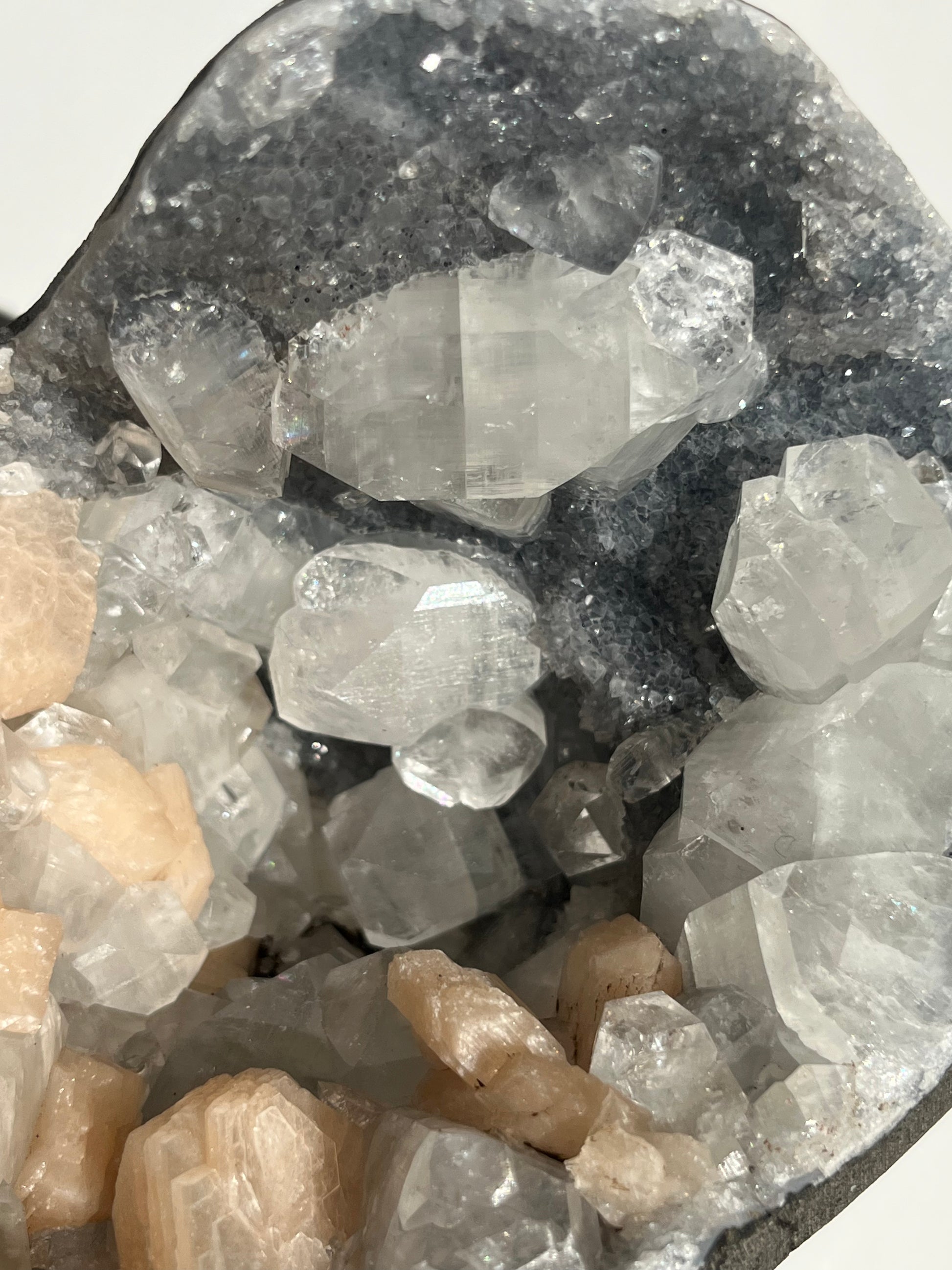 Blue Chalcedony and Apophyllite with Peach Stilbite Specimen D