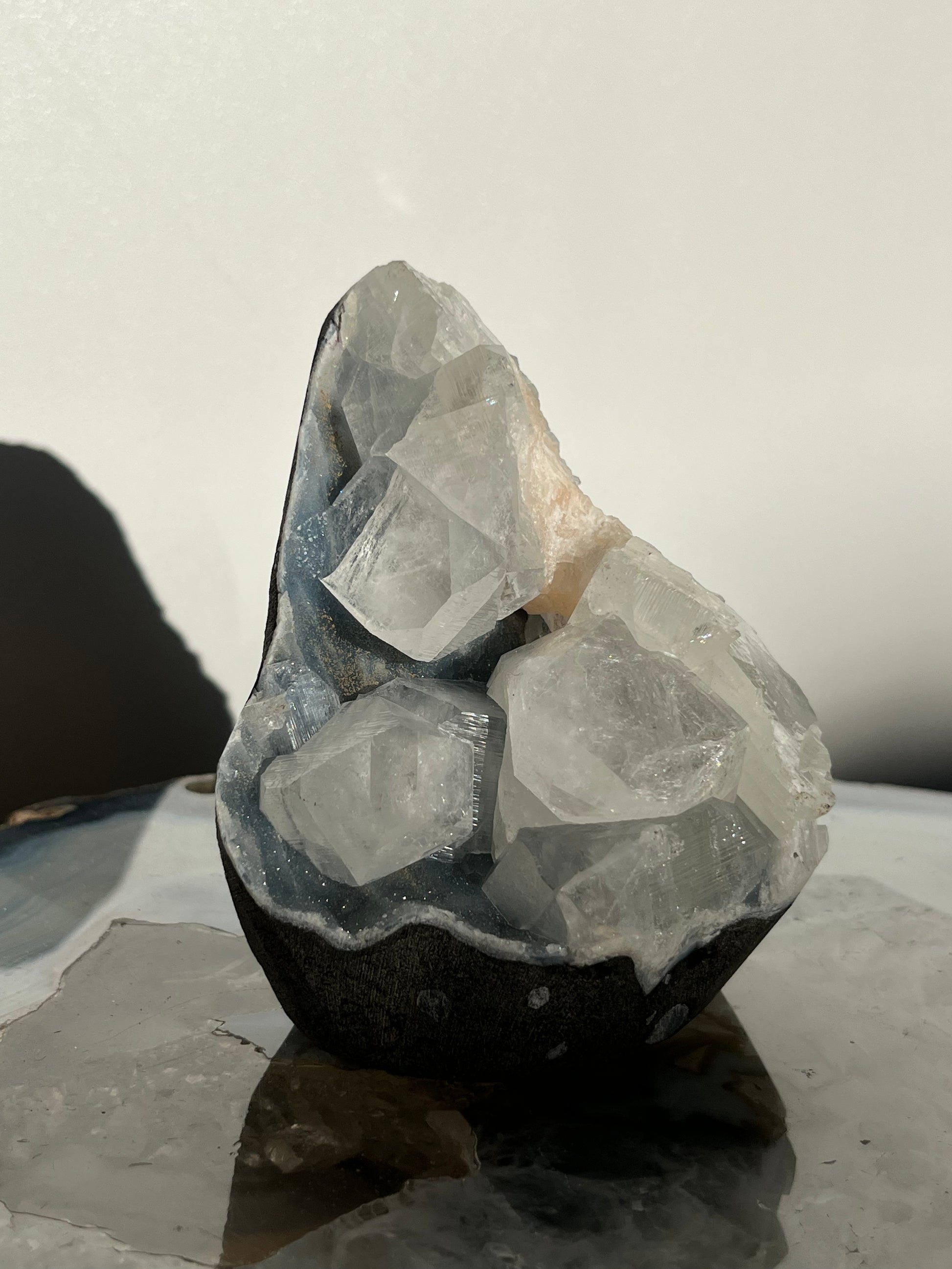 Blue Chalcedony radiates calm, clarity, and gentle communication. Its soft blue tones soothe the spirit, ease stress, and encourage honest self-expression.