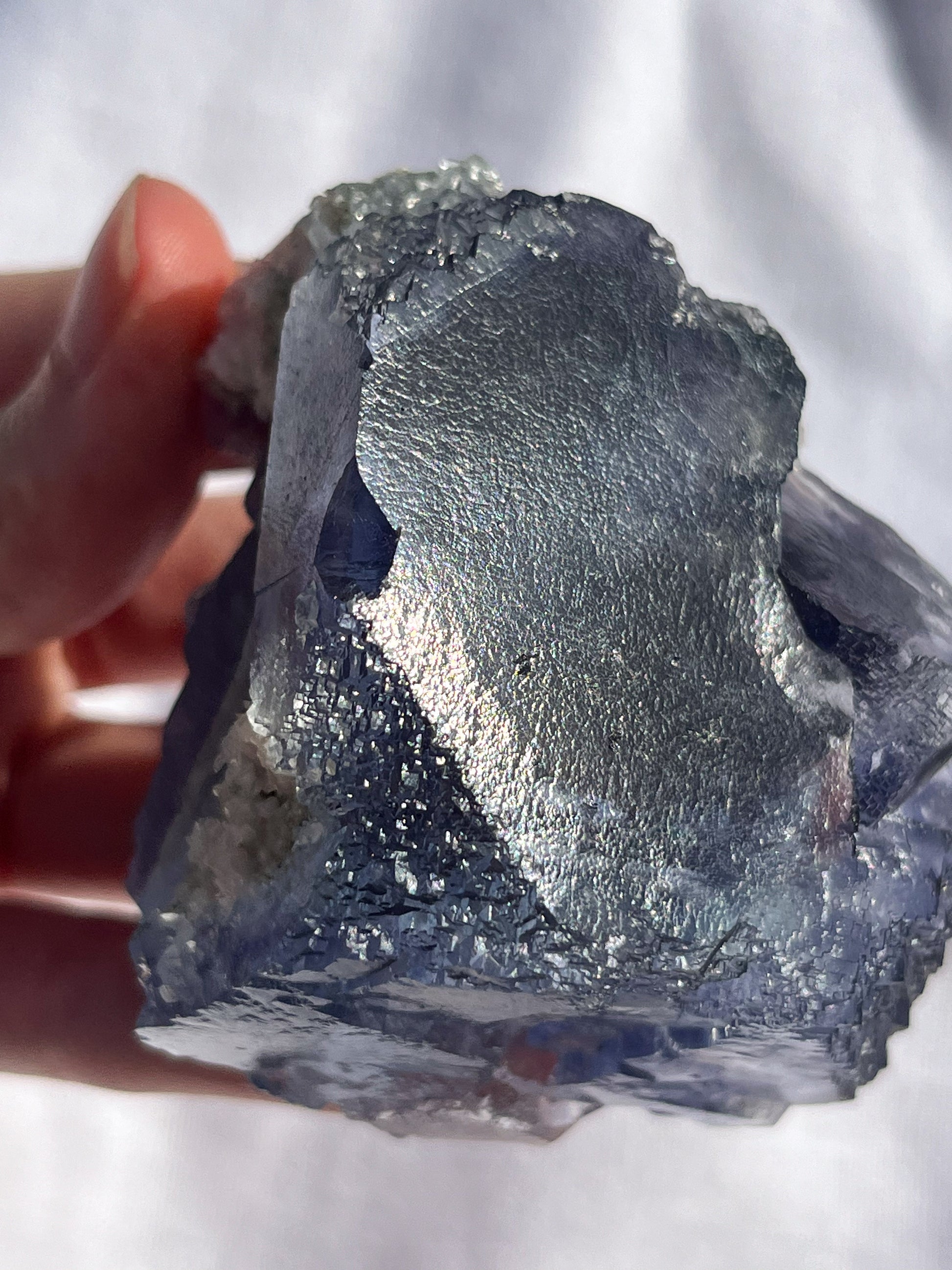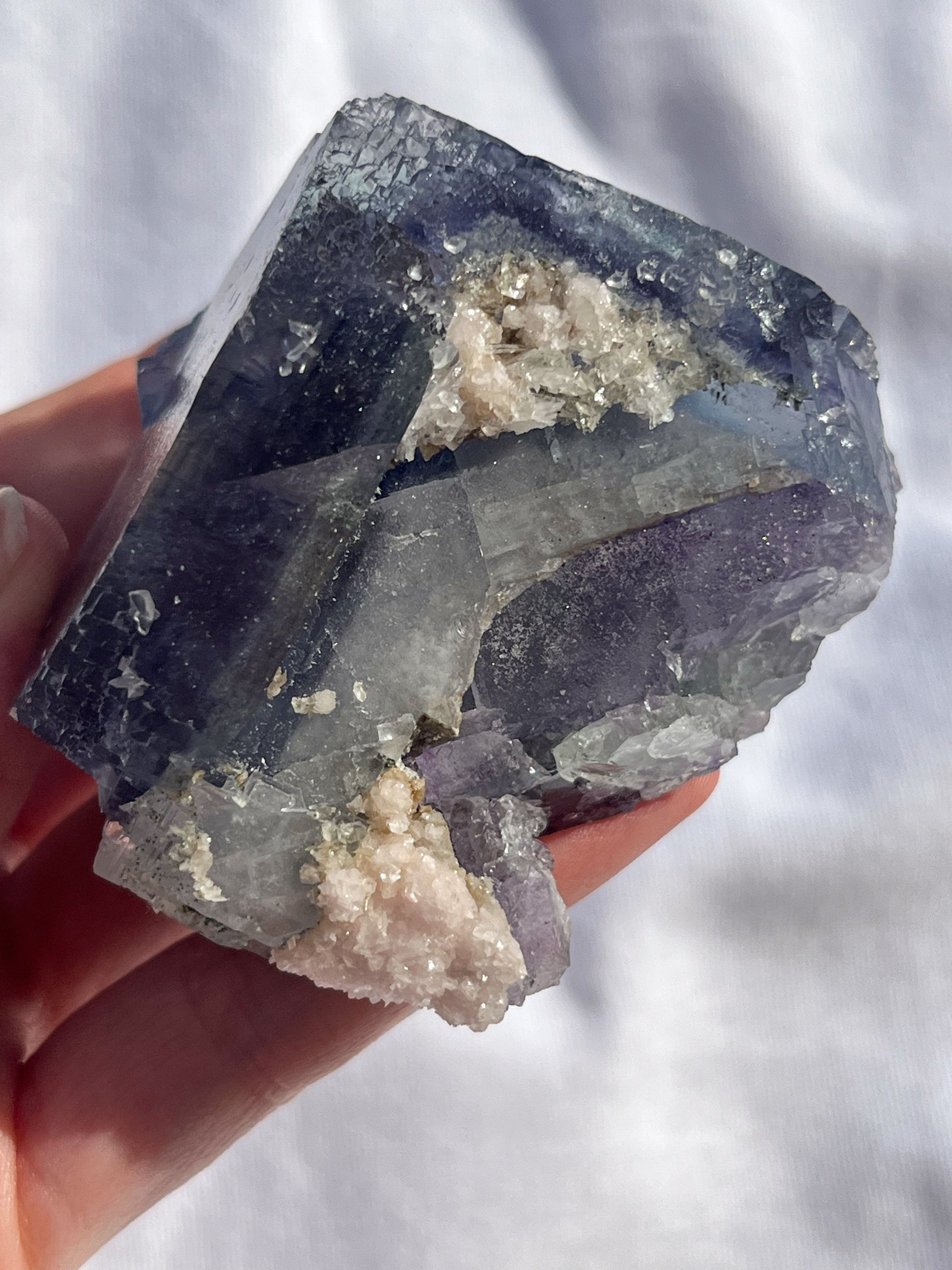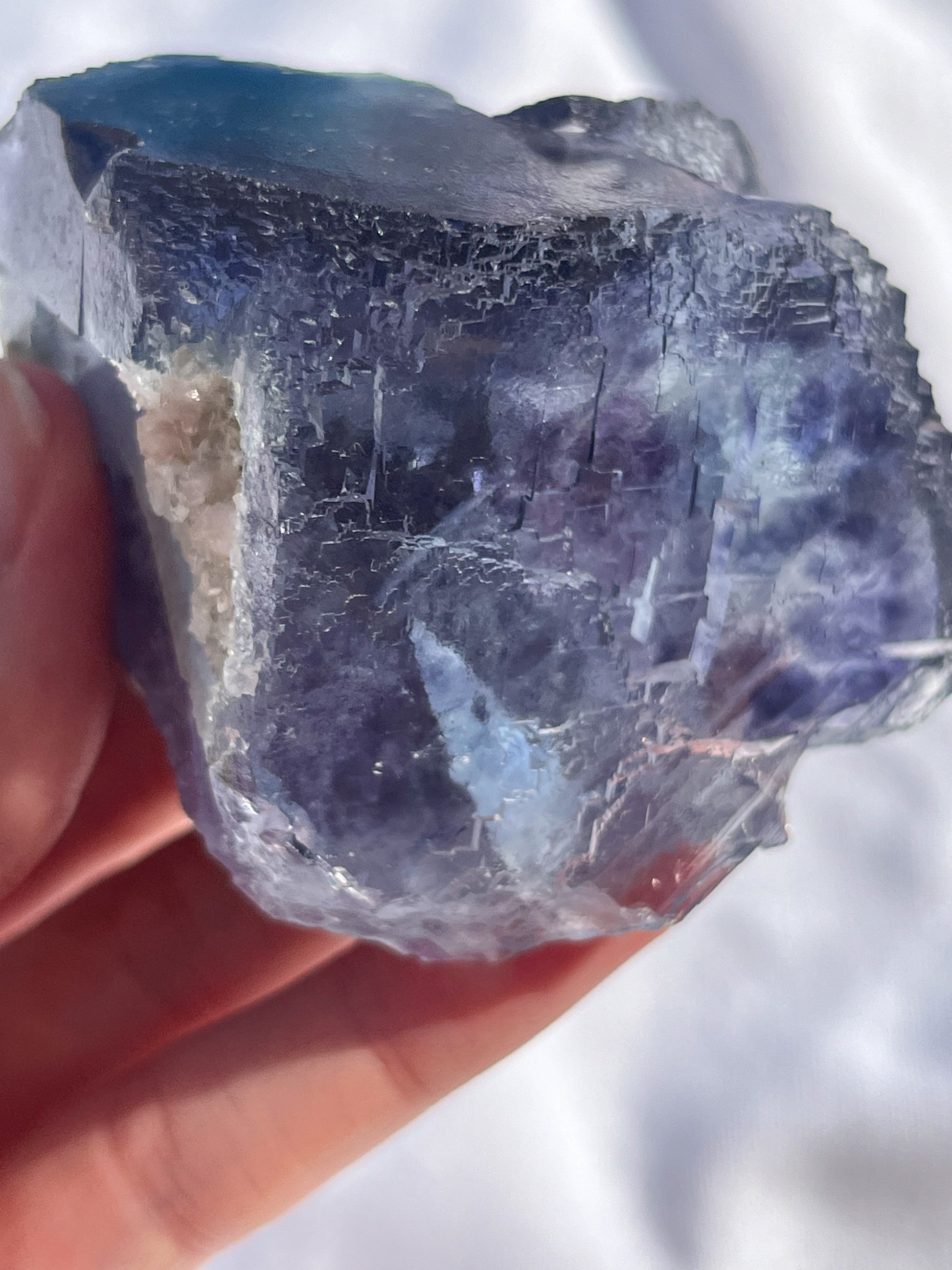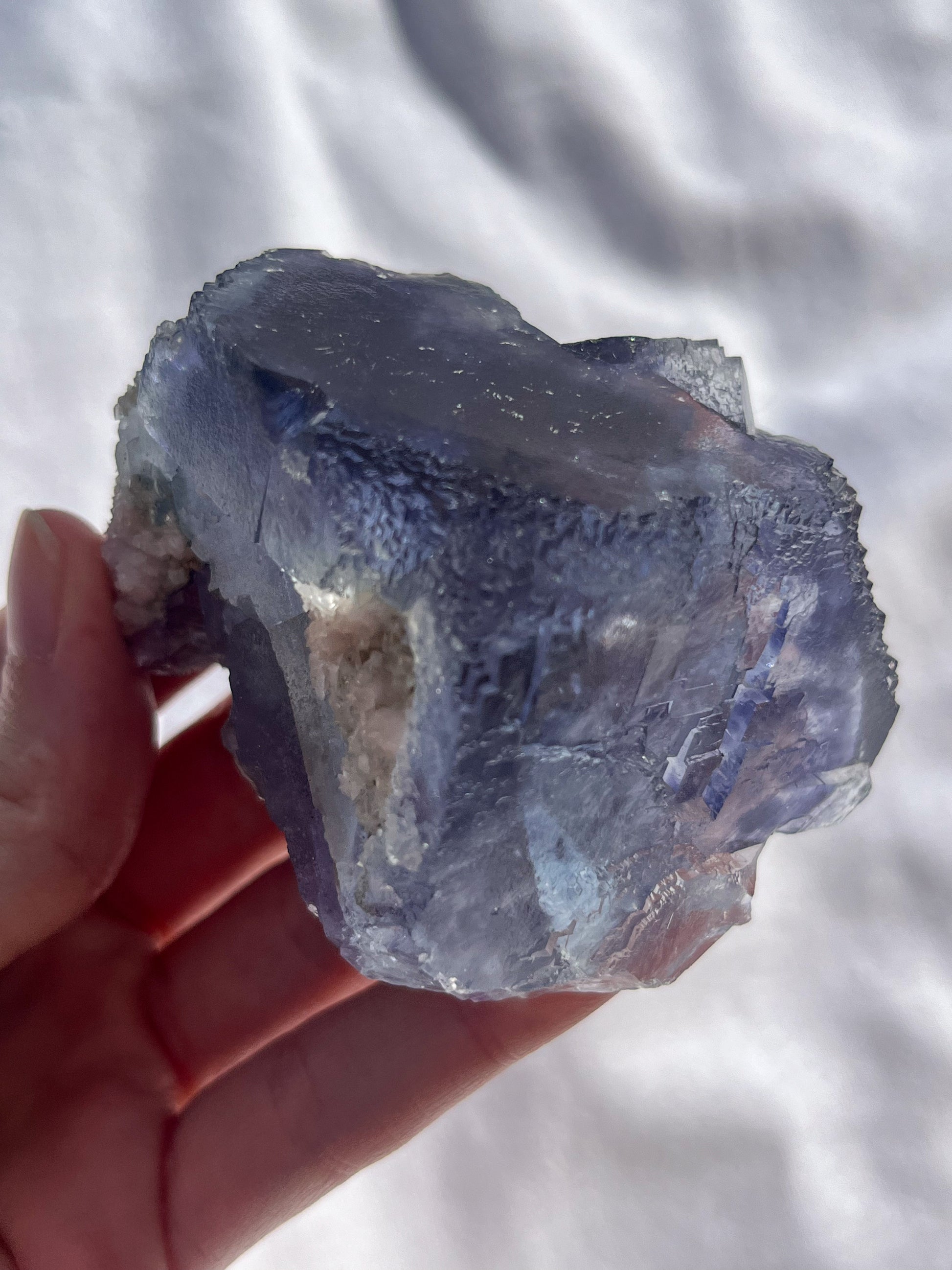 Stepped Blue-Purple Phantom Yaogangxian Fluorite Specimen w/ Pink Rose Calcite Inclusions #2