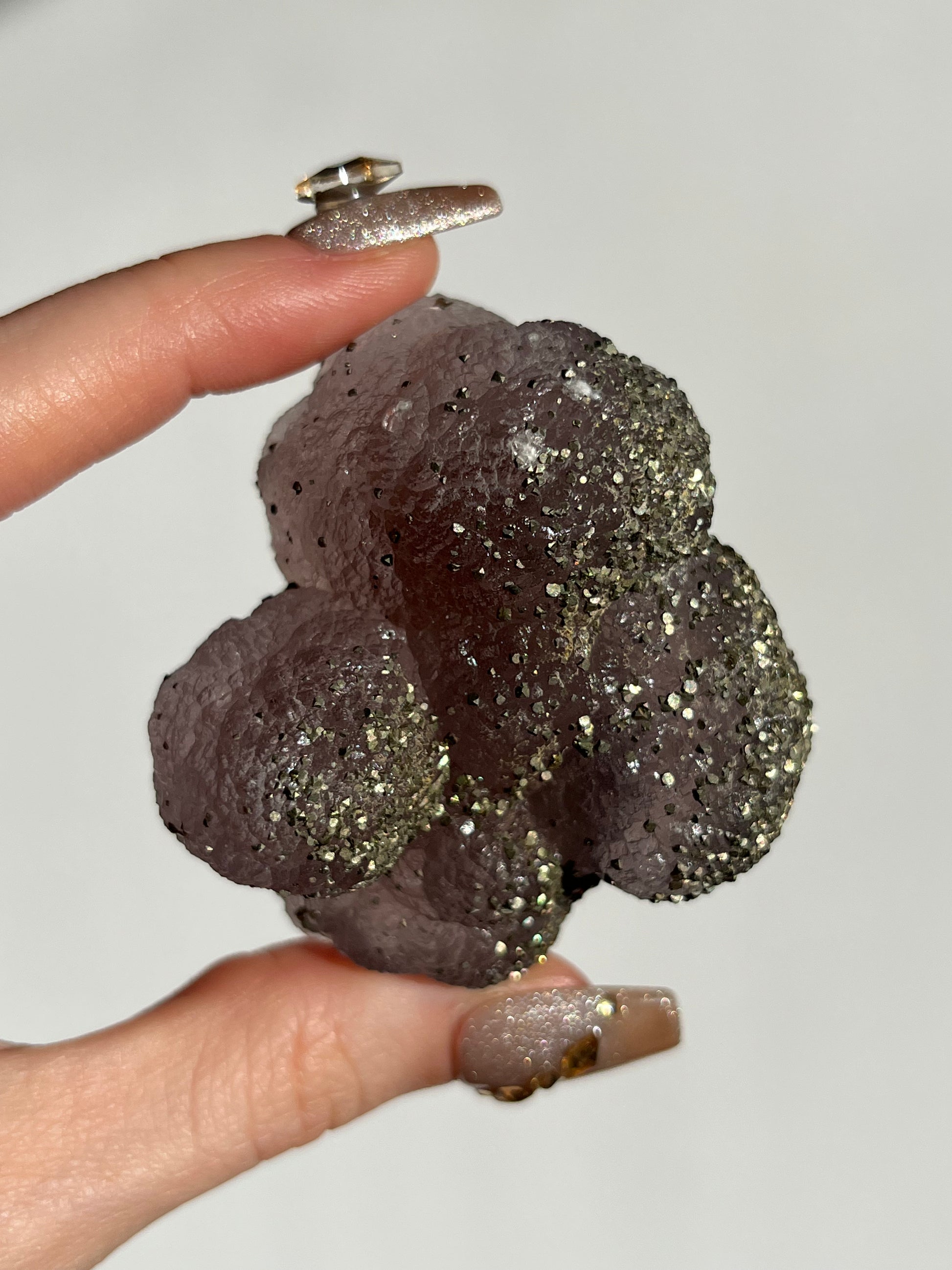 Botryoidal Purple Fluorite with Iridescent Pyrite Specimen D (Collector's Choice)
