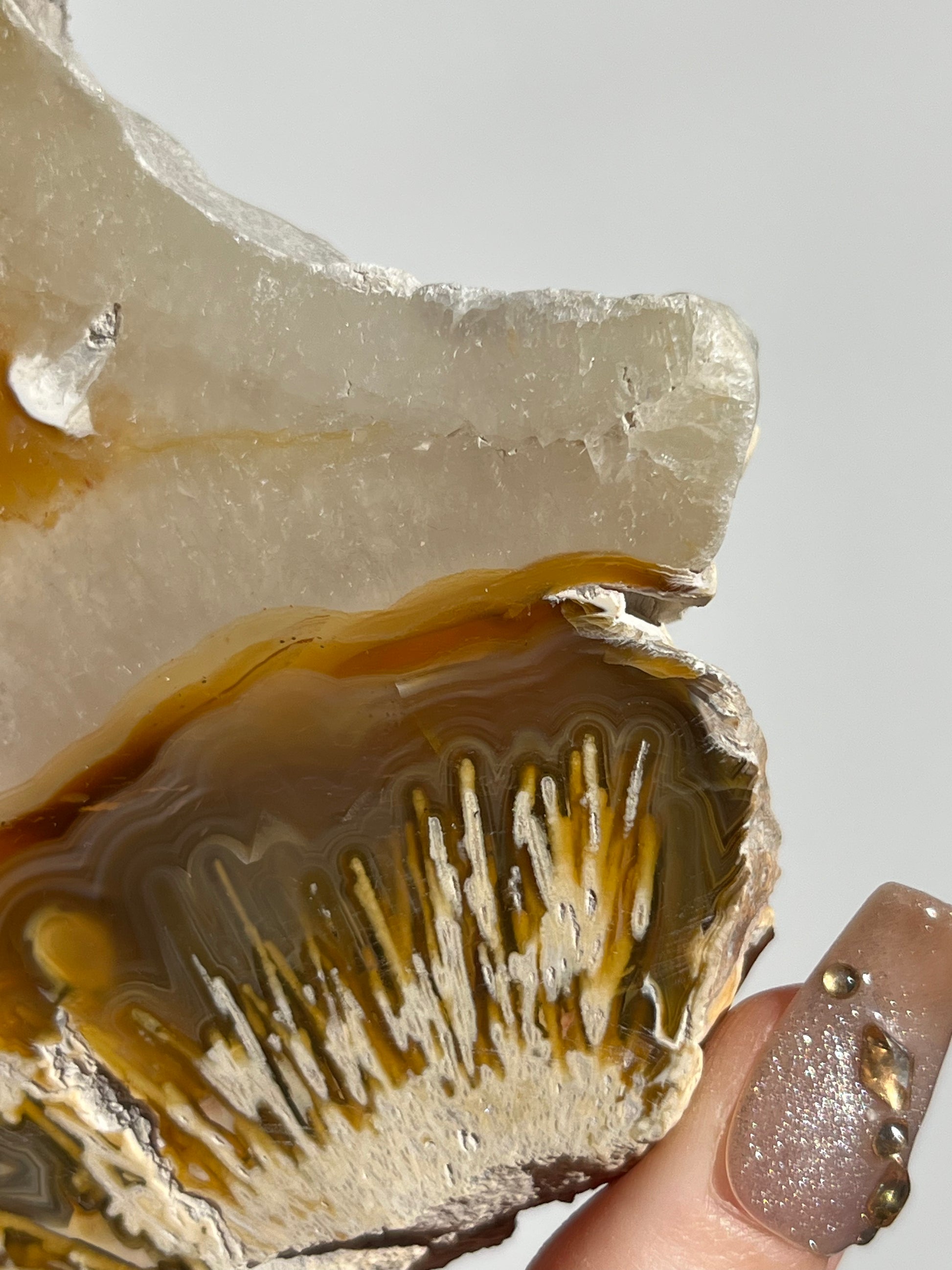 Carnelian Sagenite blends vitality and clarity. Carnelian inspires courage and creative energy, while sagenitic inclusions guide focus and direction. Together, they ground passion into purposeful action.