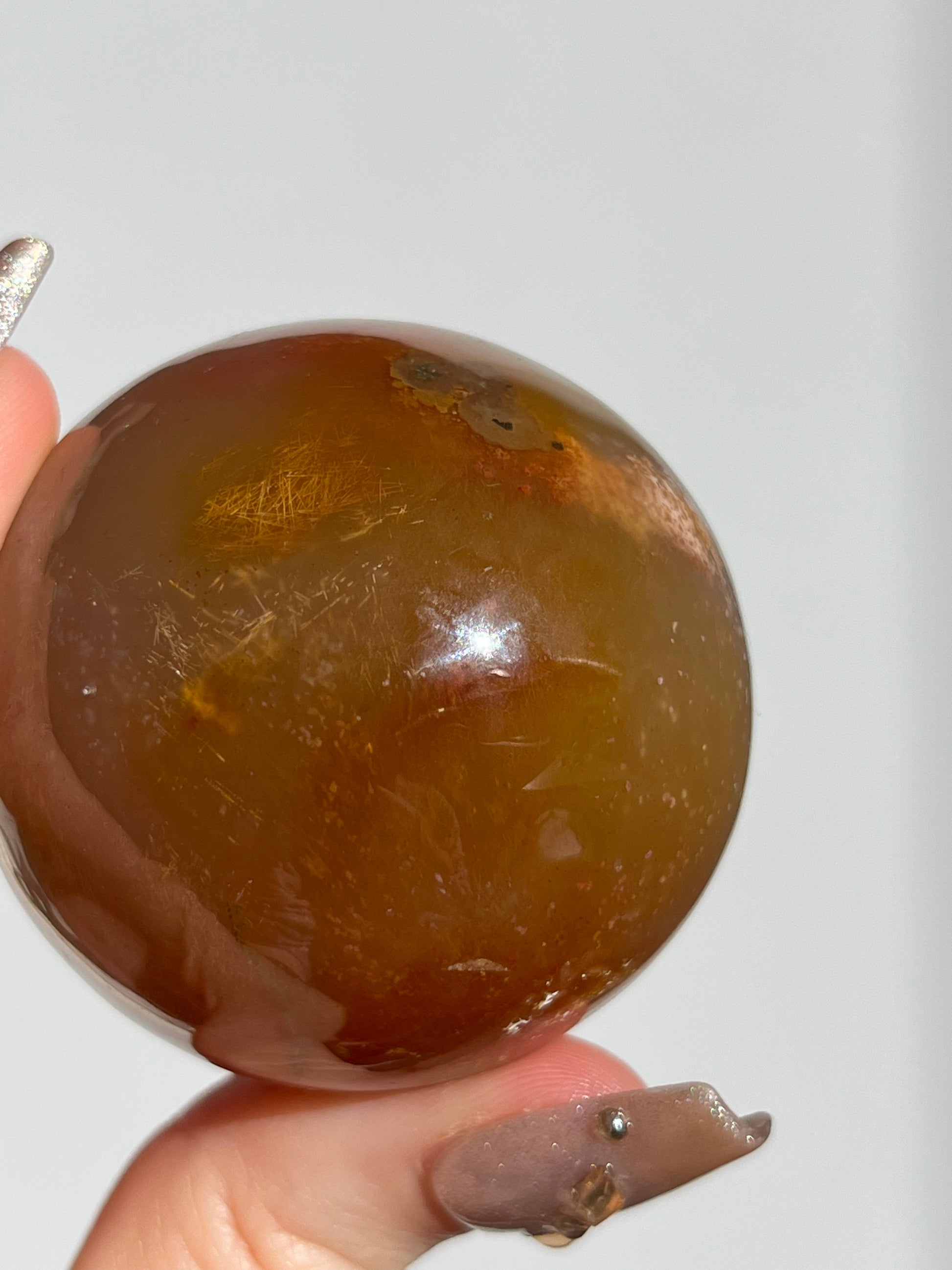 Natural Carnelian and Sagenite Sphere C