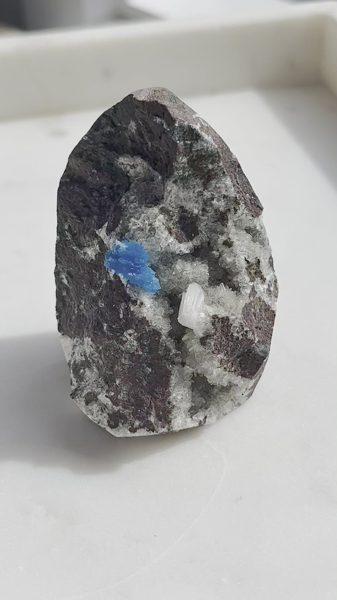 Espécimen de cavansita con inclusiones de estilbita en matriz de heulandita-basalto #85