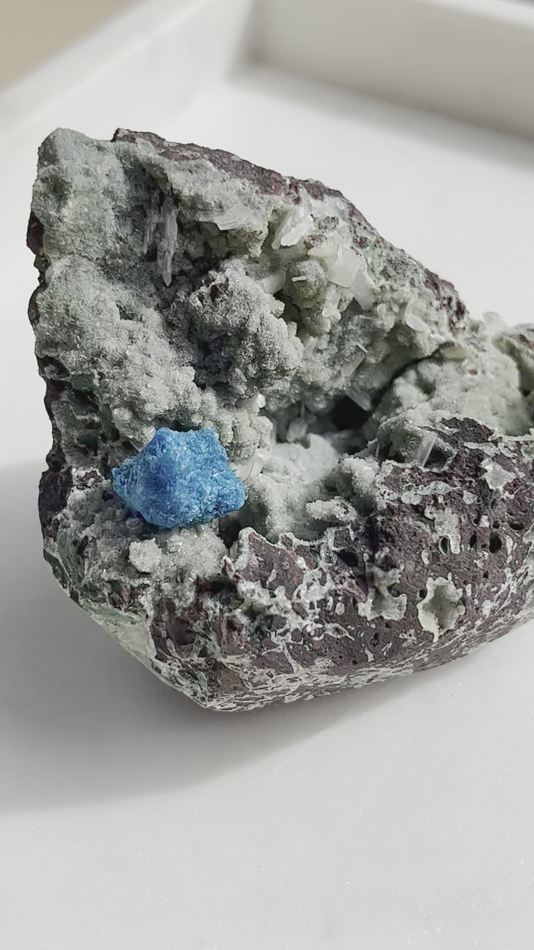 Espécimen de cavansita con inclusiones de estilbita en matriz de zeolita-basalto #61