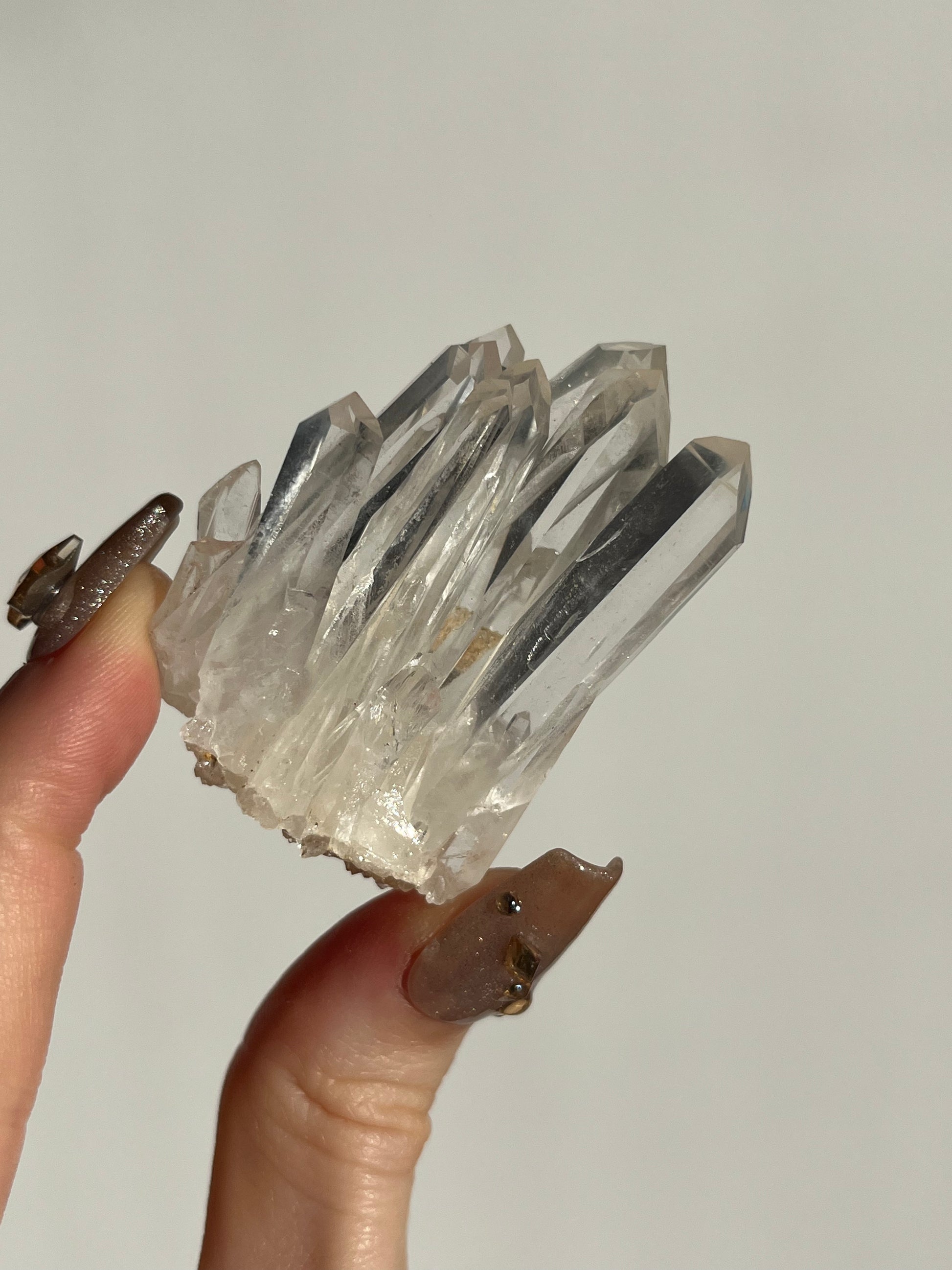 Colombian Quartz radiates pure, high-frequency energy. Renowned for its water-clear clarity, it elevates consciousness, amplifies intentions, and clears stagnant energy. This crystal supports spiritual attunement, energetic alignment, and the embodiment of truth — making it a powerful ally for light-work, clarity, and deep inner connection.