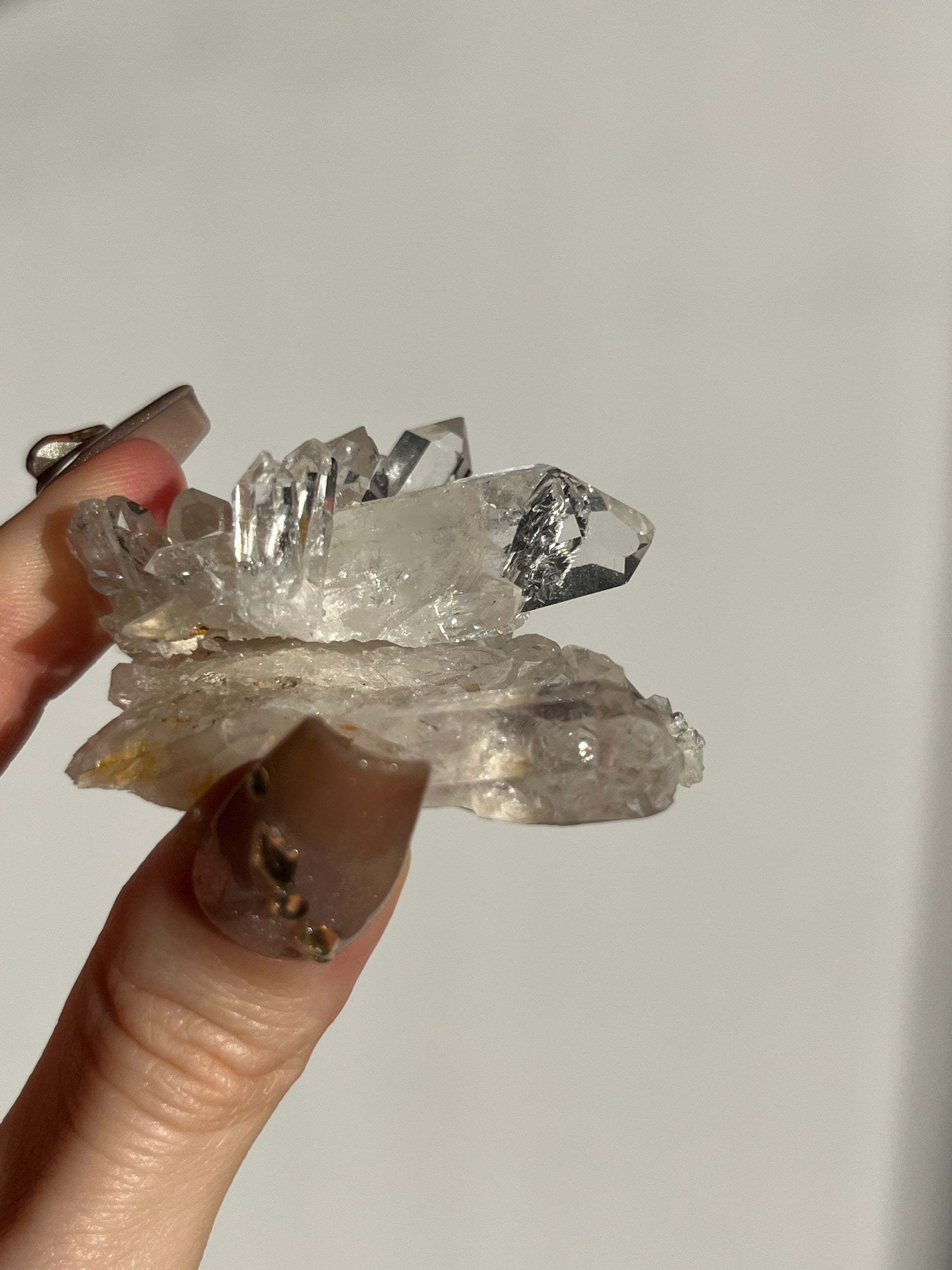 Colombian Quartz radiates pure, high-frequency energy. Renowned for its water-clear clarity, it elevates consciousness, amplifies intentions, and clears stagnant energy. This crystal supports spiritual attunement, energetic alignment, and the embodiment of truth — making it a powerful ally for light-work, clarity, and deep inner connection.
