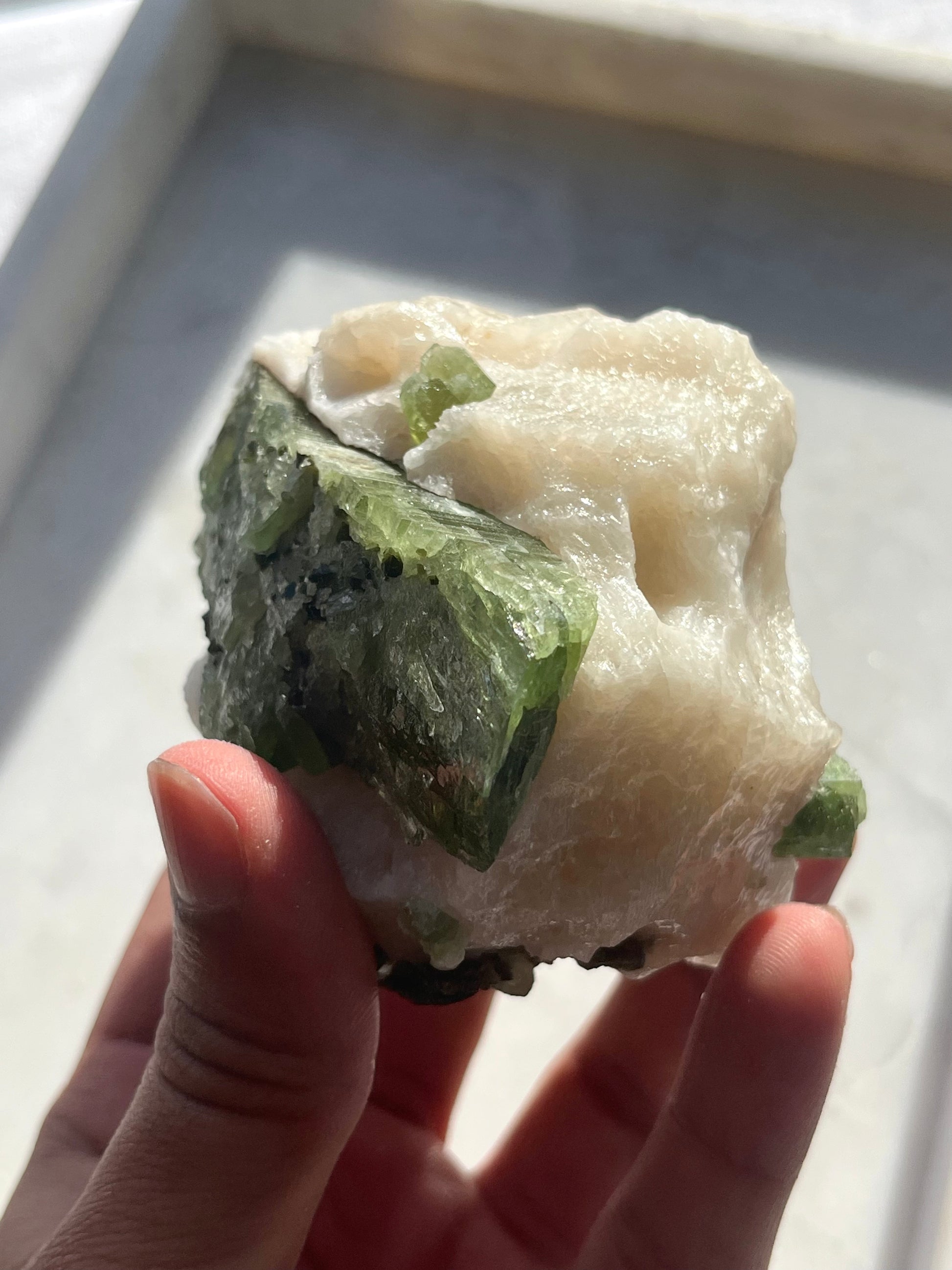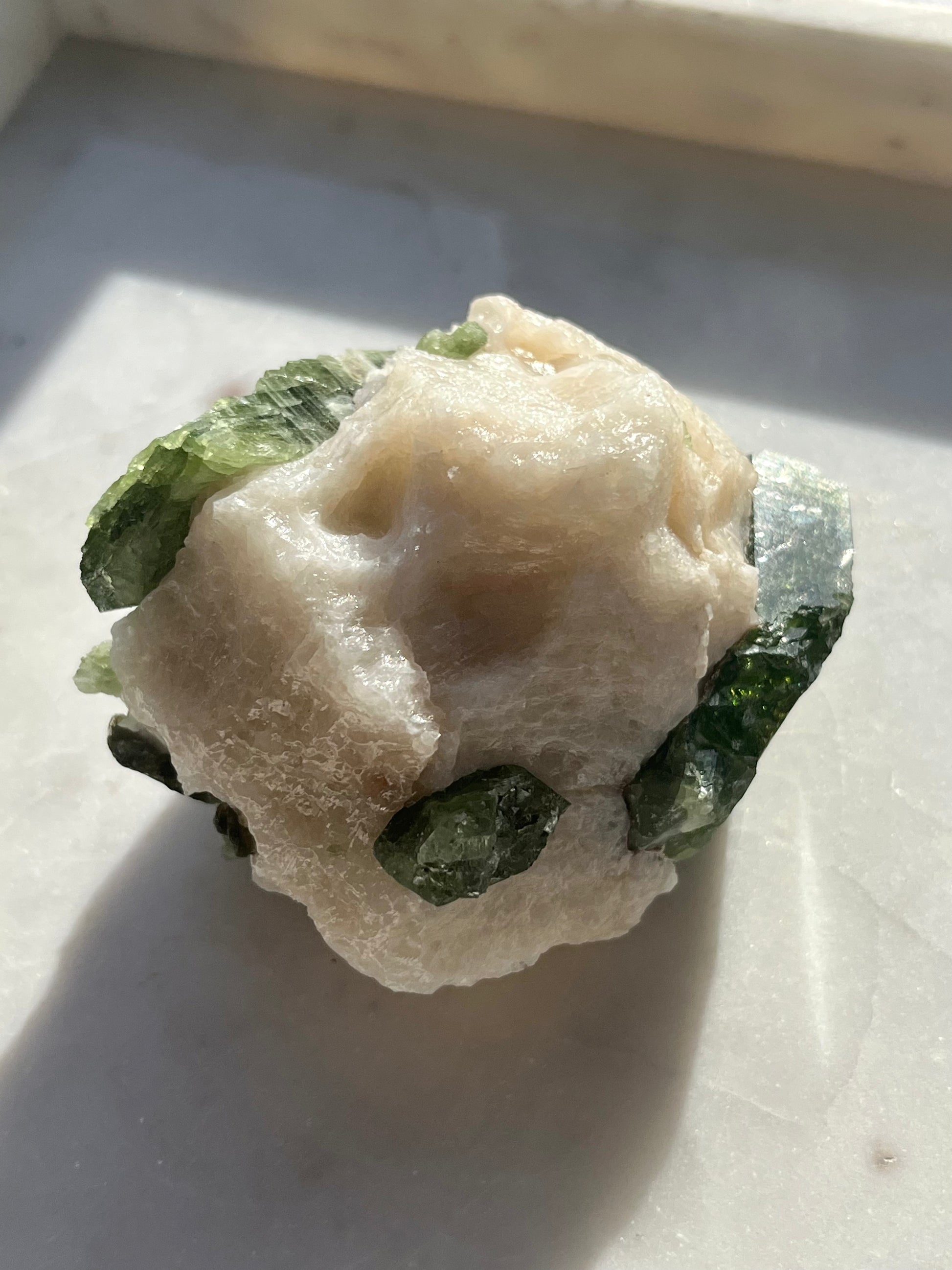 Muestra de diópsido con moscovita en matriz de mármol n.° 10