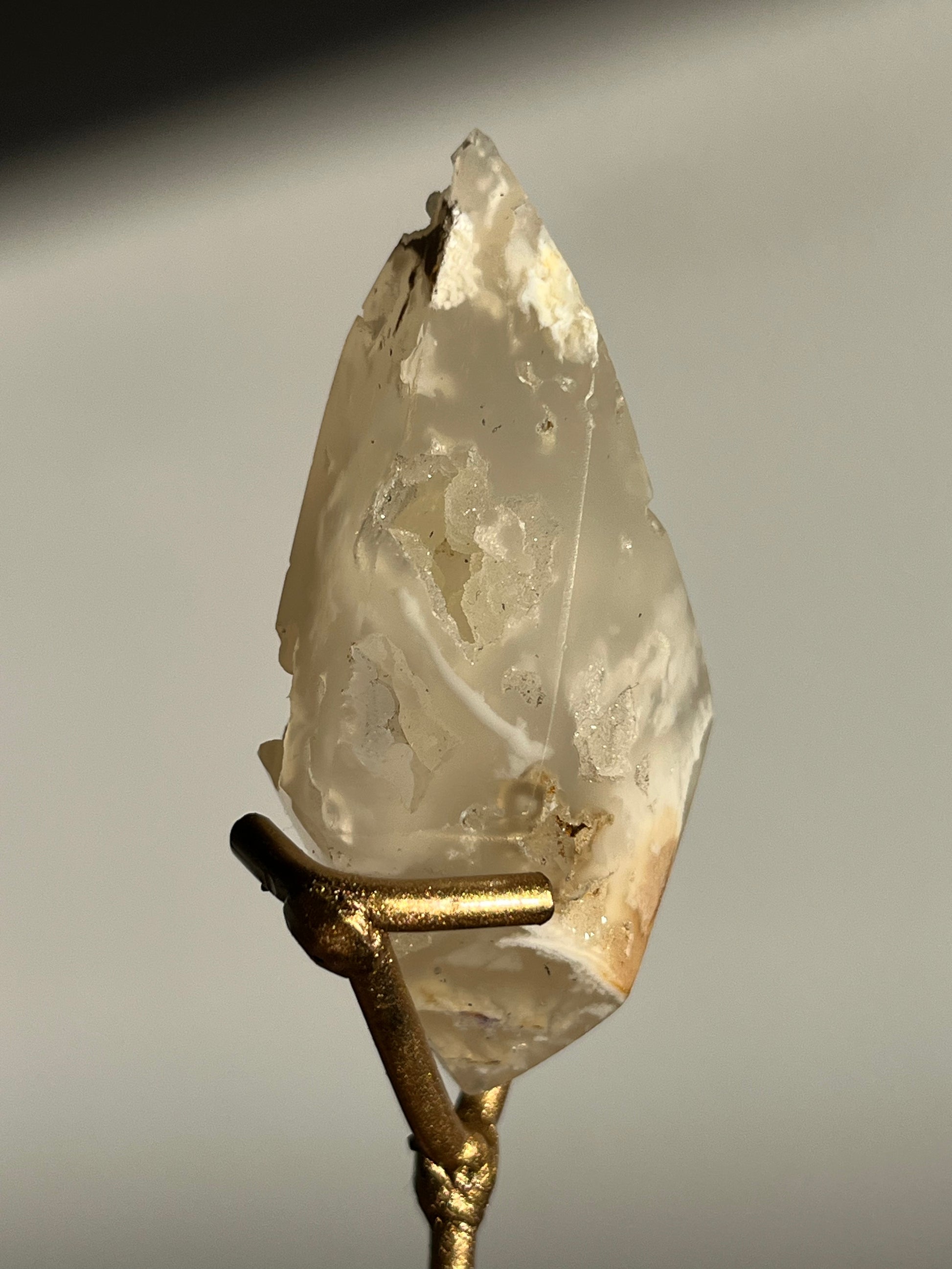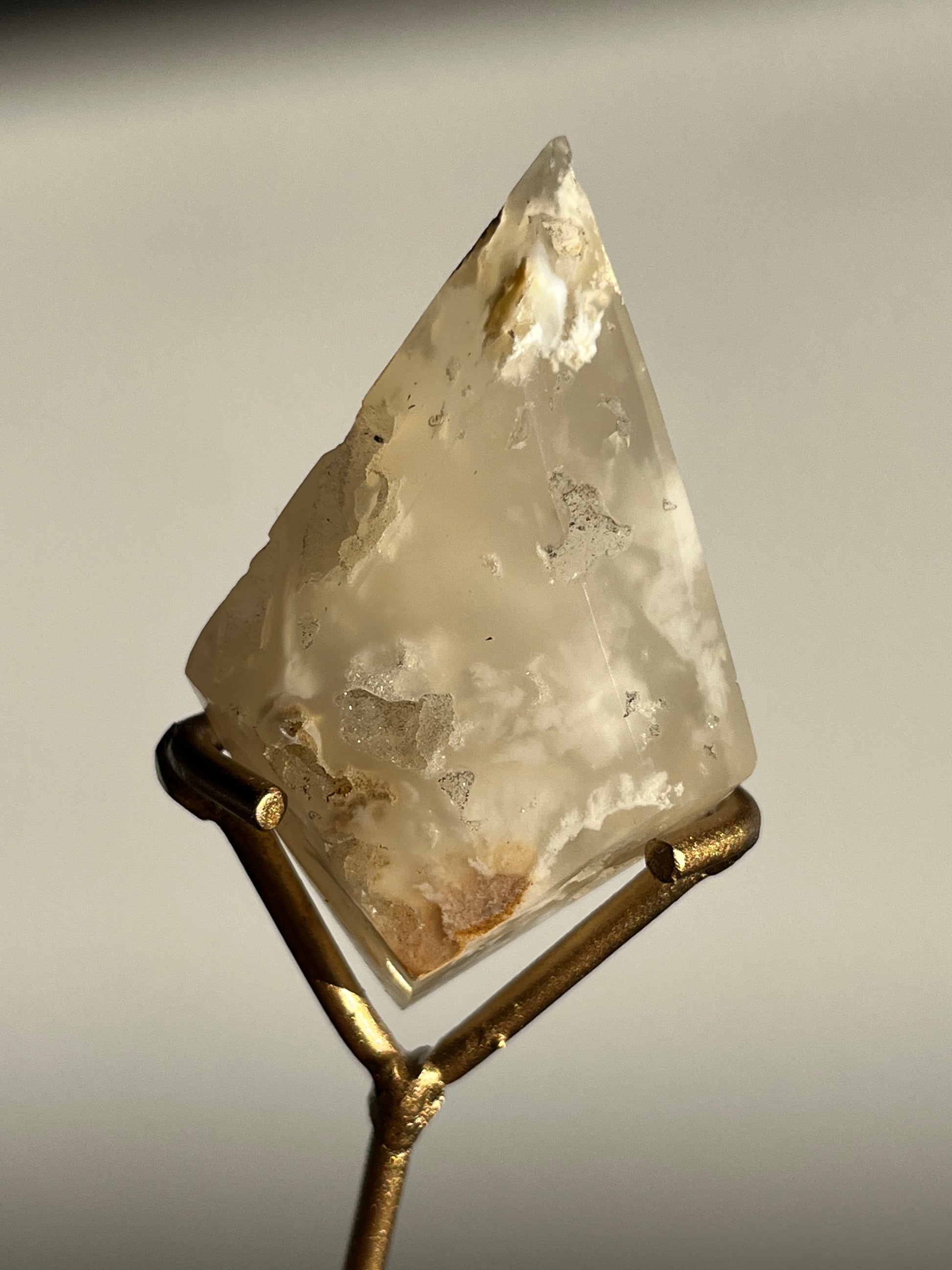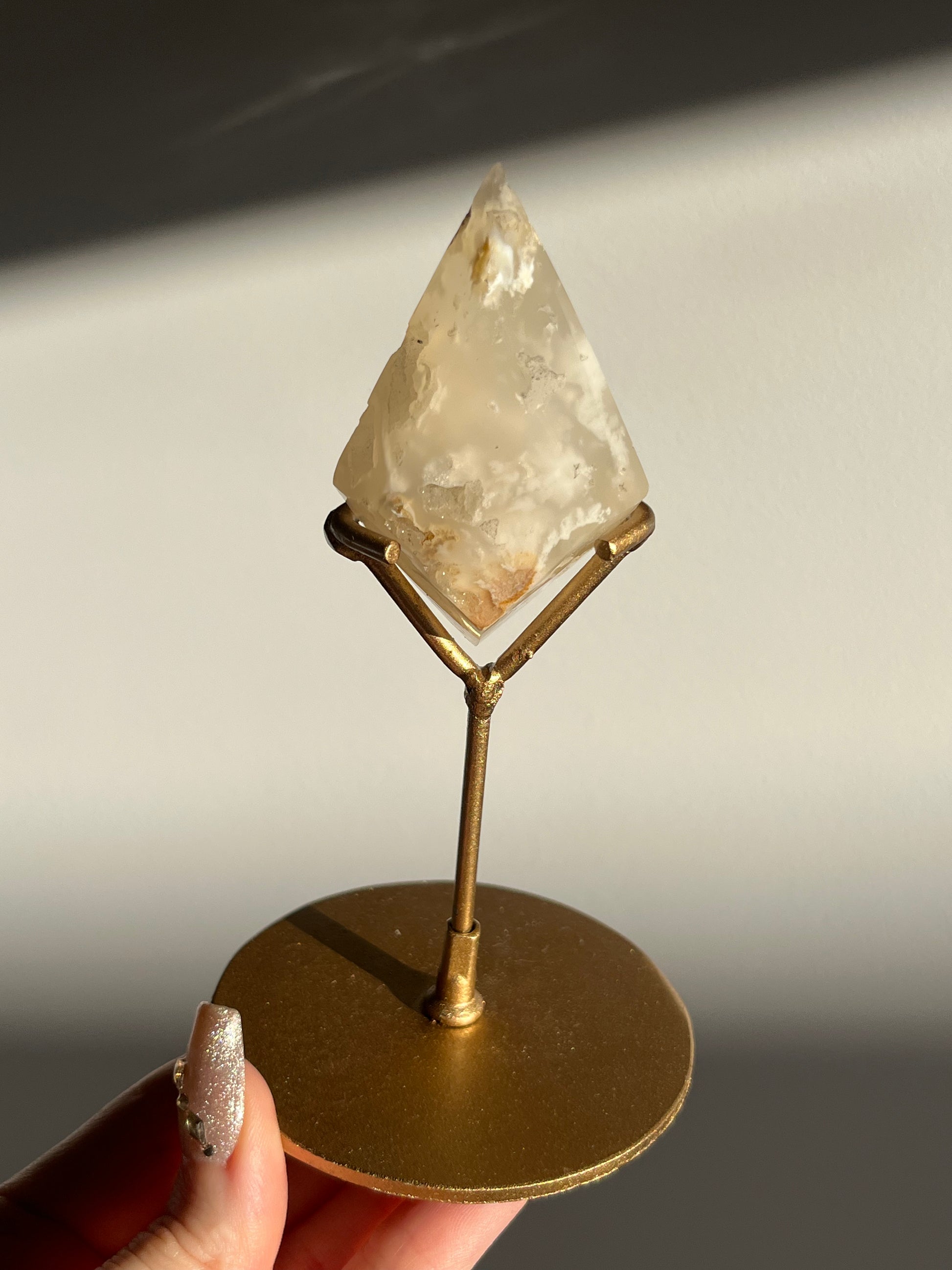 Druzy Flower Agate Diamond Carving on Gold Stand E