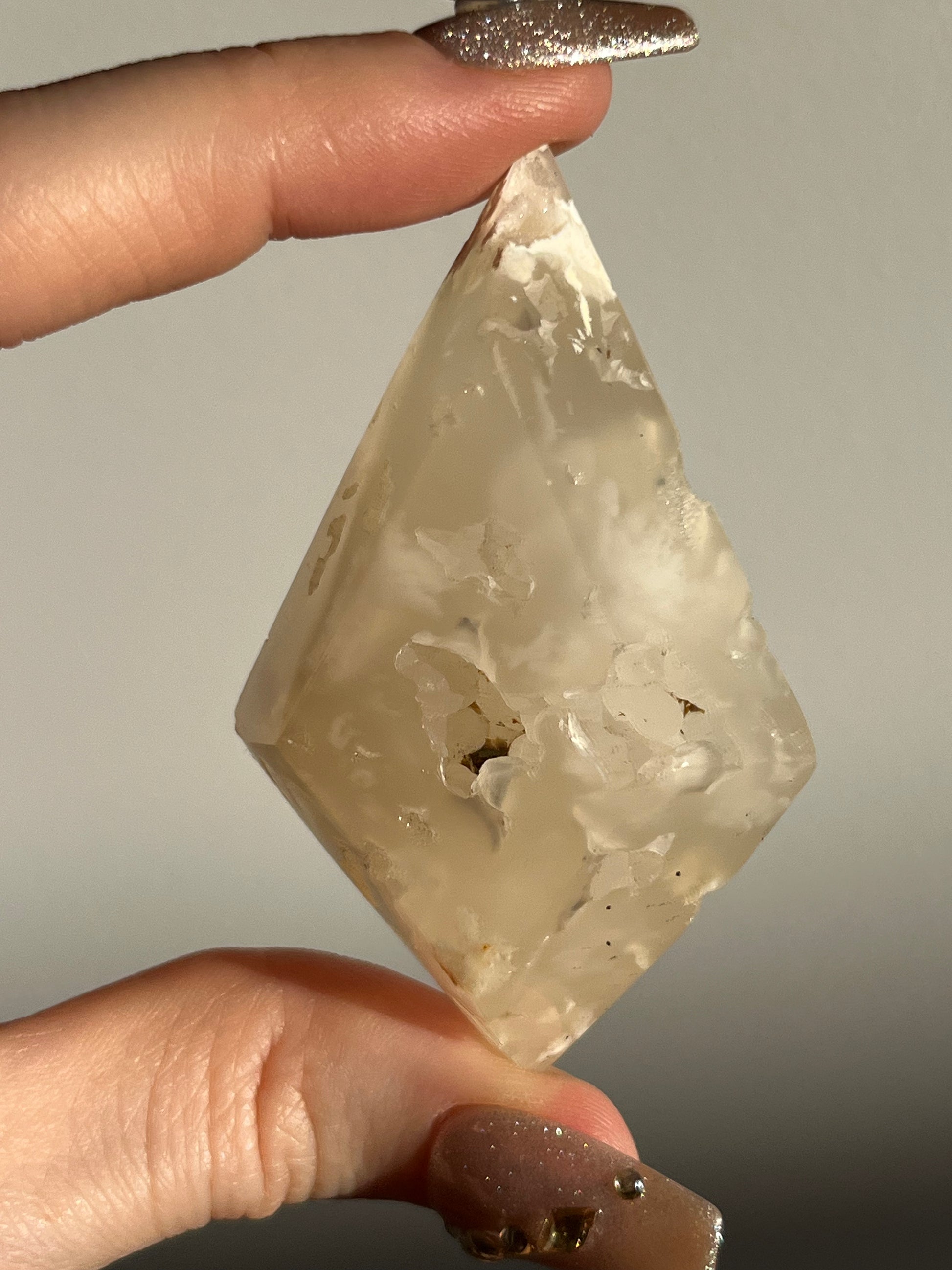 Also known as Flower Chalcedony for its opaque floral-like chalcedony inclusions.