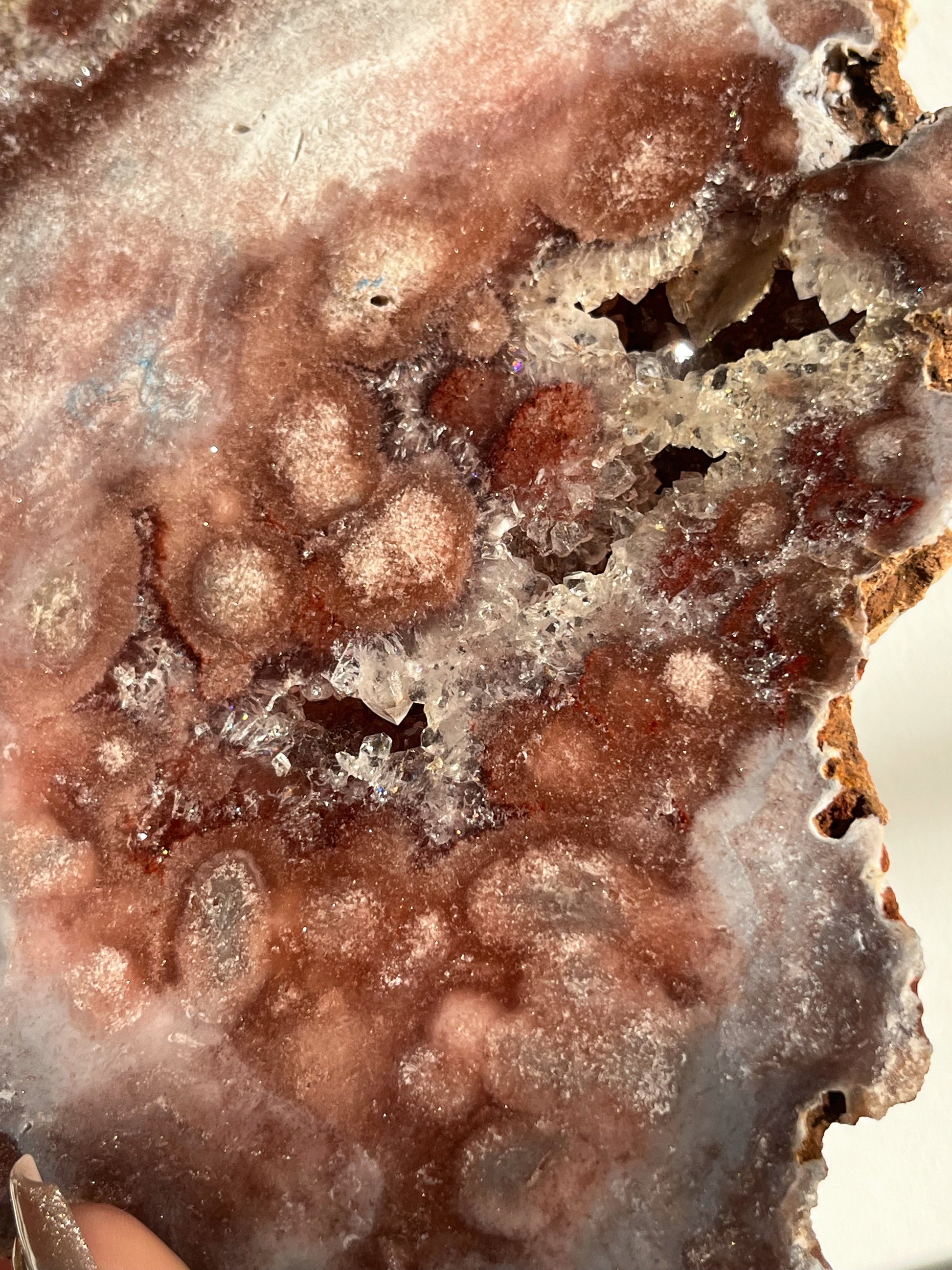 Rosa pálido intenso, lavanda púrpura-malva, druzy, con inclusiones de calcita, musgo o jaspe son solo algunas de las características de nuestra gama de impresionantes torres.