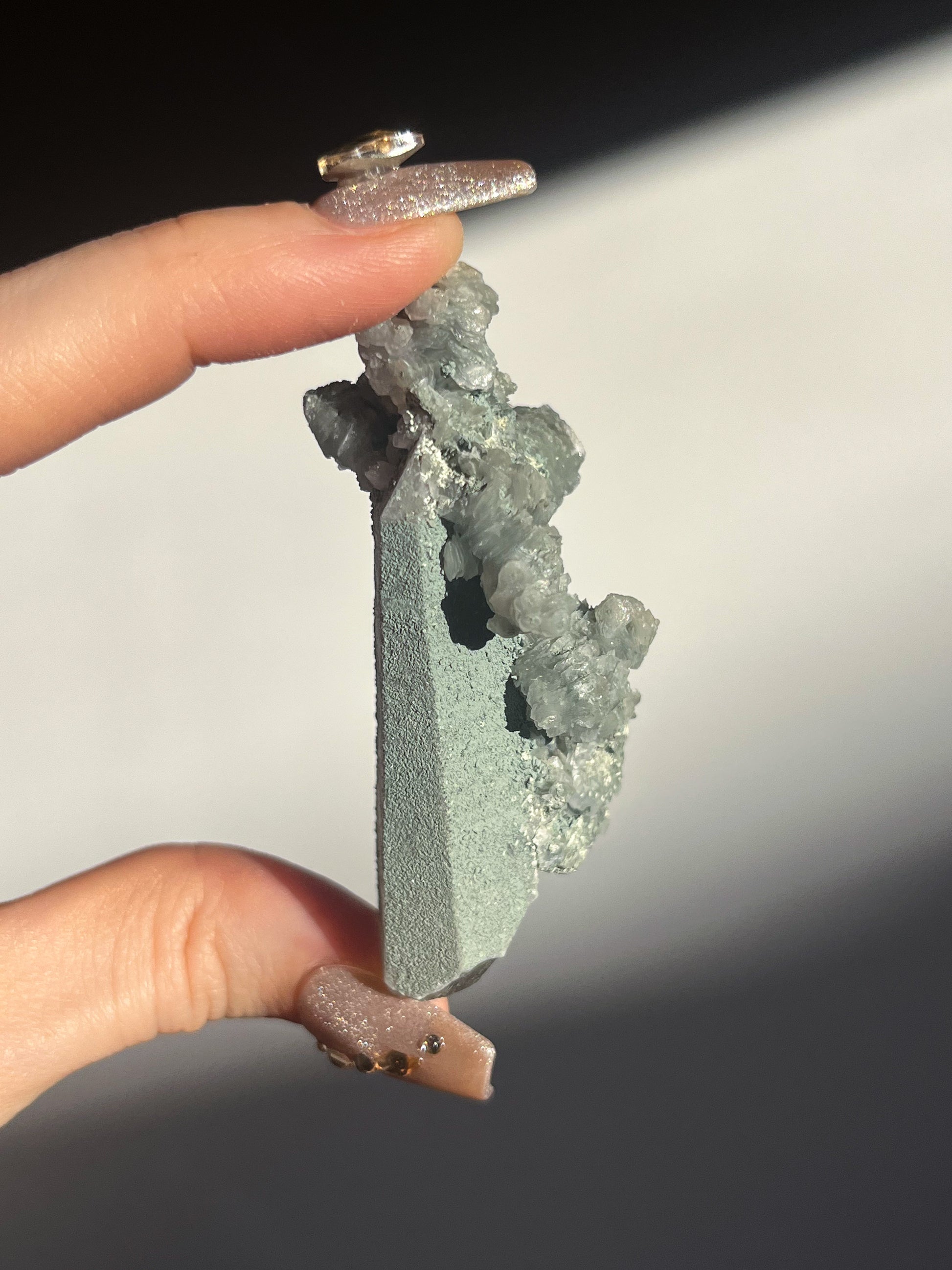 Euci Quartz invites you to slow down and reconnect with your intuitive rhythms. The green chlorite infuses the stone with gentle healing energy, supporting emotional clearing and heart chakra restoration.