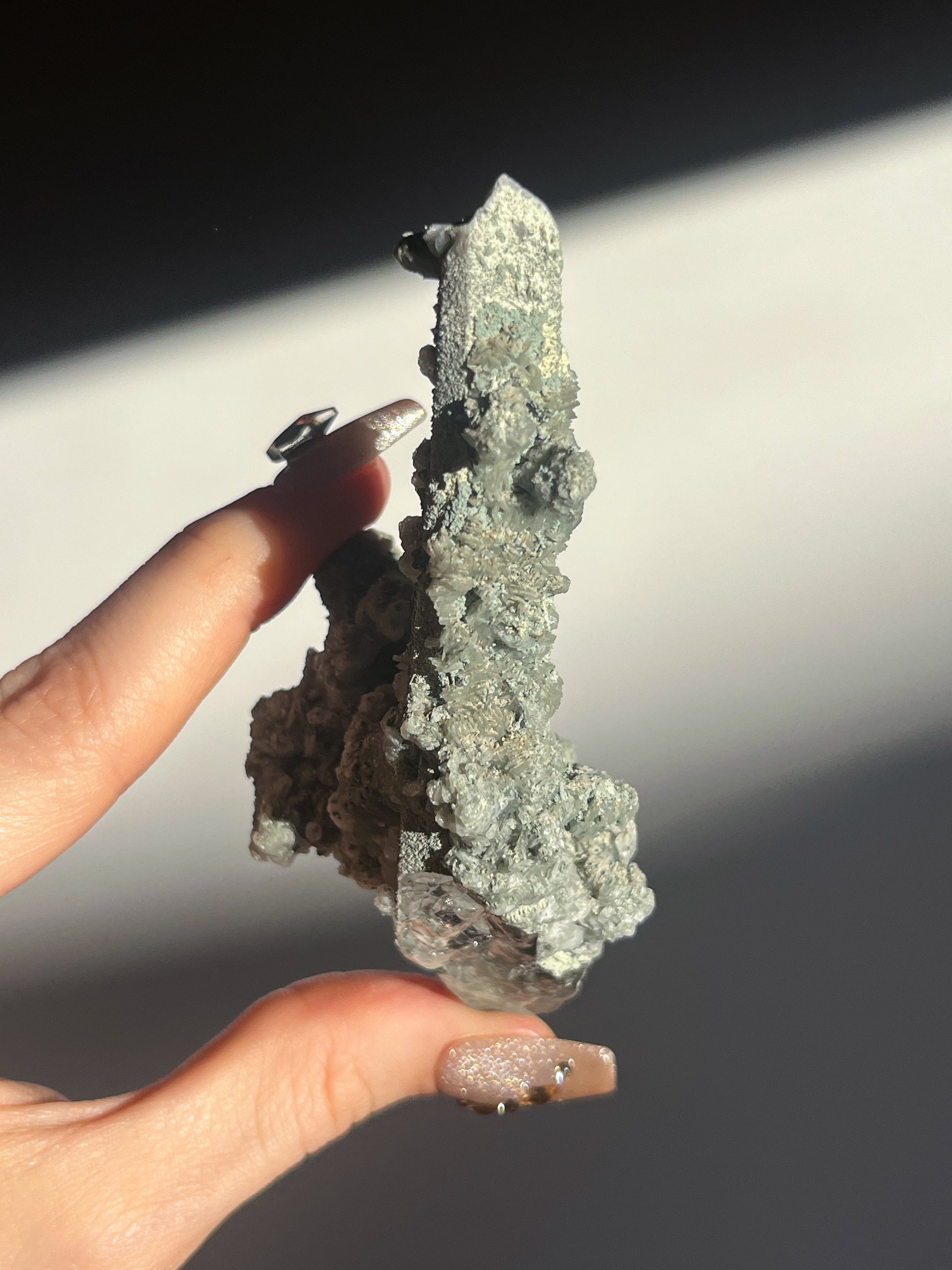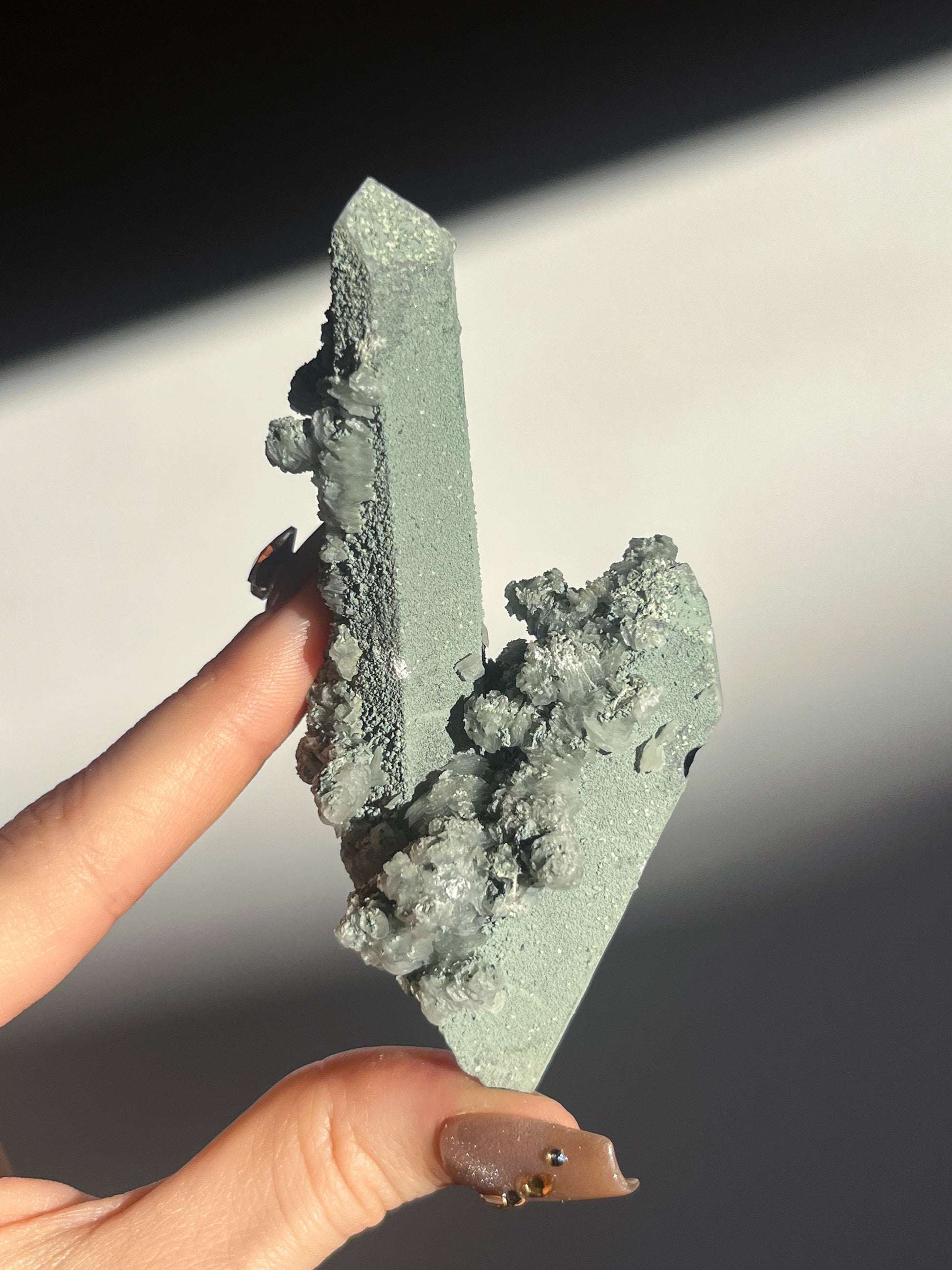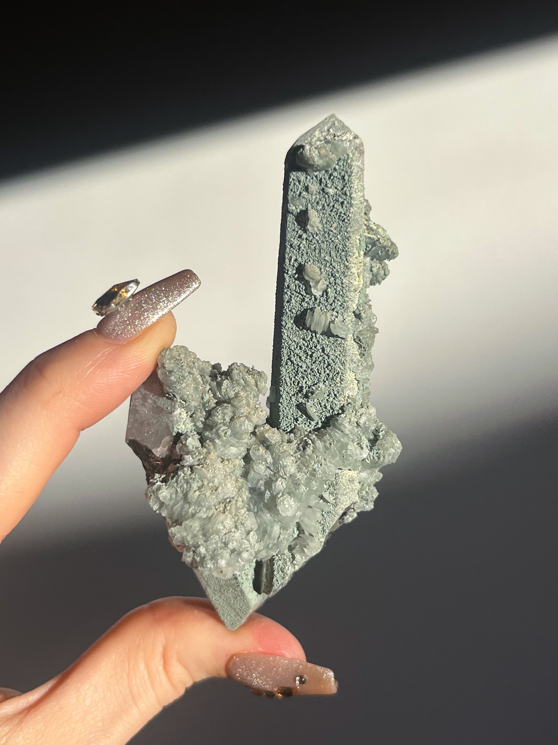 Euci Quartz invites you to slow down and reconnect with your intuitive rhythms. The green chlorite infuses the stone with gentle healing energy, supporting emotional clearing and heart chakra restoration.