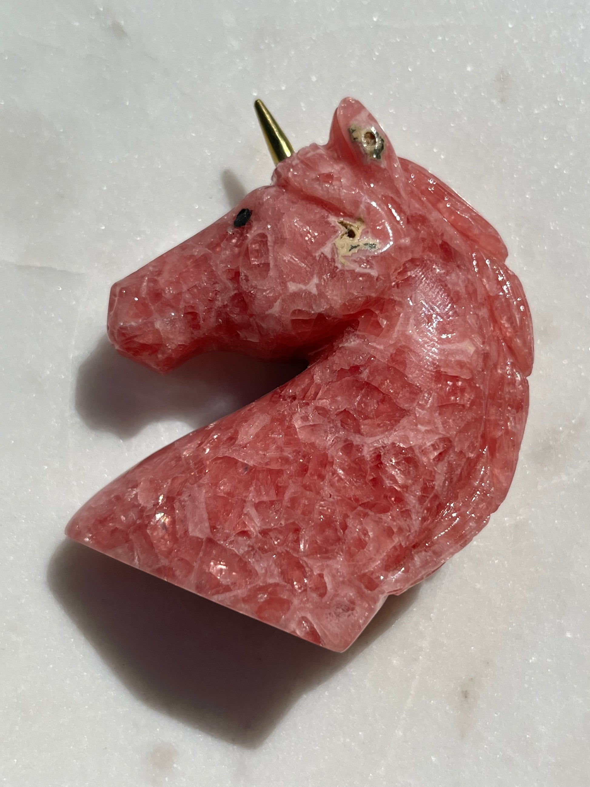 ‘Stellar’ Gemmy Rhodochrosite Unicorn w/Brass Horn