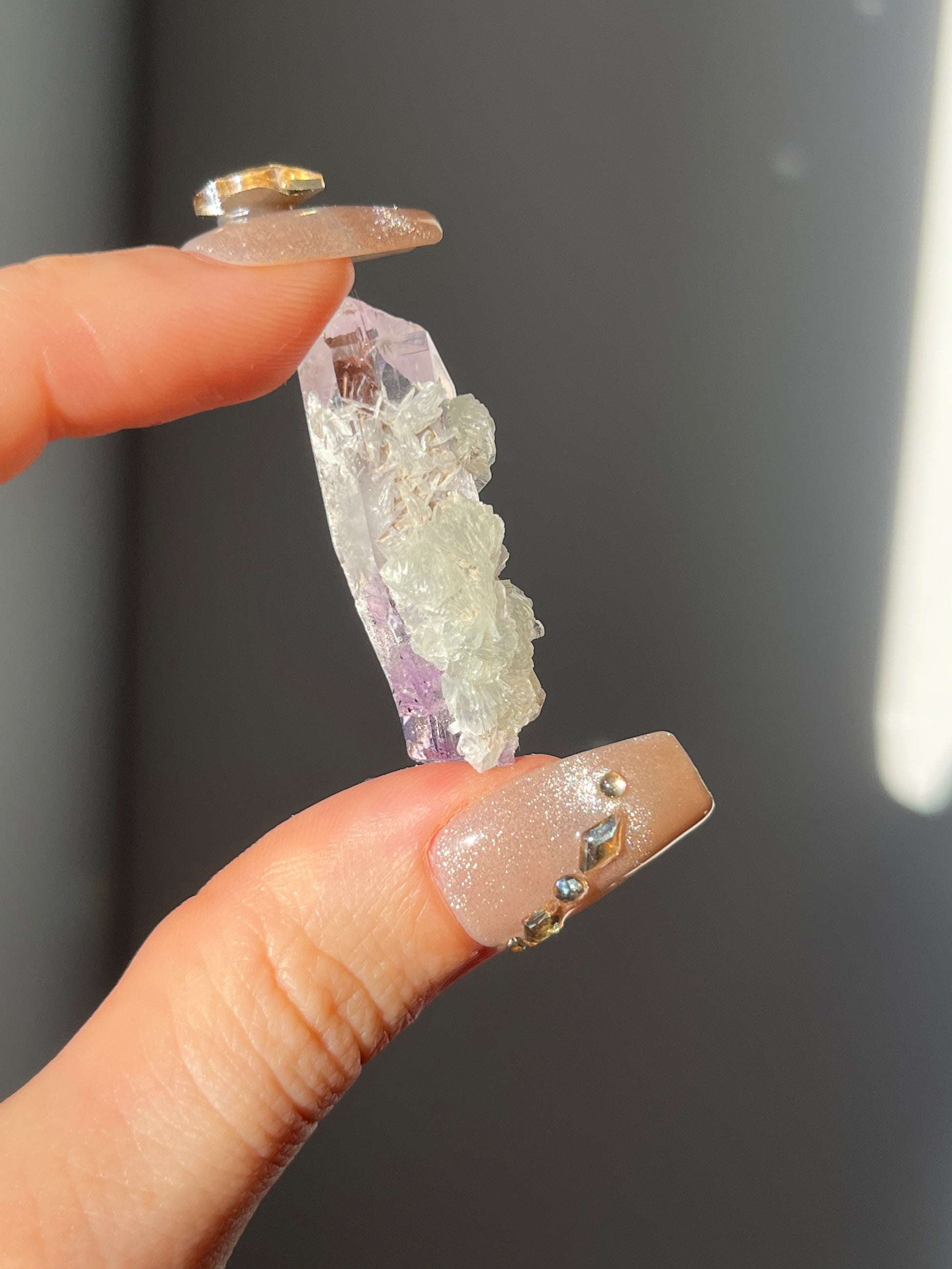 Goboboseb Amethyst Quartz Point with Prehnite Jacket F