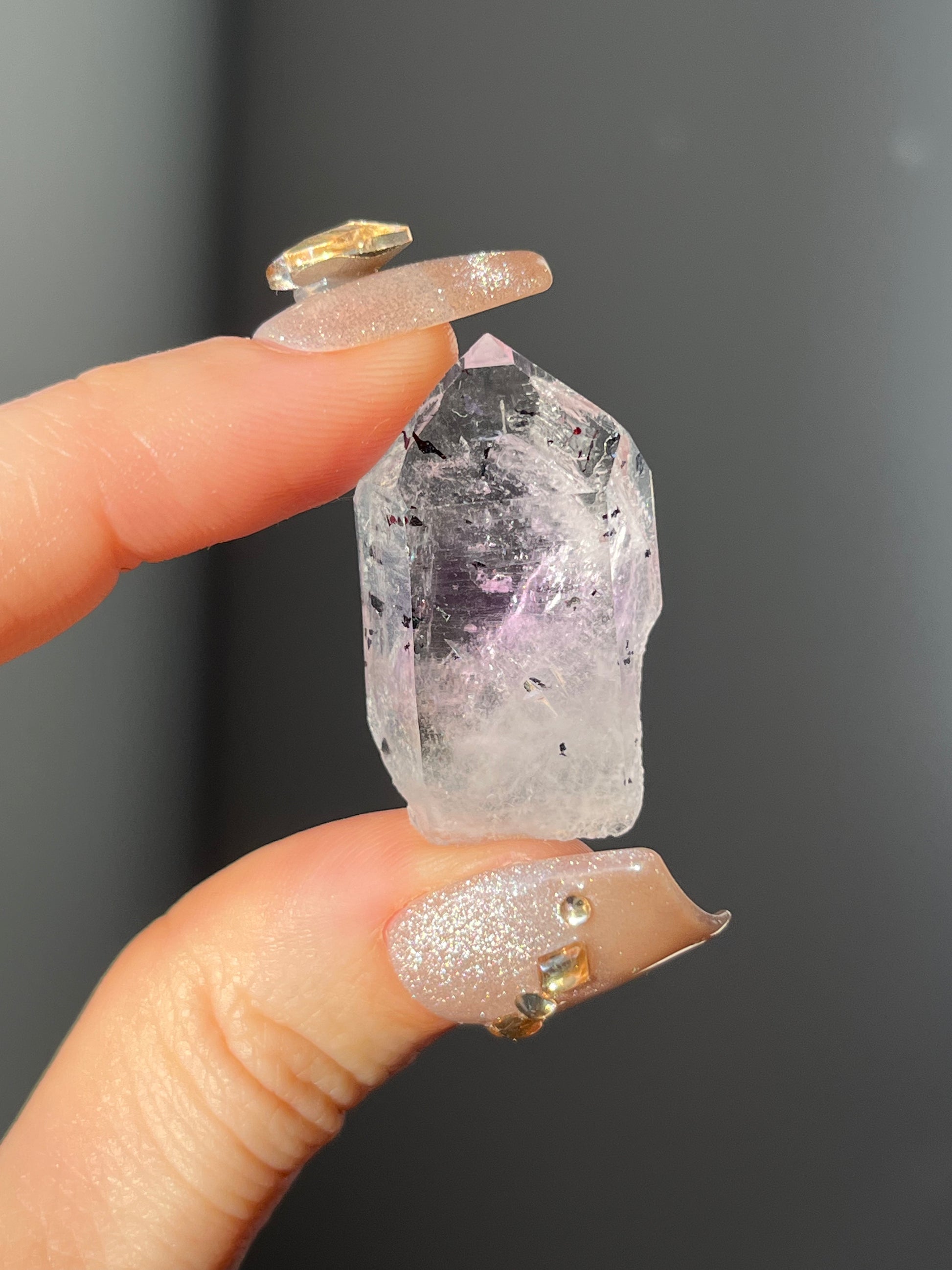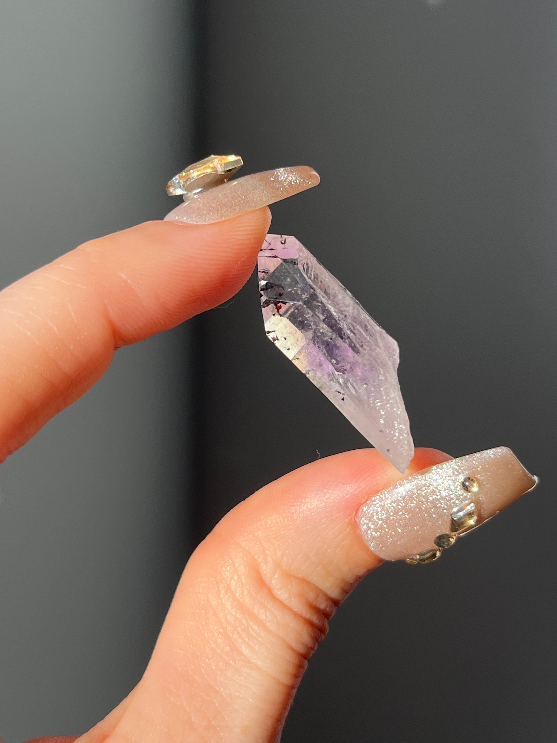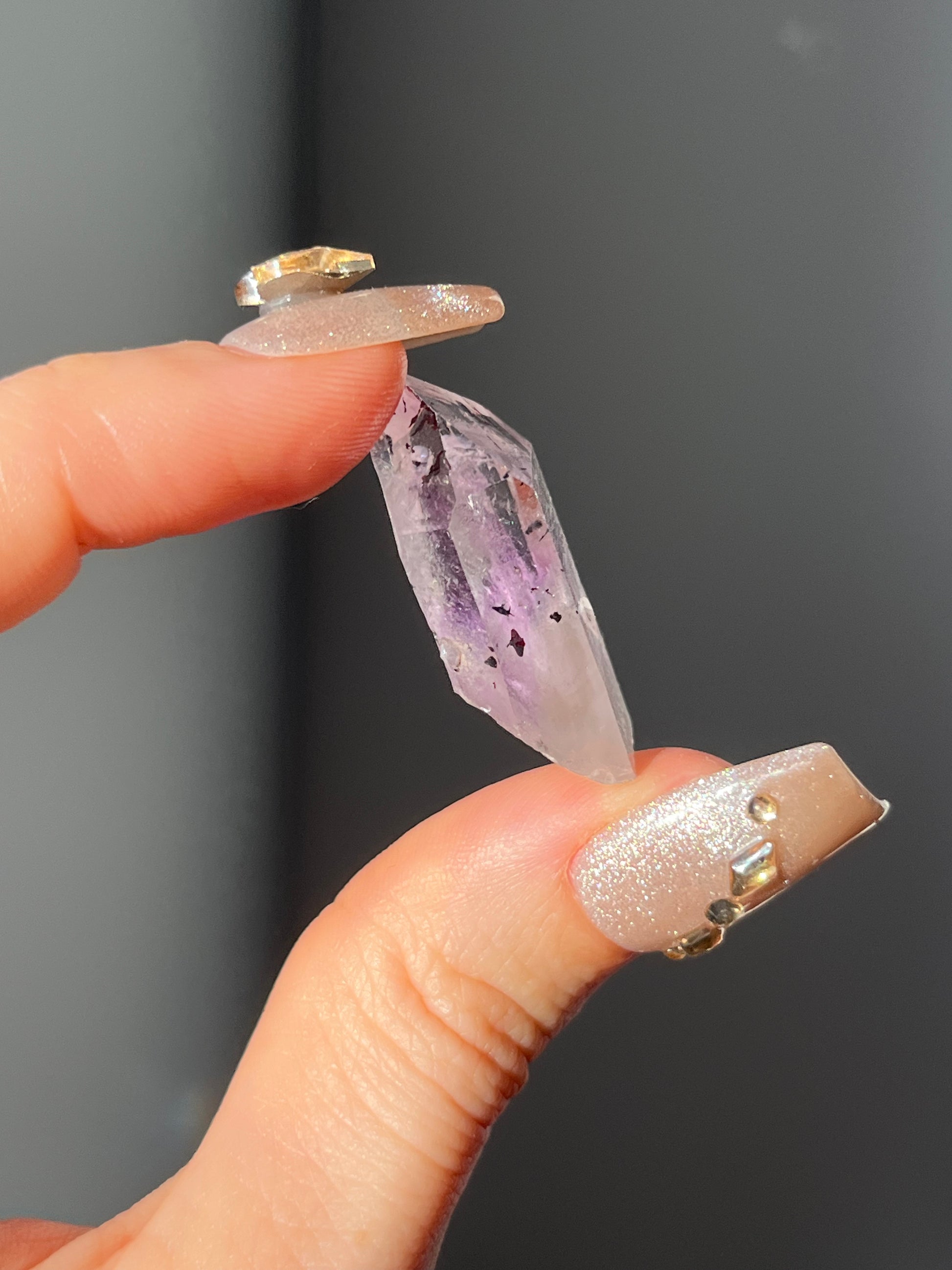 Goboboseb Amethyst Quartz Point with Harlequin Hematite Inclusions K