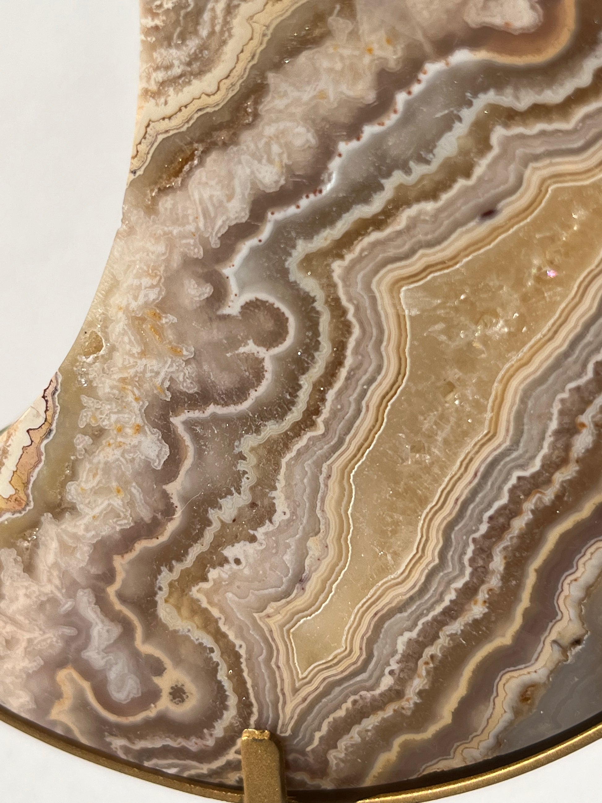 High Grade Golden Lace Agate Moon Carving on Stand with Parallax Effect E