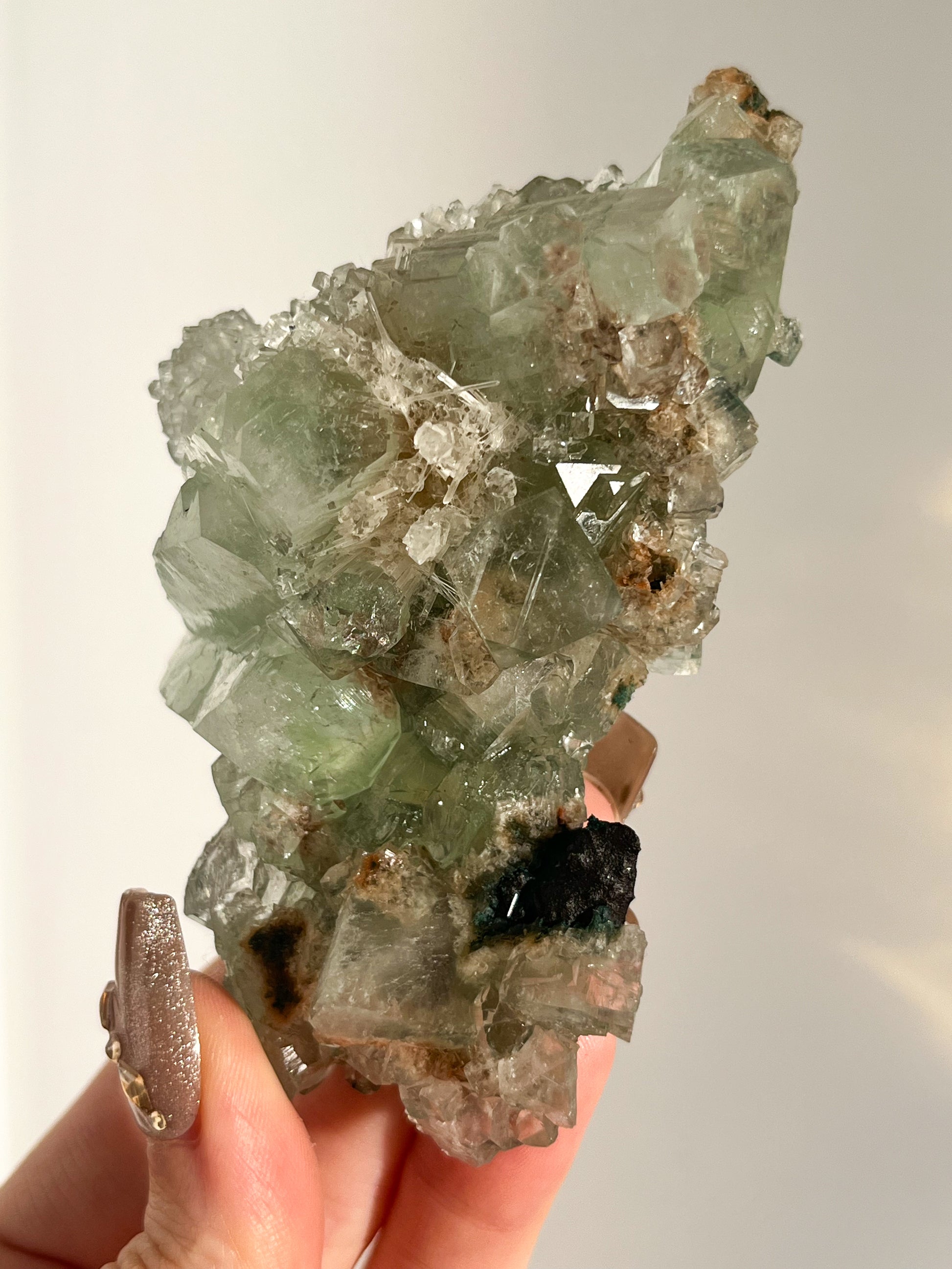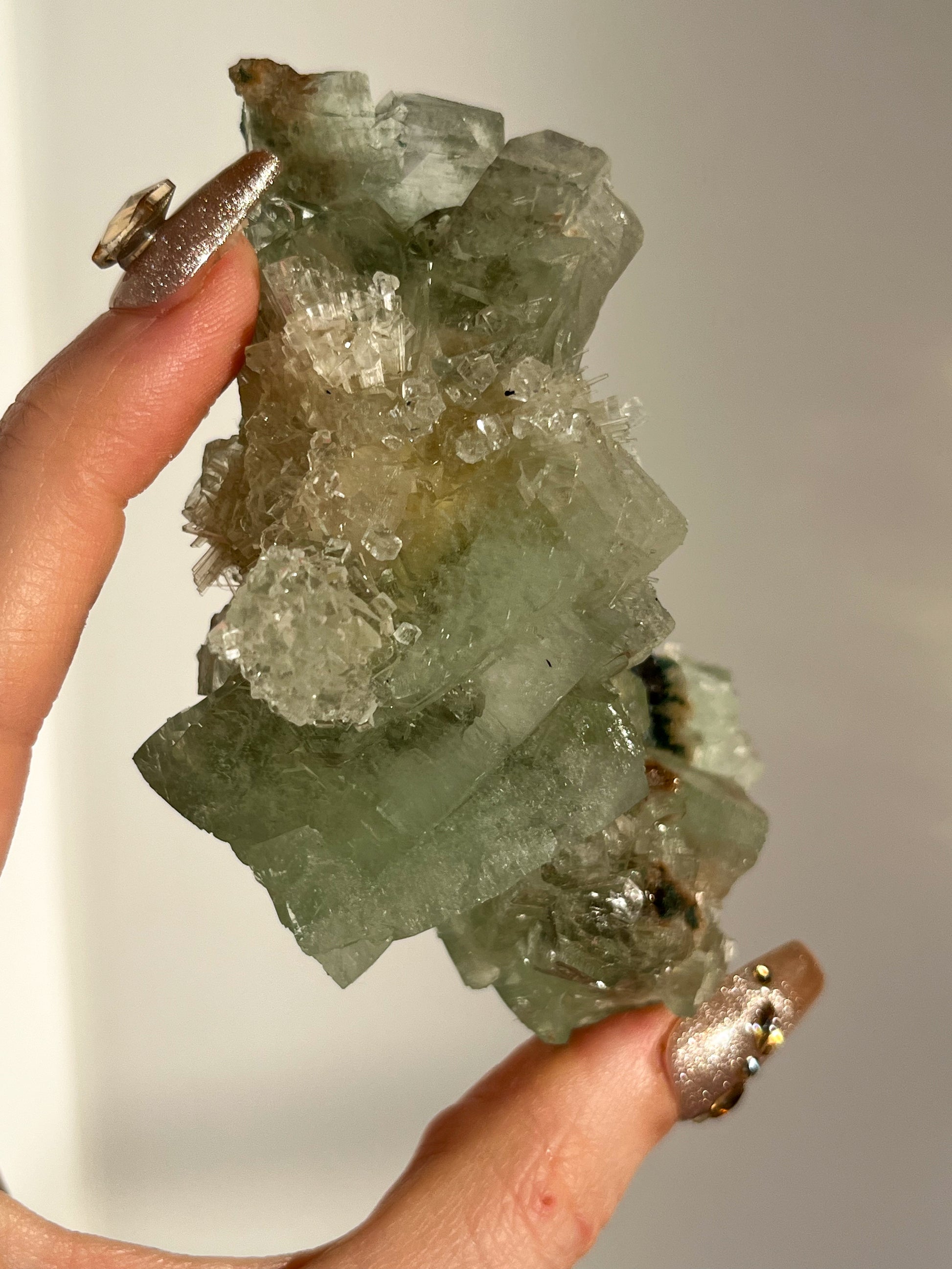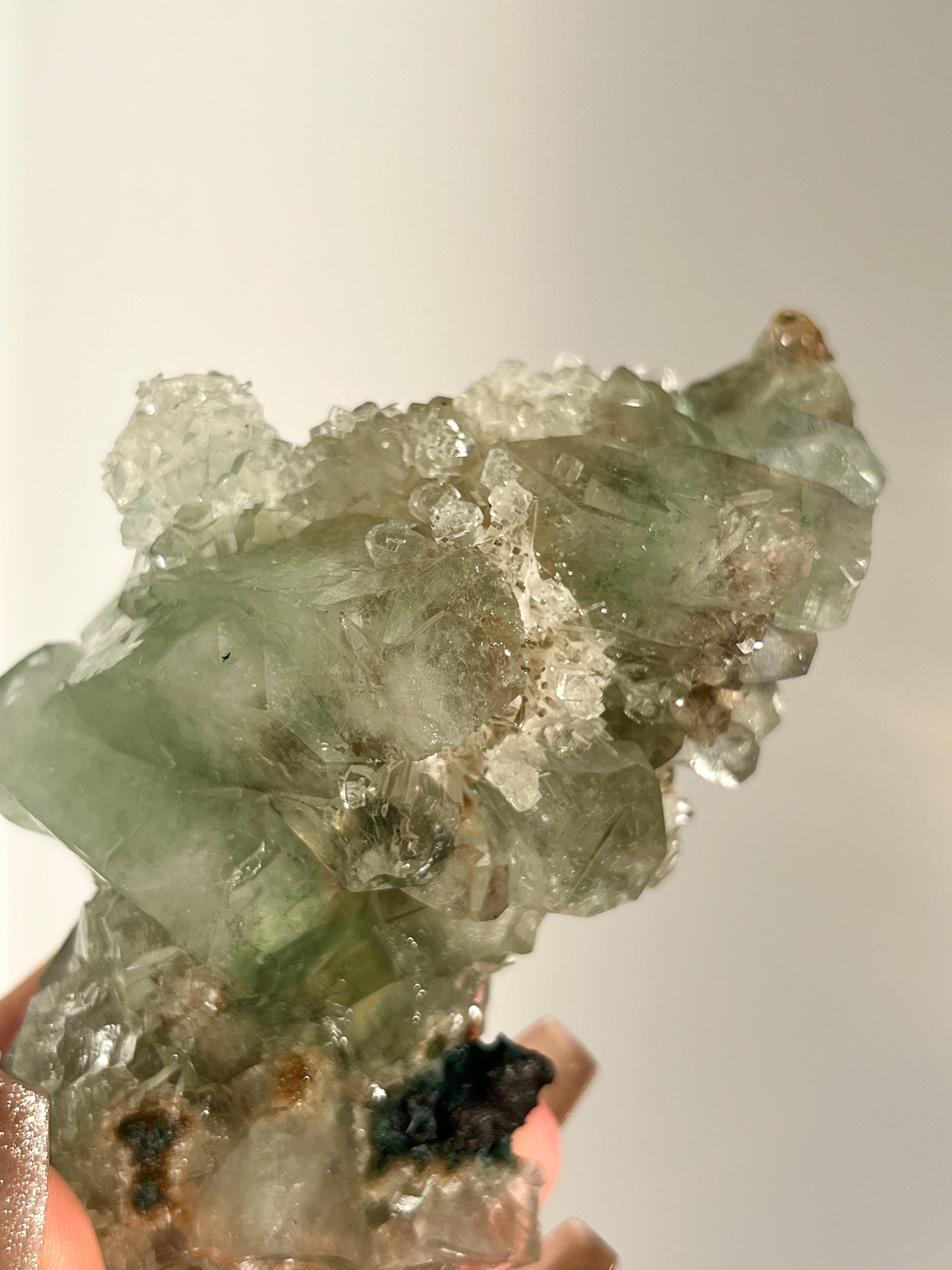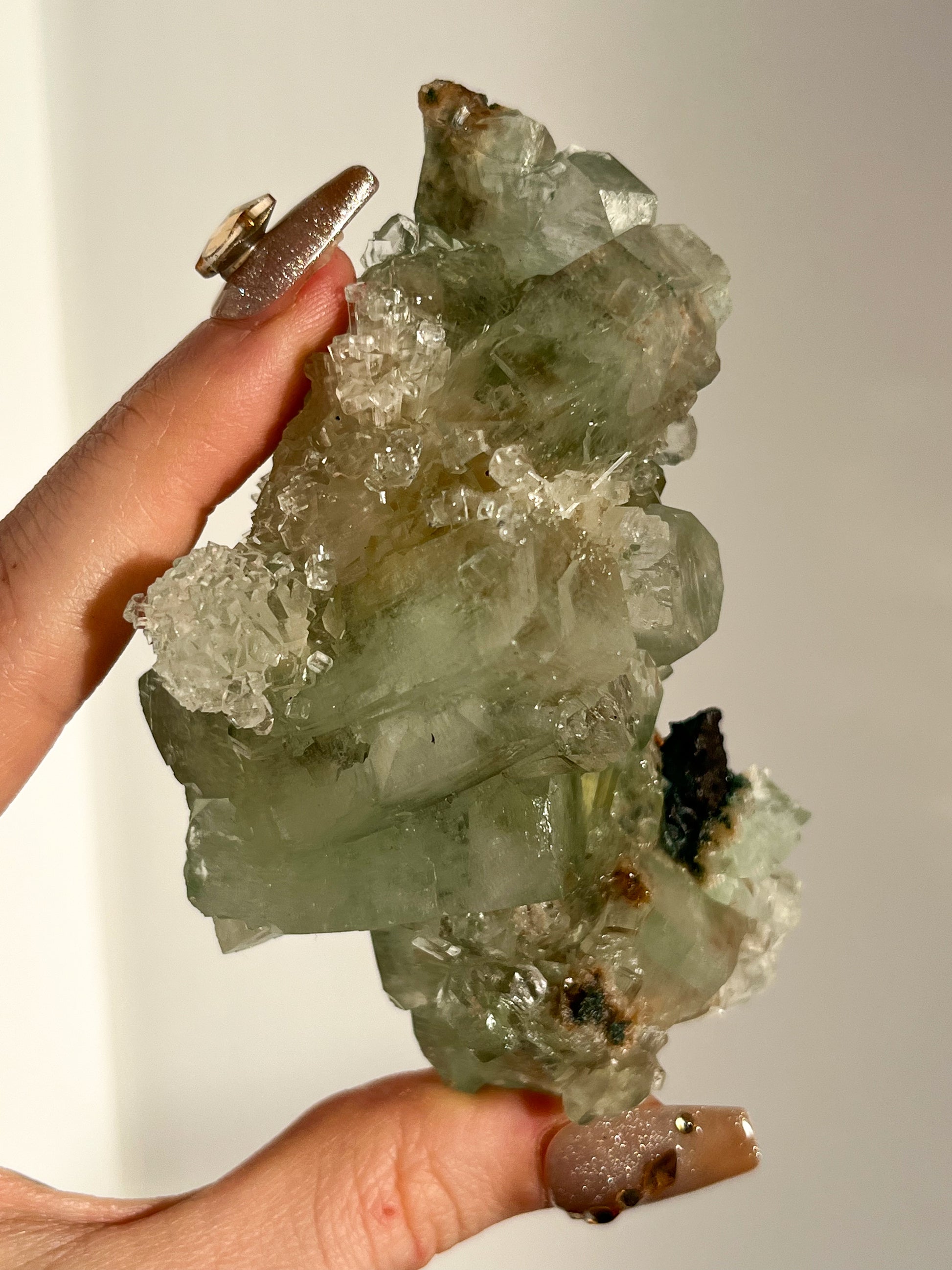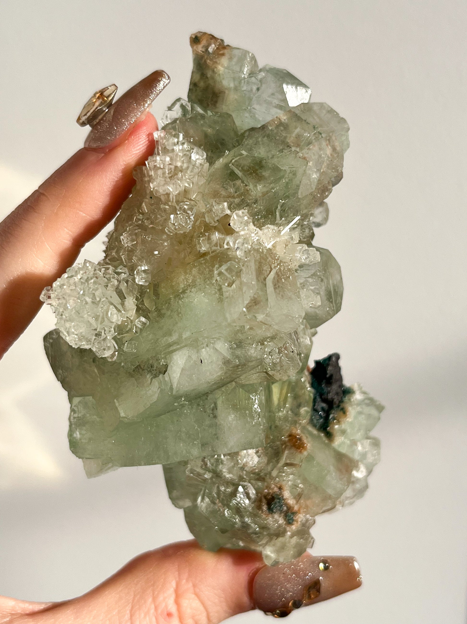 This find of Green Apophyllite, Thomsonite, Mesolite & Calcite specimens are a recent find in 2024 from the Apophyllite mines of India. This latest mineral discovery is from only one find. Making this desirable crystal combination not only rare, but a very exciting one.