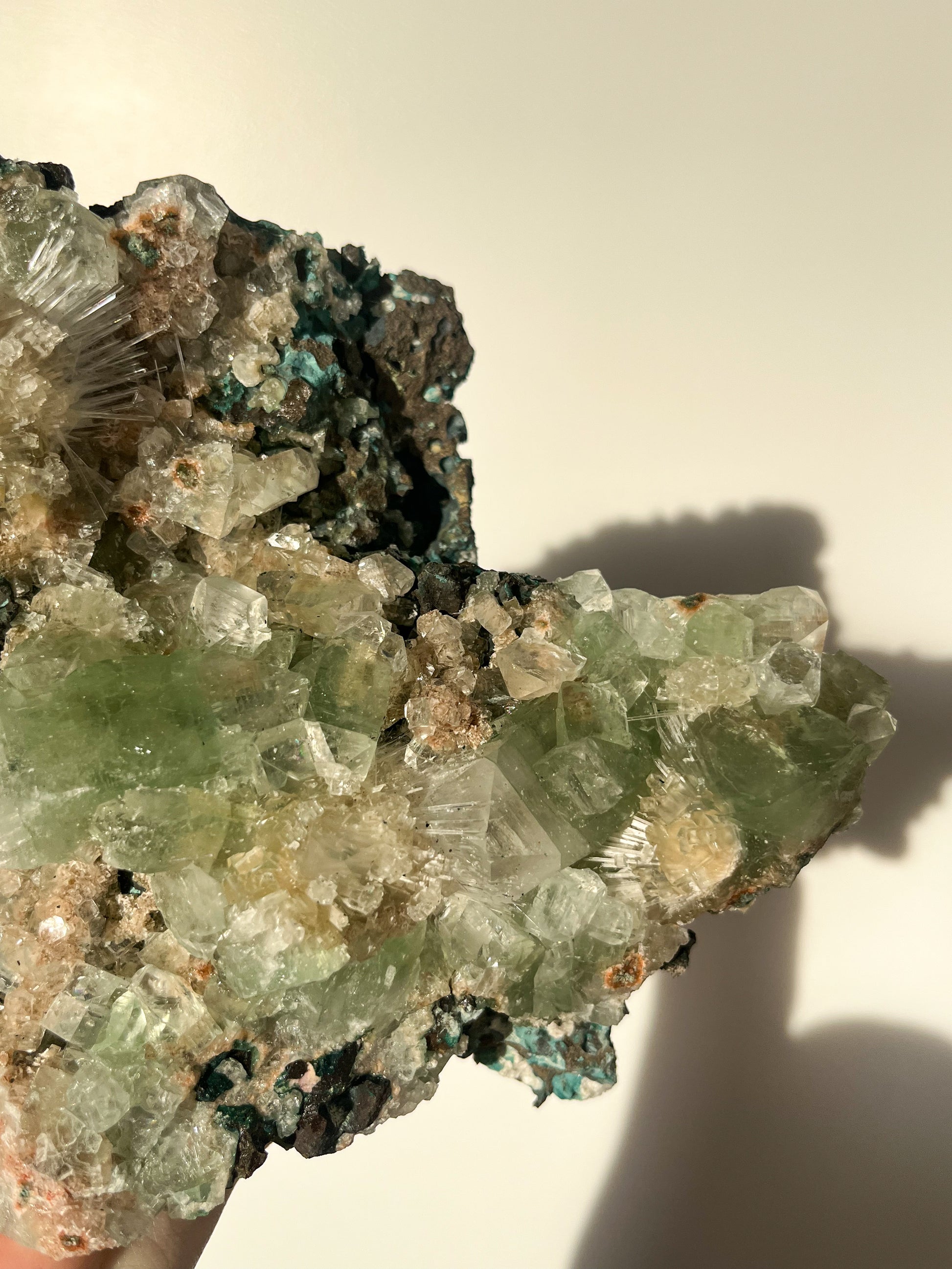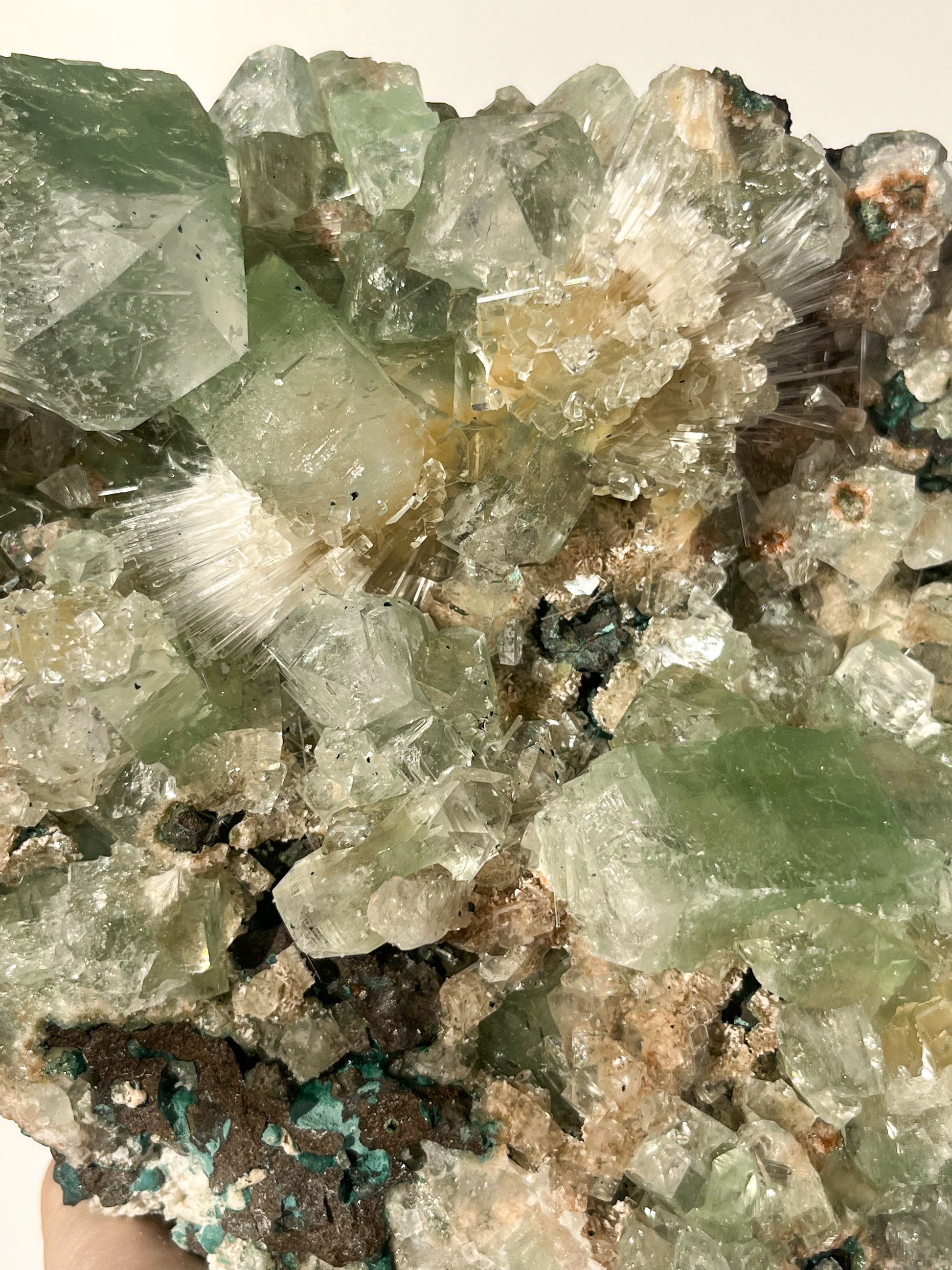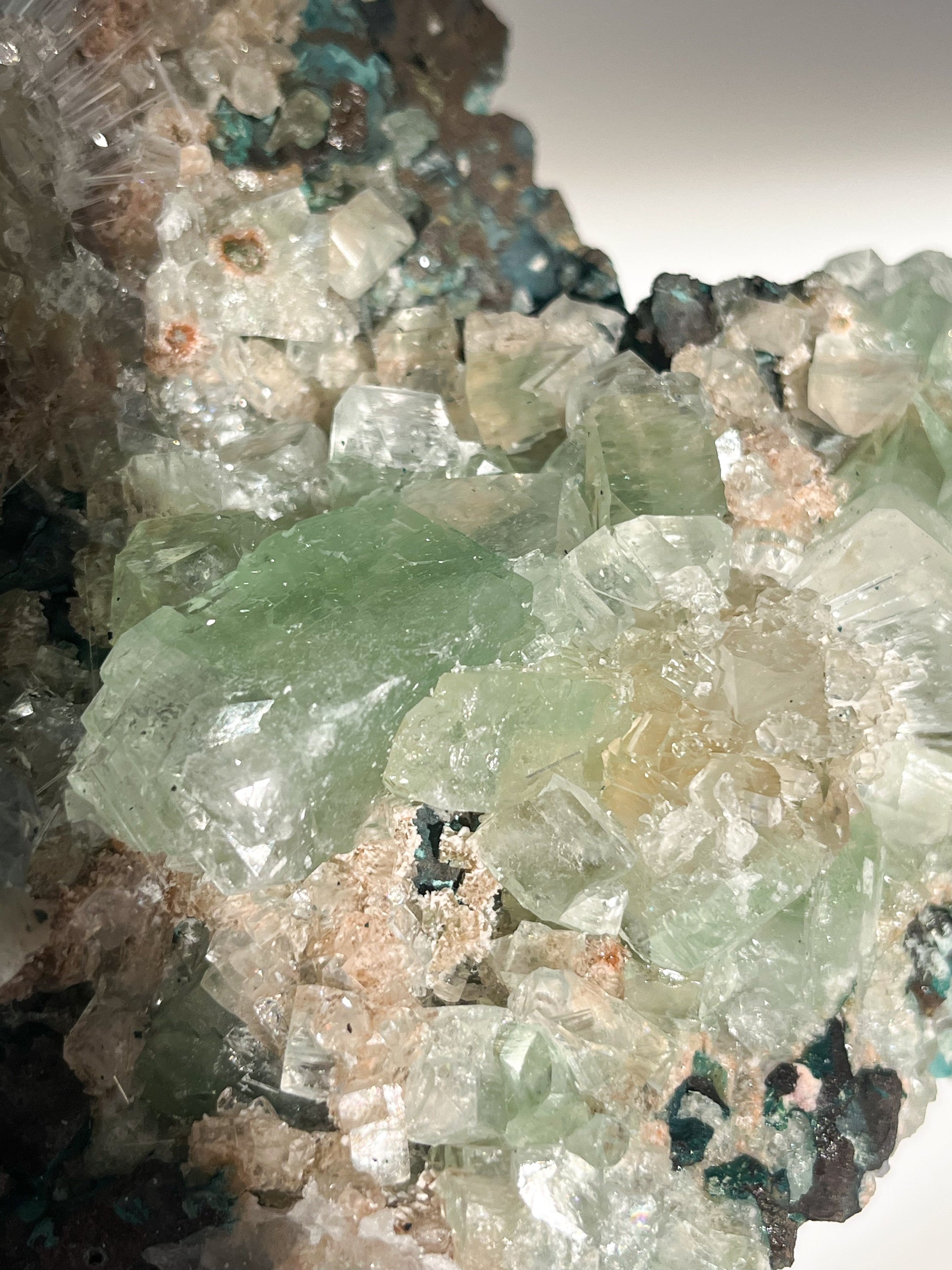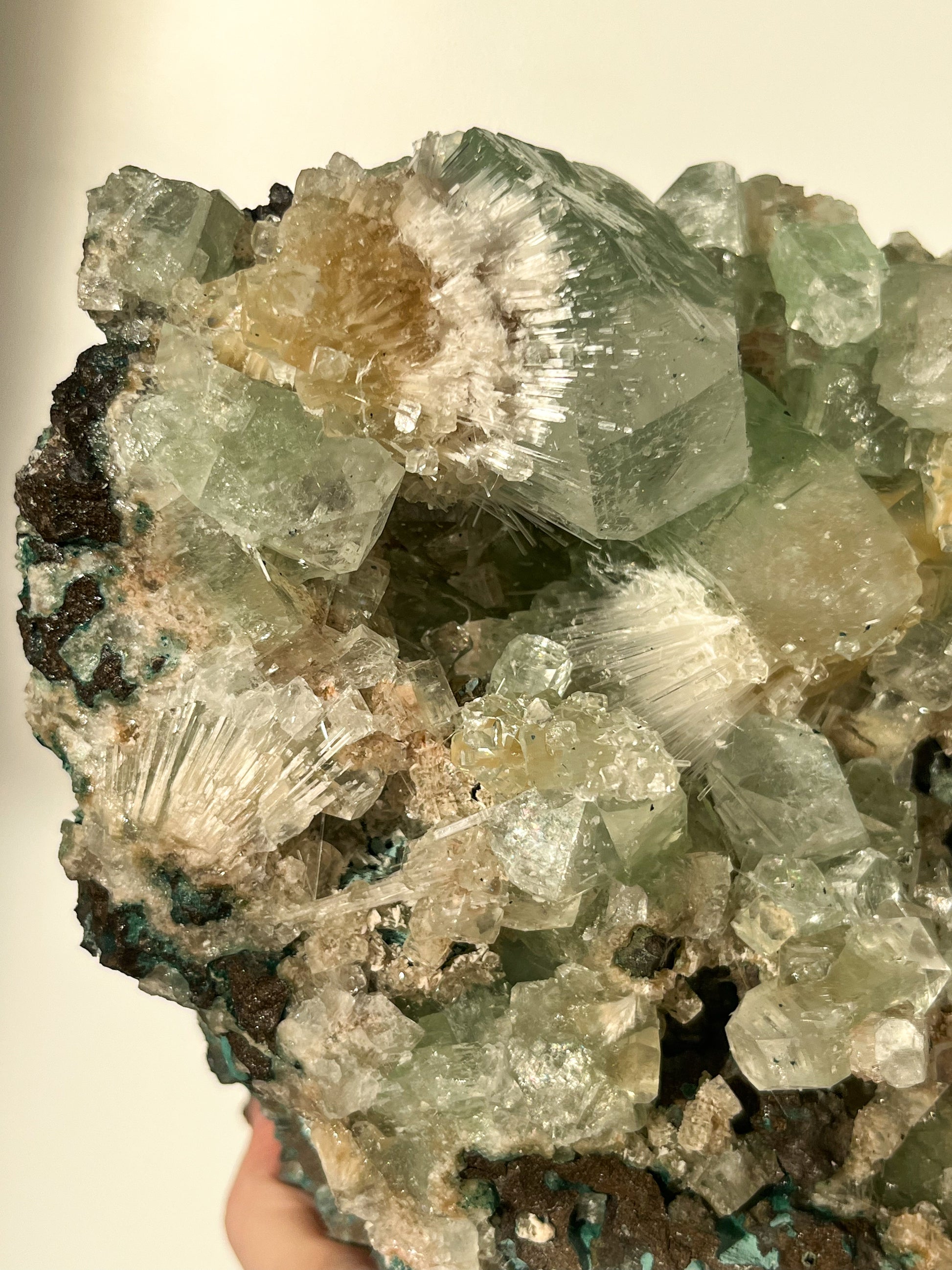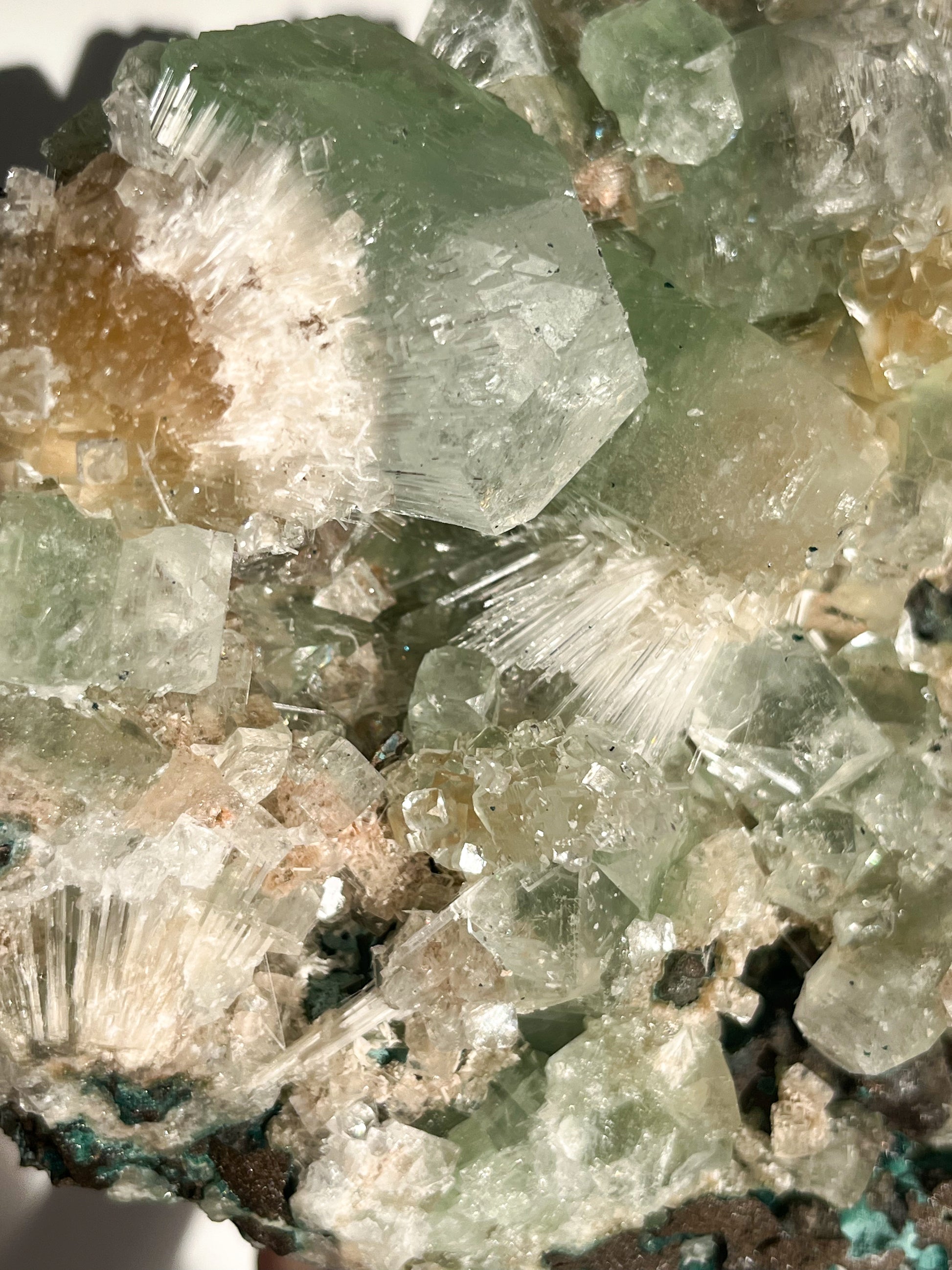 This find of Green Apophyllite, Thomsonite, Mesolite & Calcite specimens are a recent find in 2024 from the Apophyllite mines of India. This latest mineral discovery is from only one find. Making this desirable crystal combination not only rare, but a very exciting one.