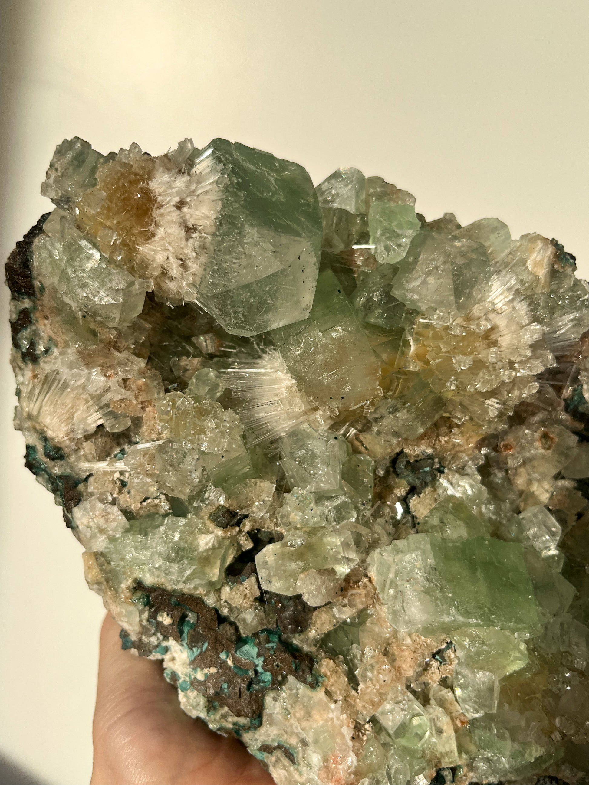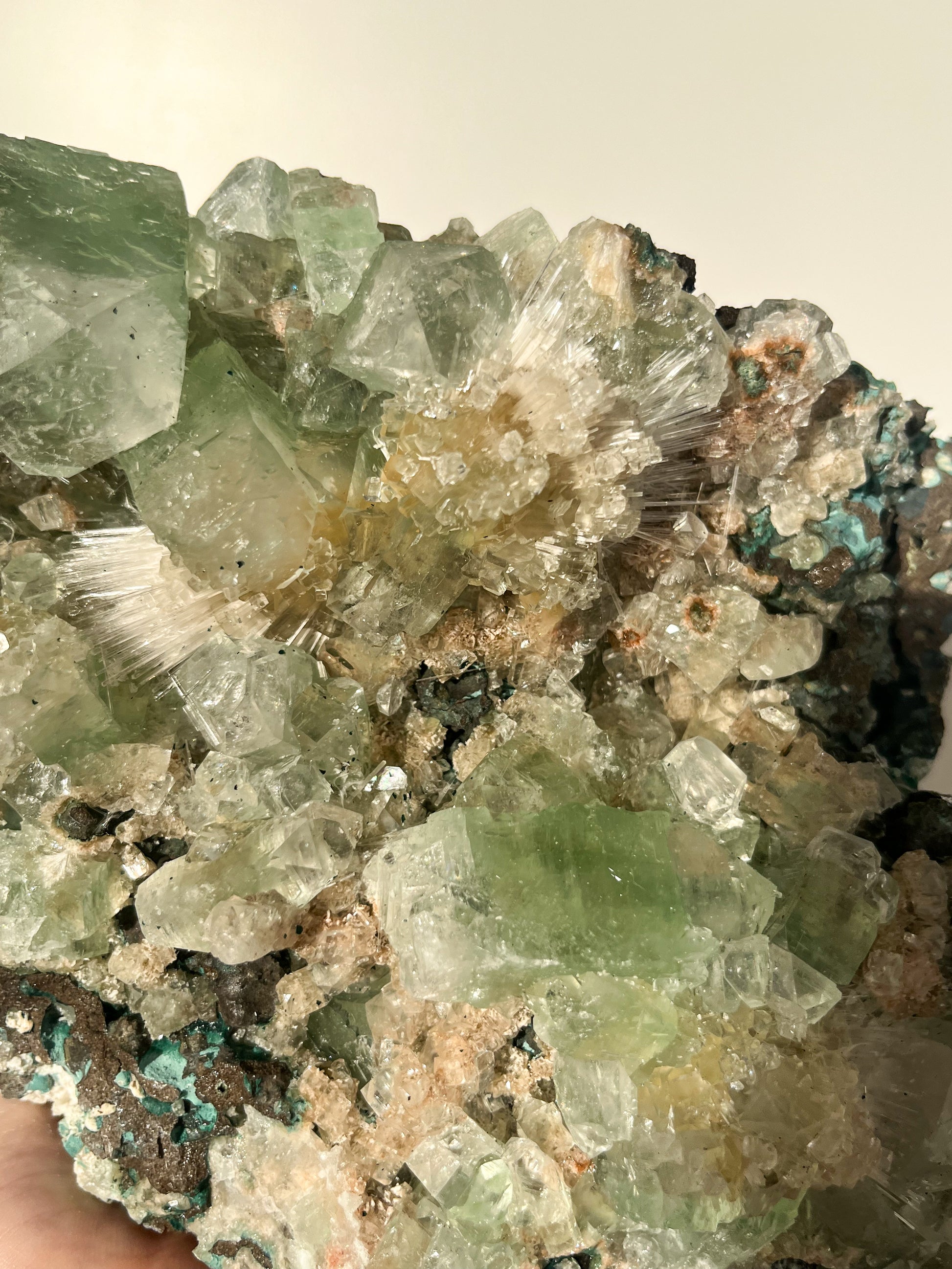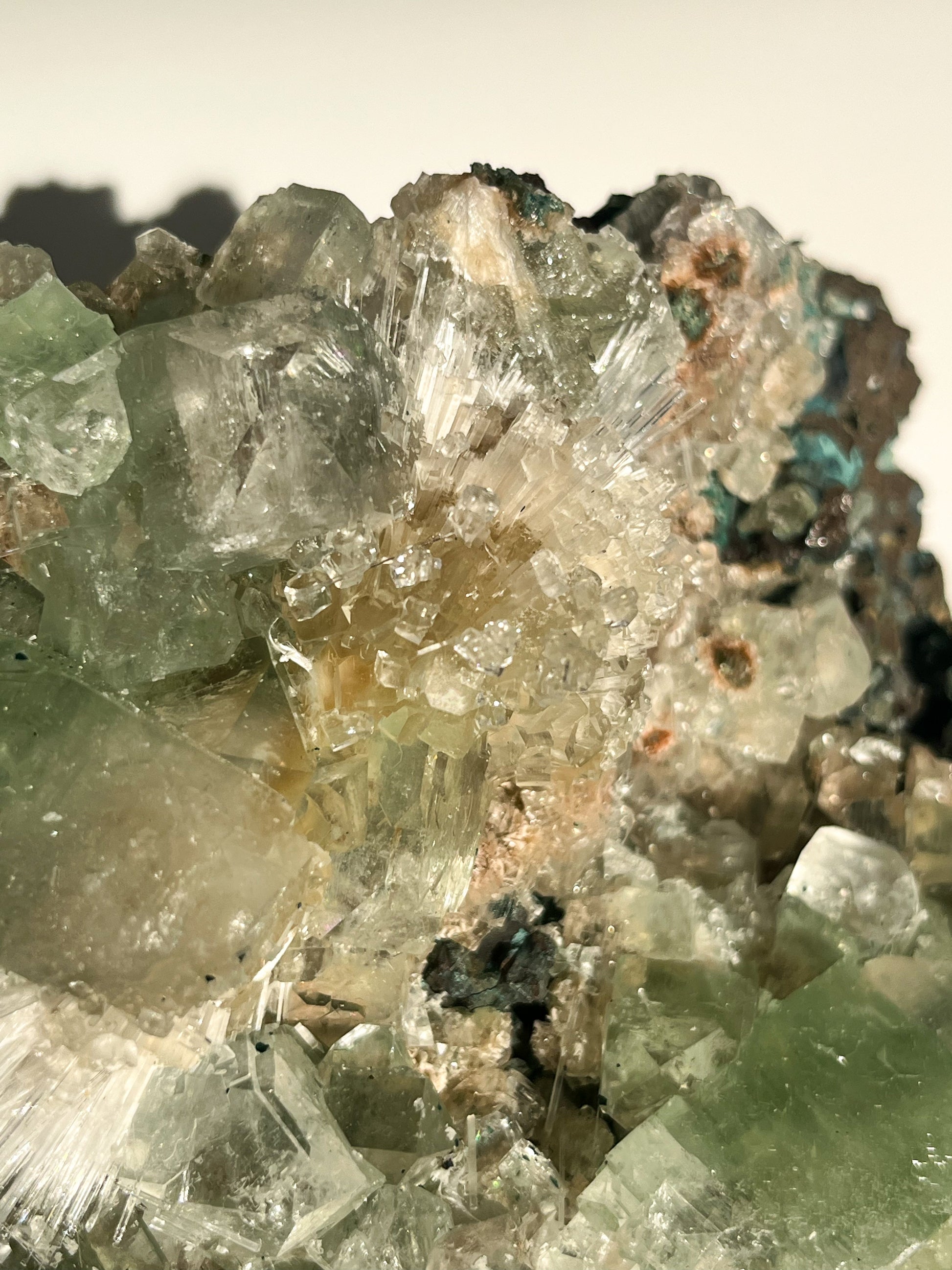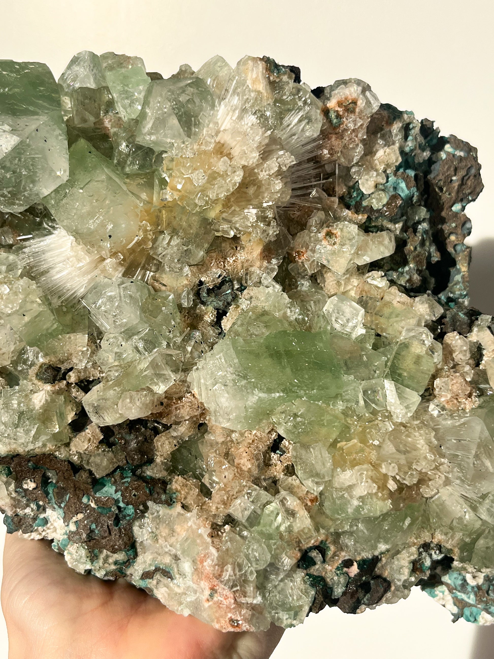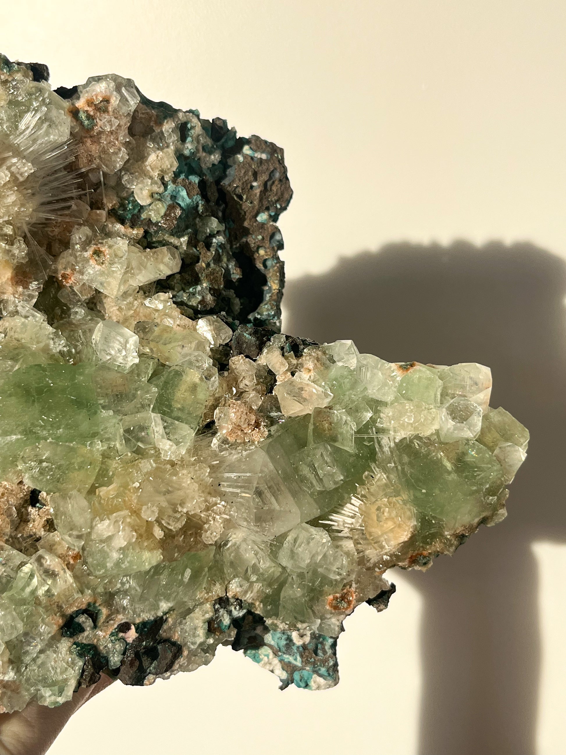 This find of Green Apophyllite, Thomsonite, Mesolite & Calcite specimens are a recent find in 2024 from the Apophyllite mines of India. This latest mineral discovery is from only one find. Making this desirable crystal combination not only rare, but a very exciting one.