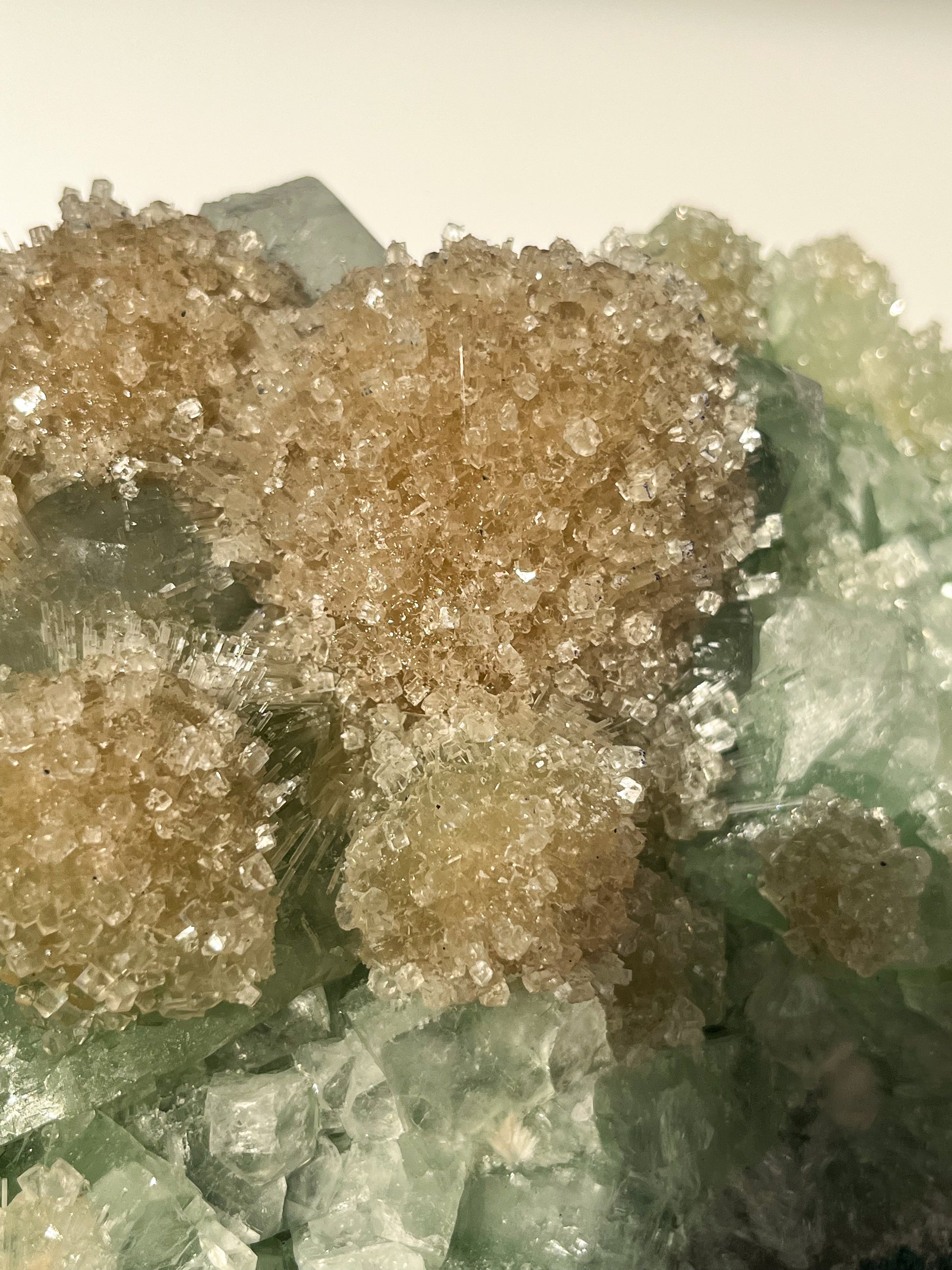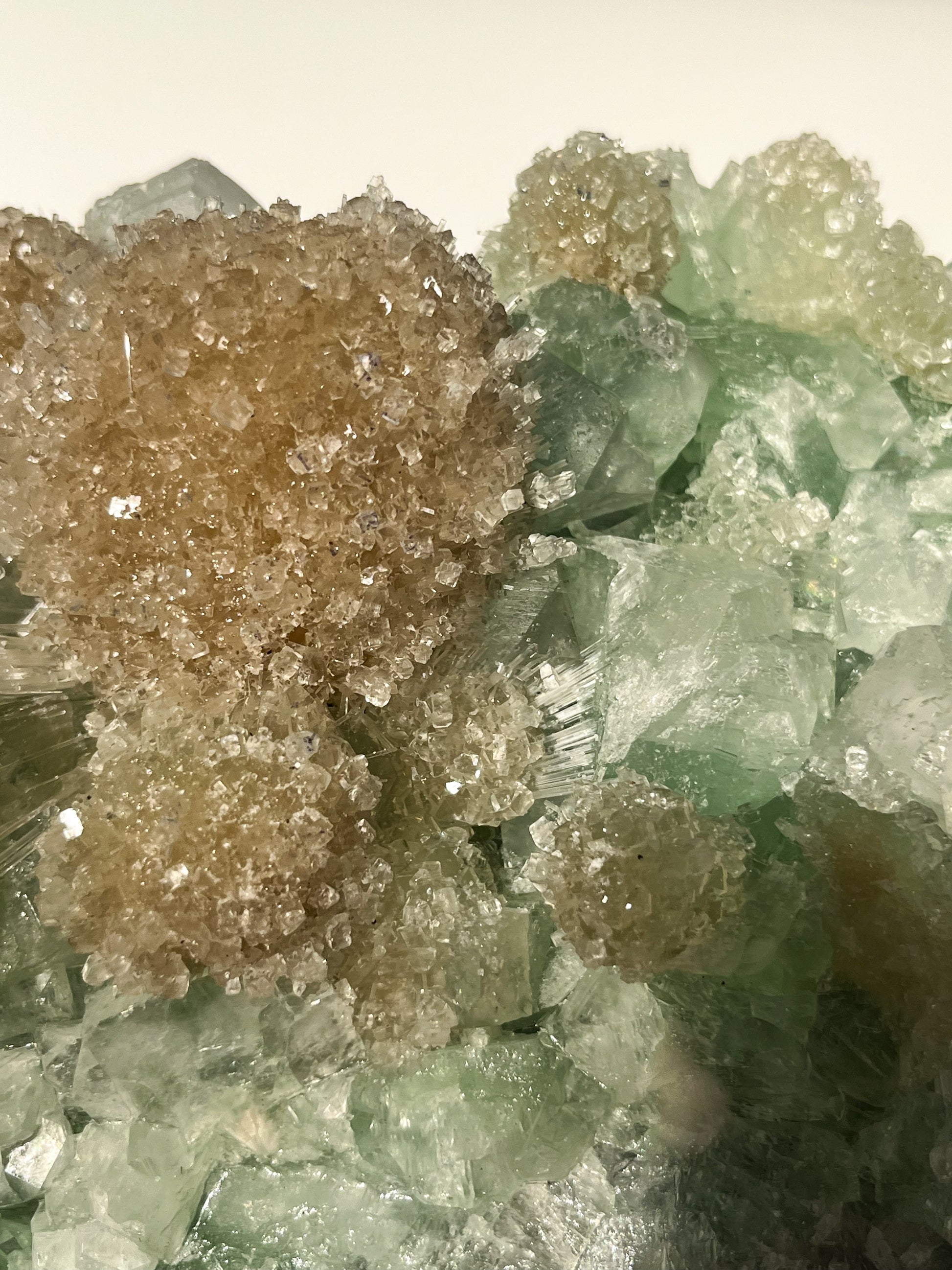 This find of Green Apophyllite, Thomsonite, Mesolite & Calcite specimens are a recent find in 2024 from the Apophyllite mines of India. This latest mineral discovery is from only one find. Making this desirable crystal combination not only rare, but a very exciting one.