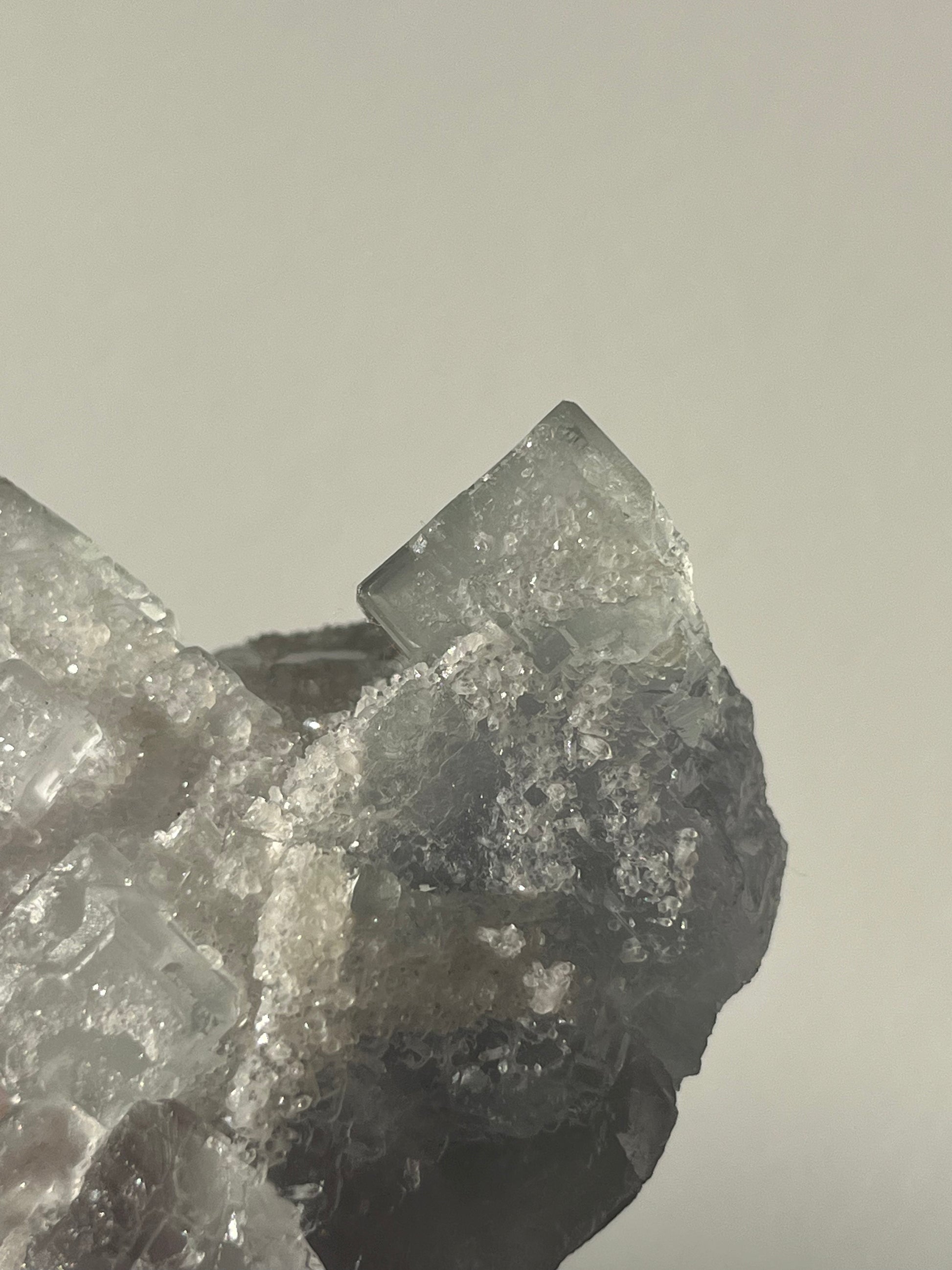 This specimen displays a naturally cleaved posterior aspect from extraction, while the frontal faces remain beautifully preserved and accented by secondary druzy quartz growth. Such features are valued by collectors as evidence of authentic formation and recovery.