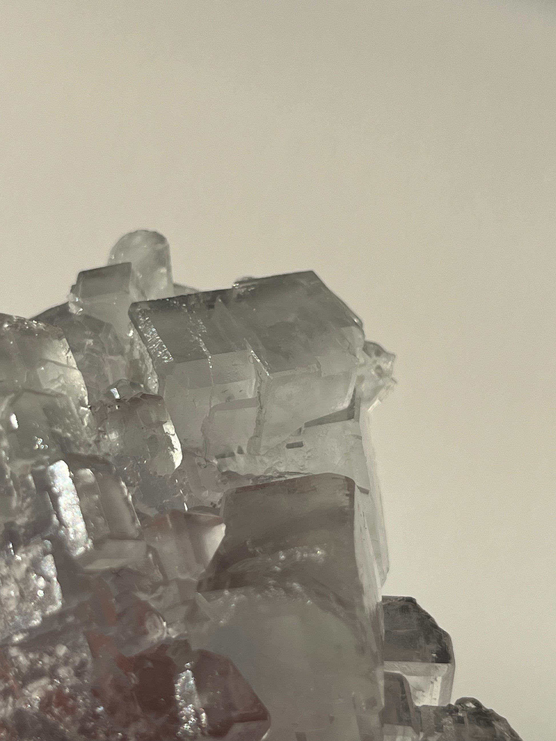 Smaller sized but well sized specimen with excellent visual complexity given by the pale white phantoms within and surface interest with raised cubic fluorite surfaces.
