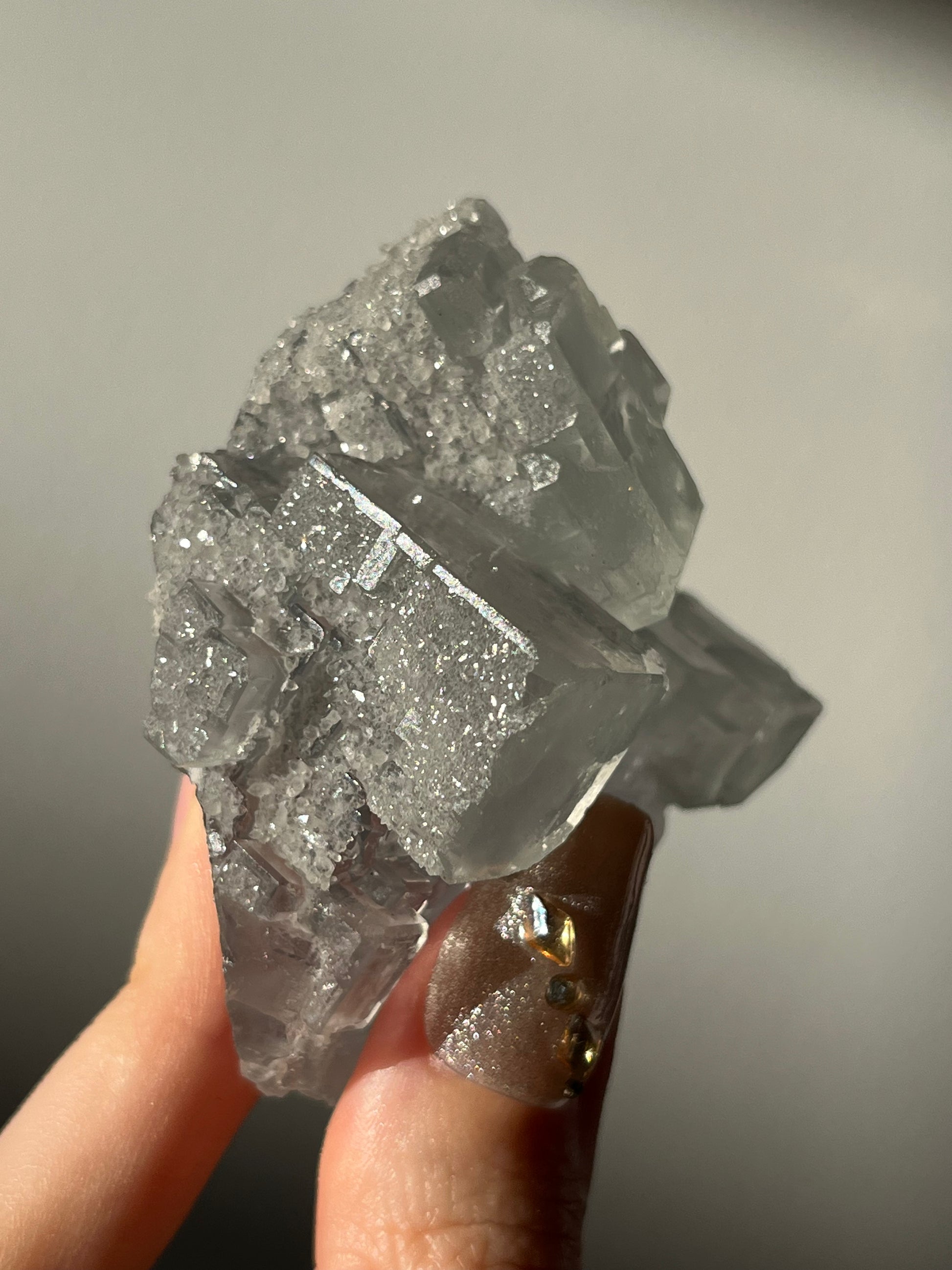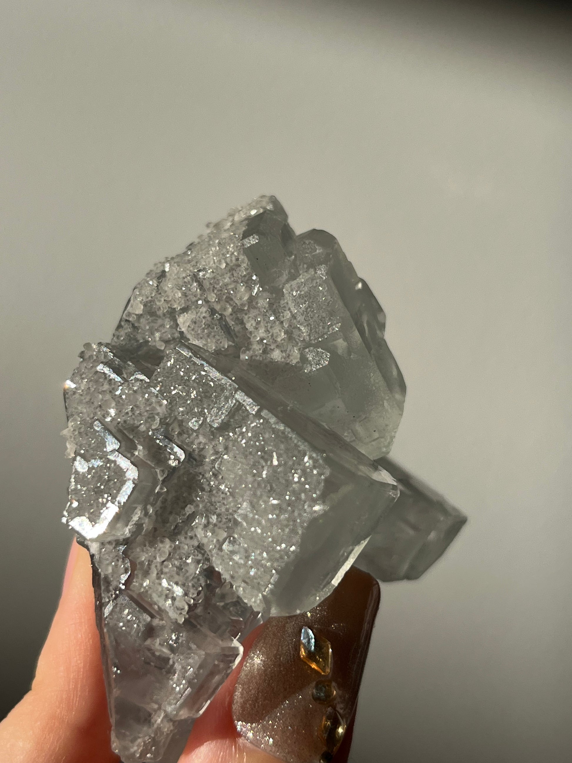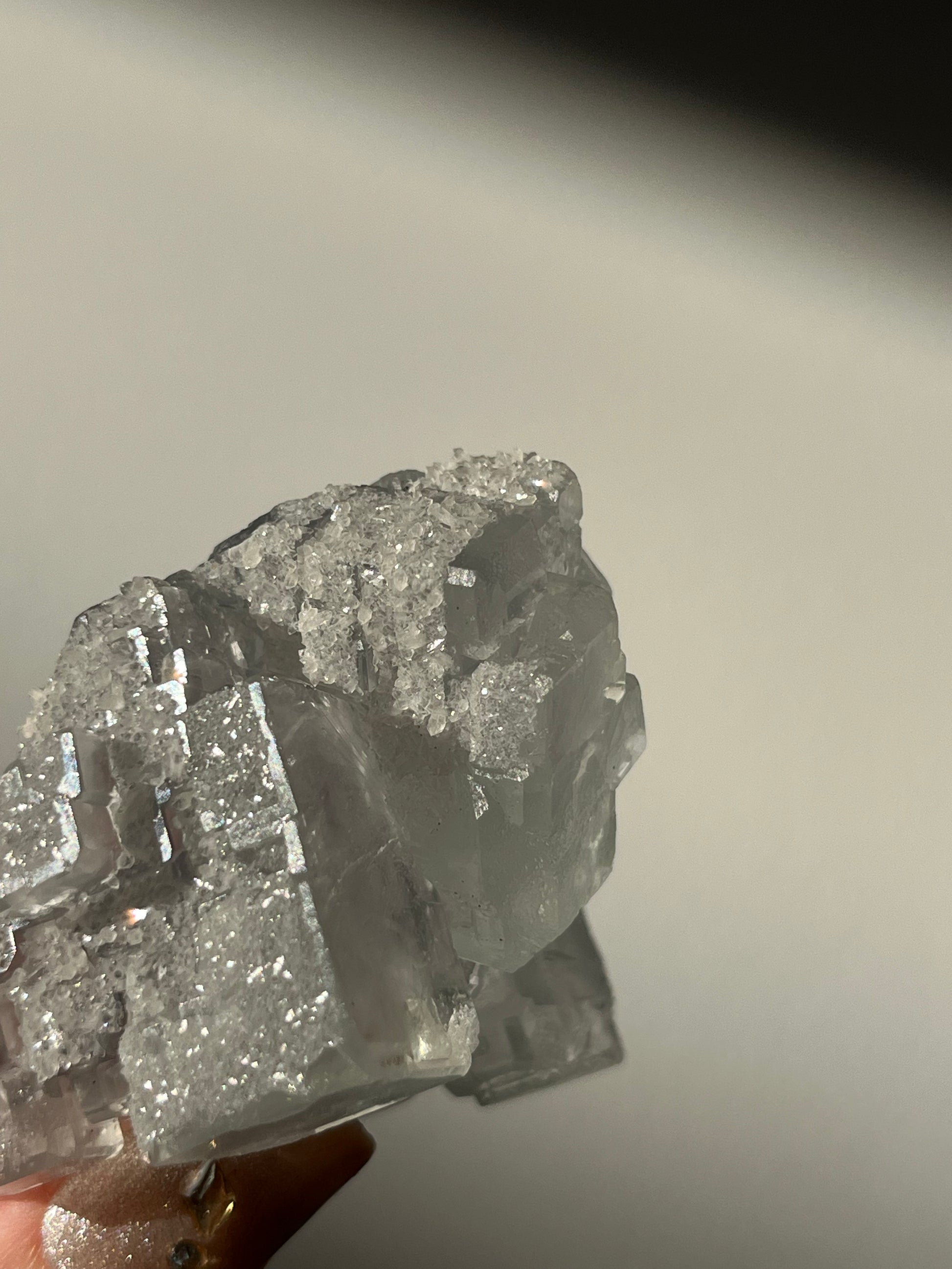 Druzy Quartz Coated Phantom Green Fluorite Specimen M