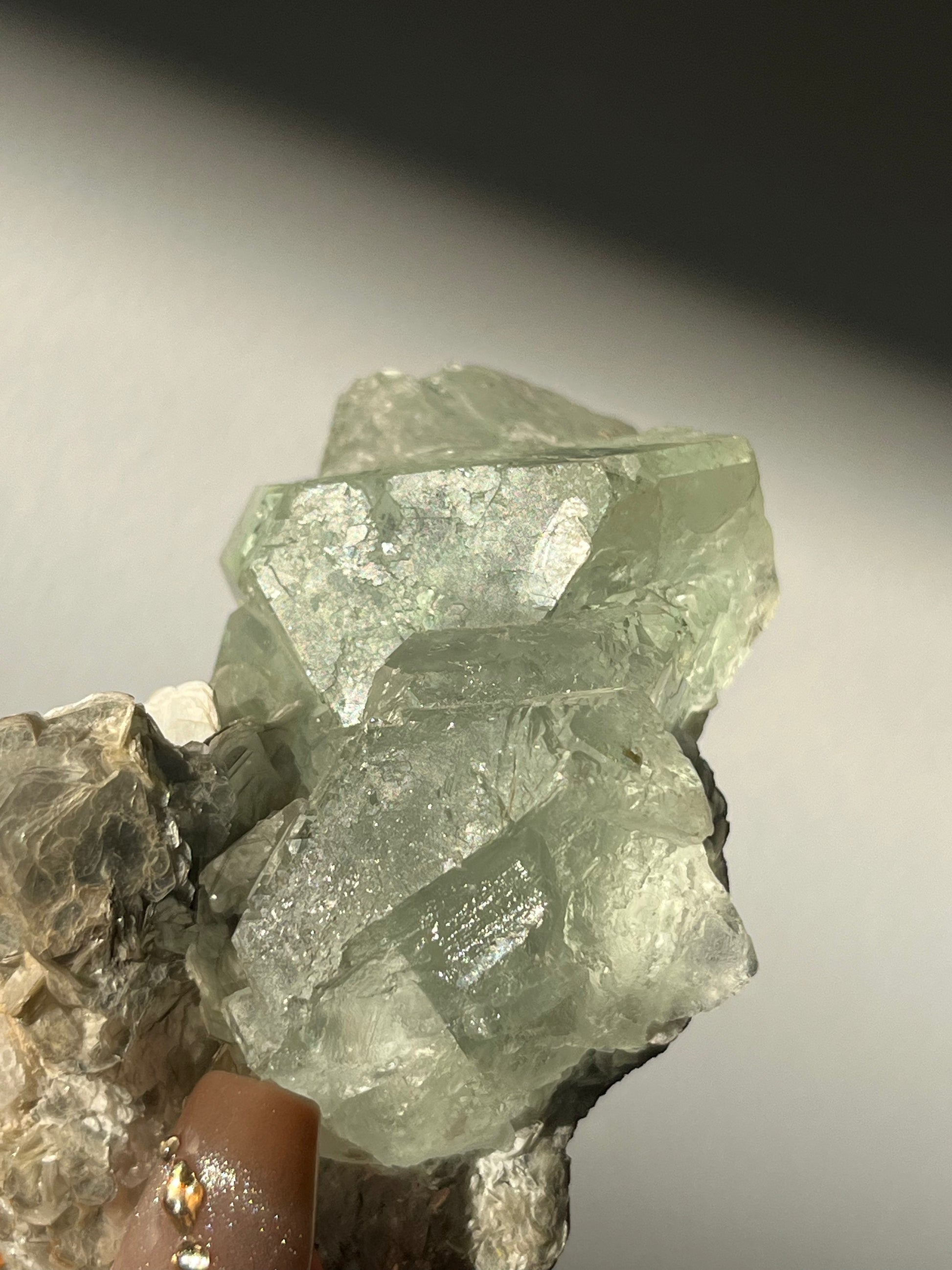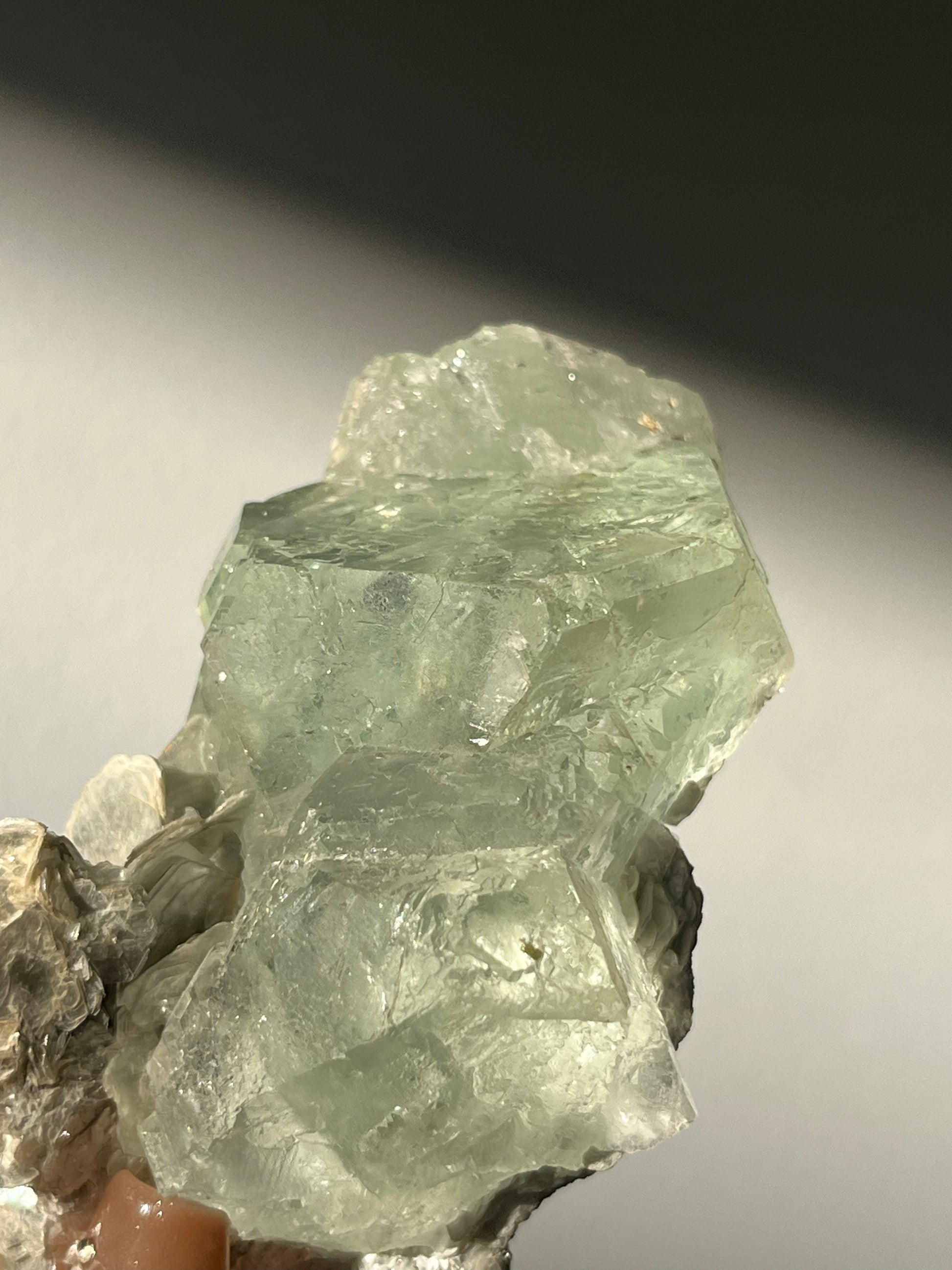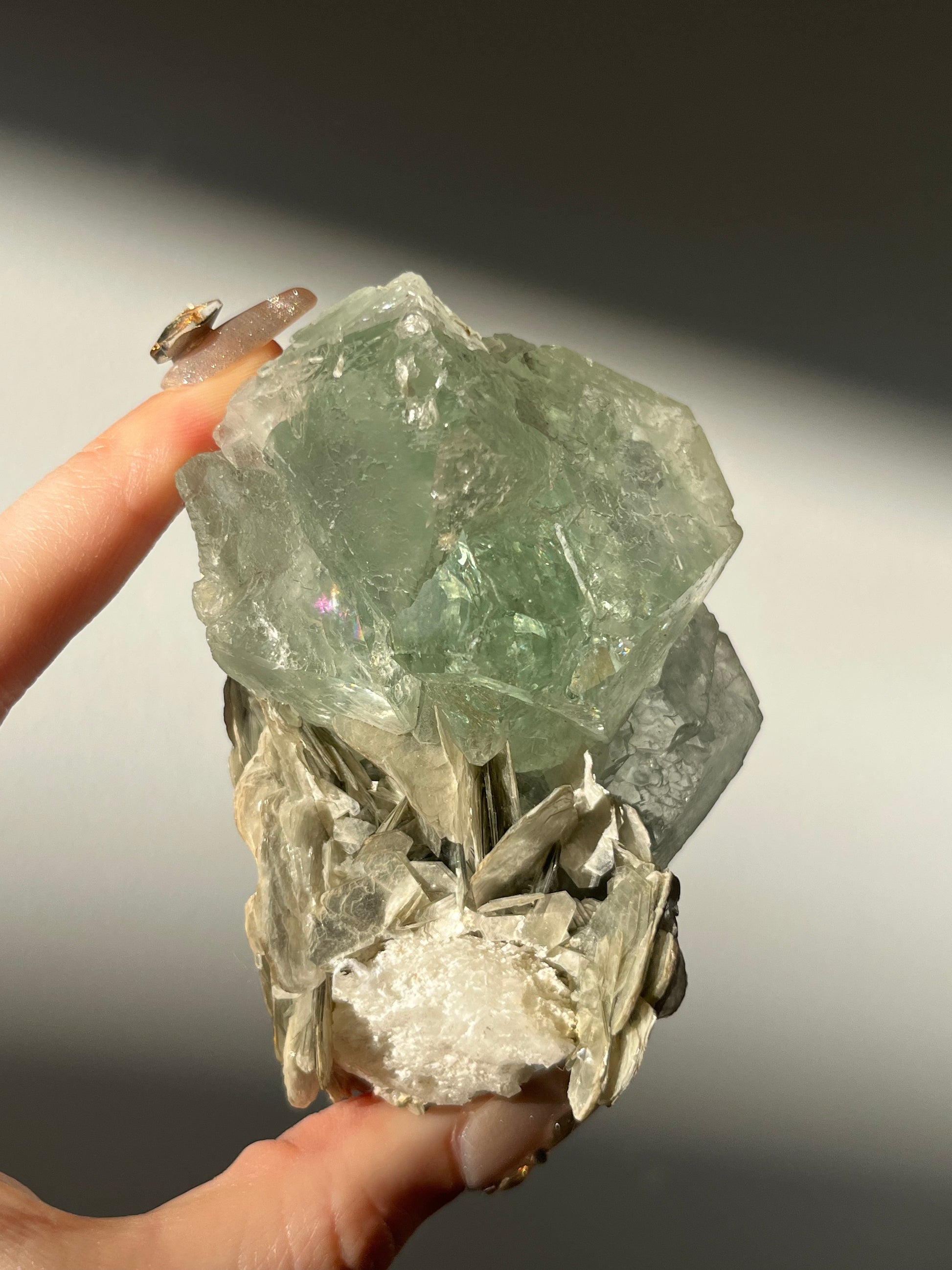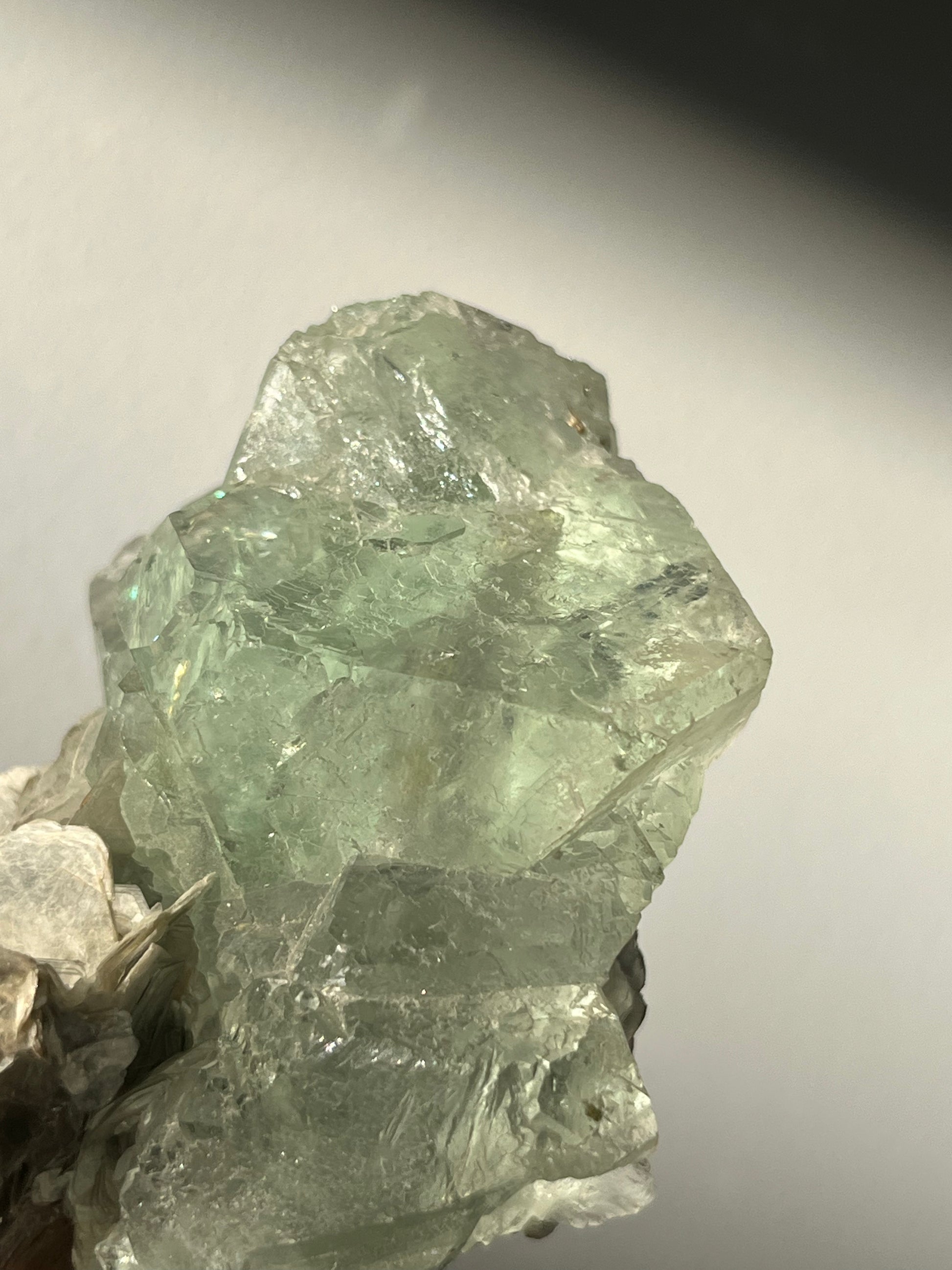 Green Fluorite with Silver Muscovite & Albite Meaning