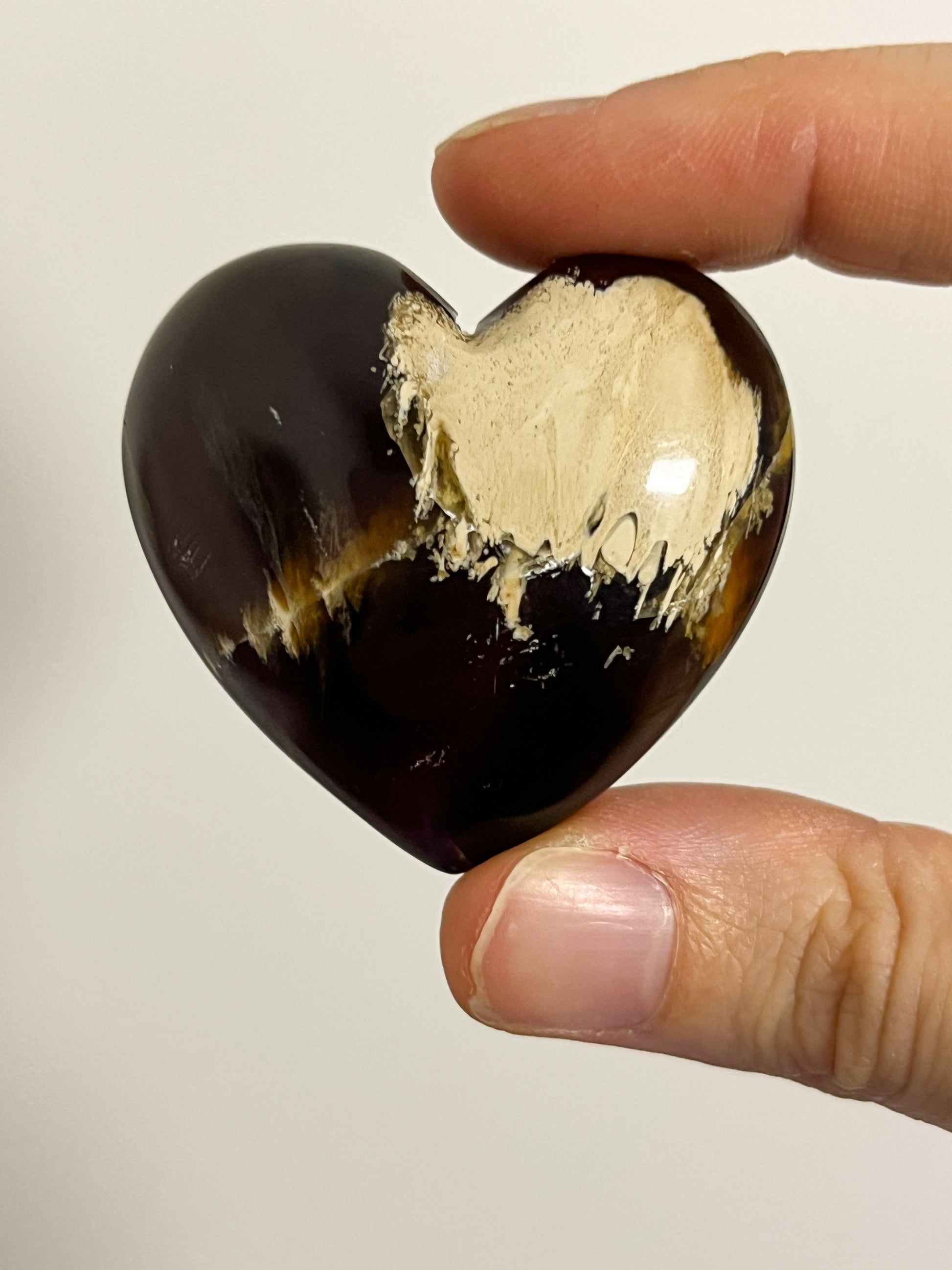 Amber is fossilised tree sap. It usually contains fossilised insects, microorganisms, and/or plant material that is millions of years old.