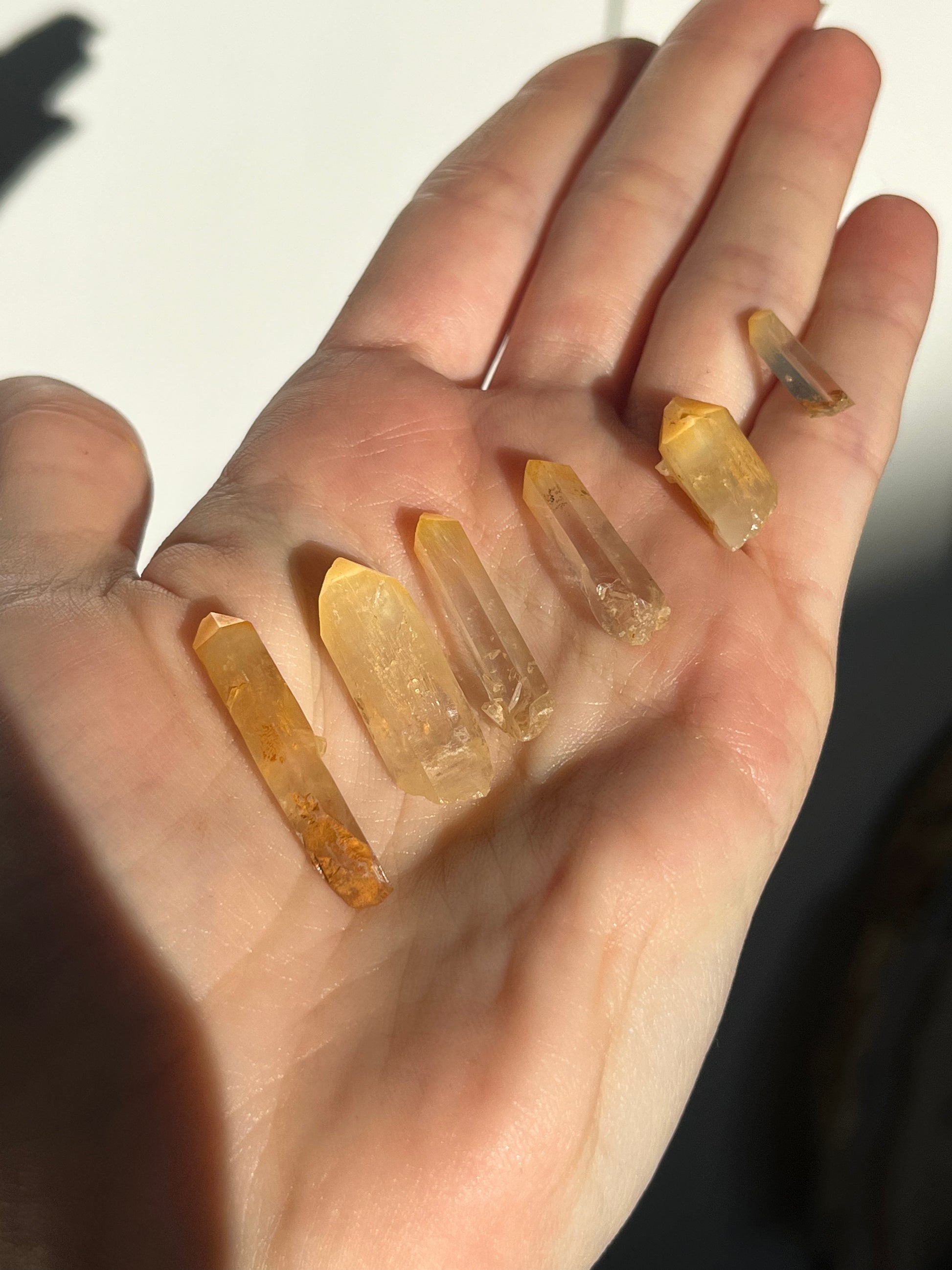 Espécimen en miniatura de punta de cuarzo de mango (elegido intuitivamente)