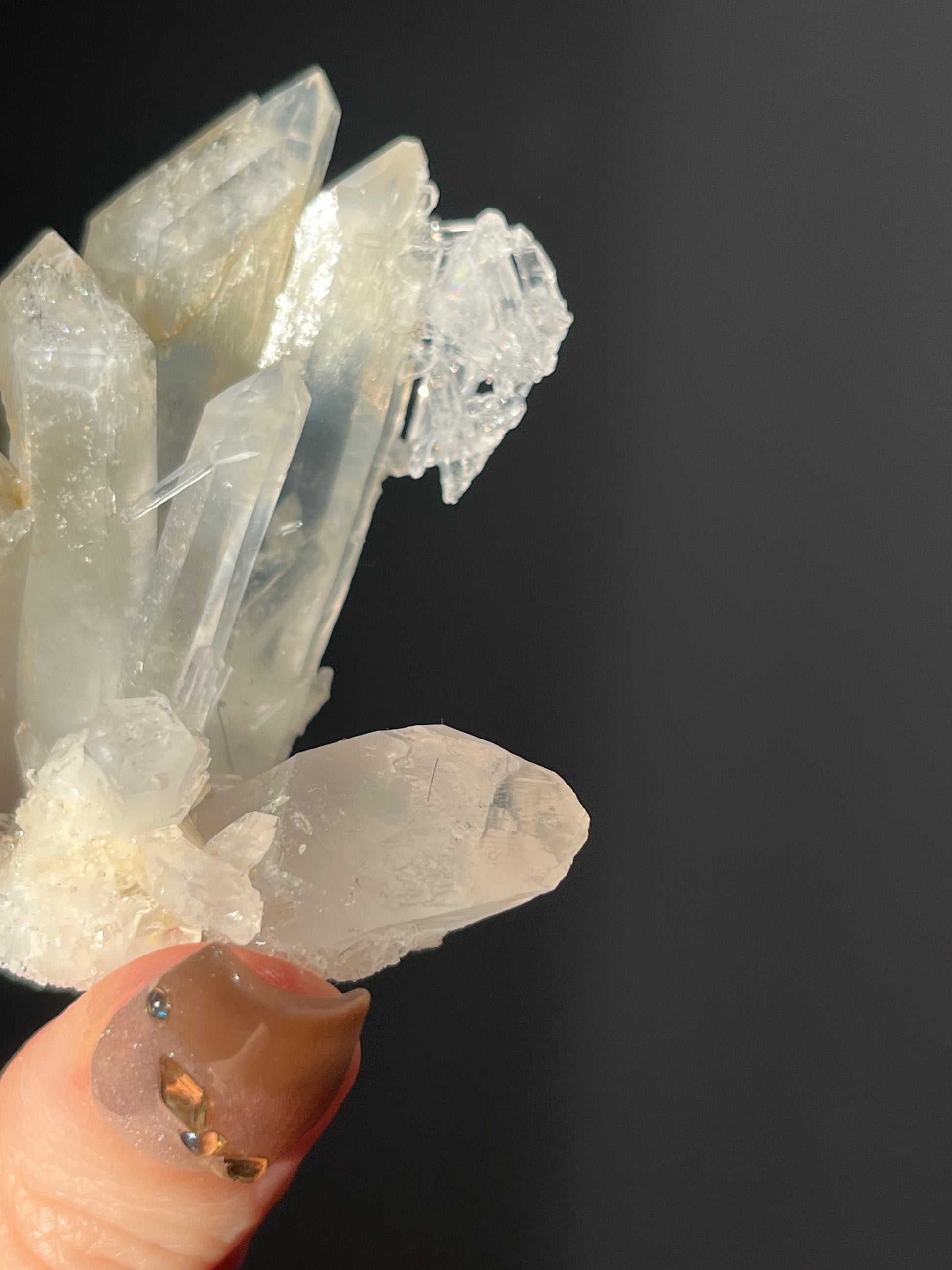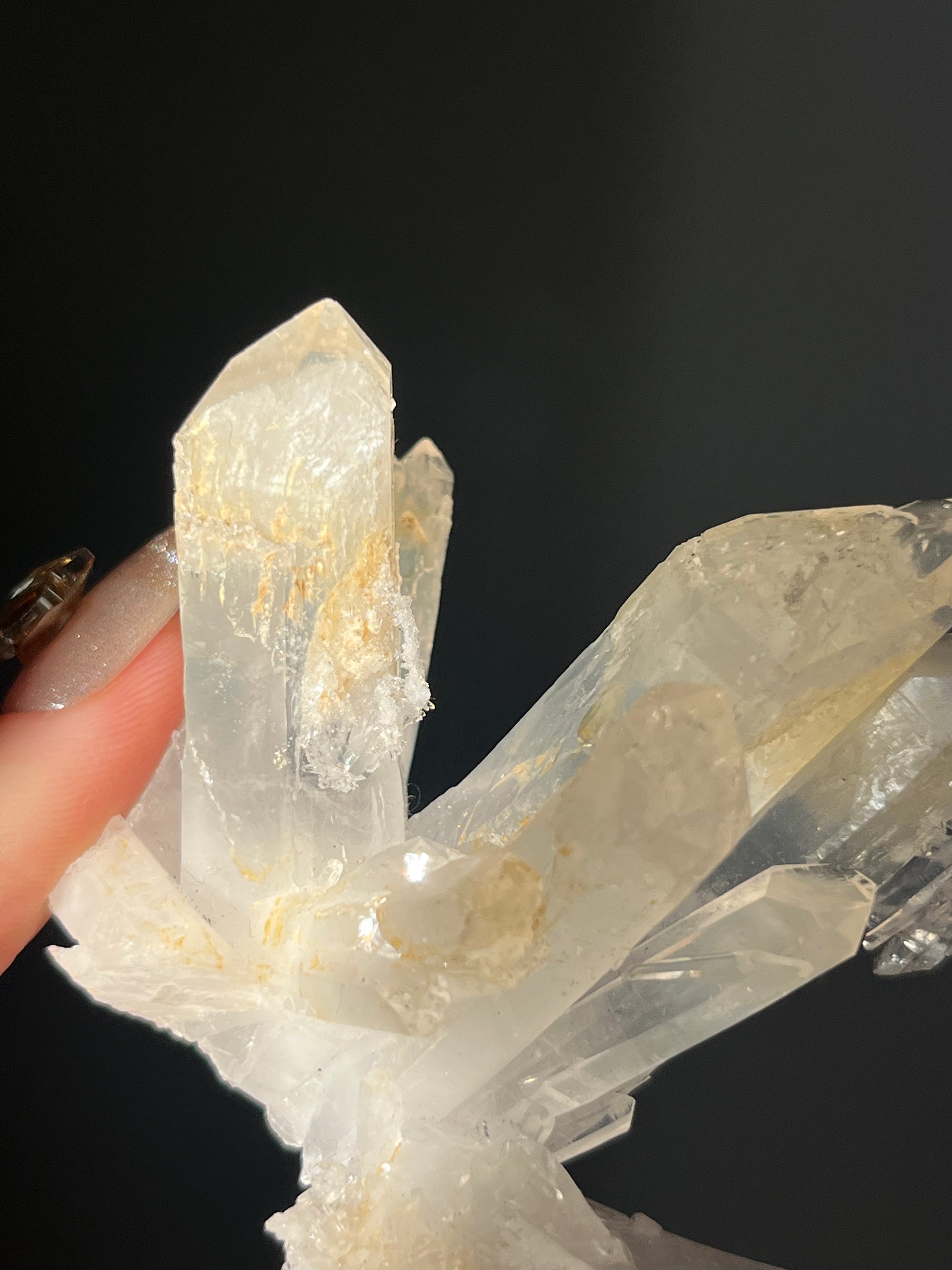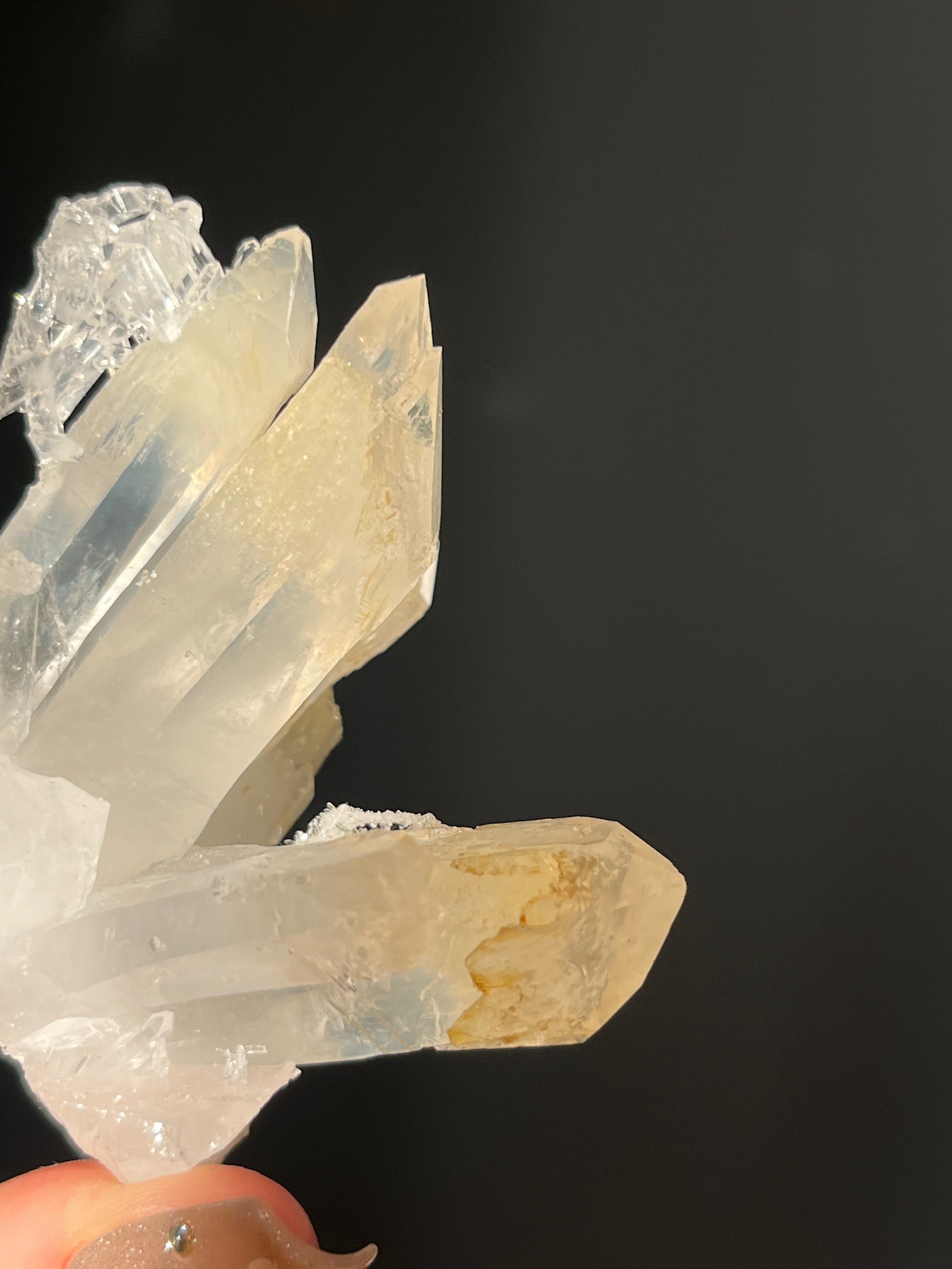 El cuarzo mango es una forma rara de cuarzo que solo se encuentra en Colombia cuyo color amarillo anaranjado lo imparte el compuesto halloysita.