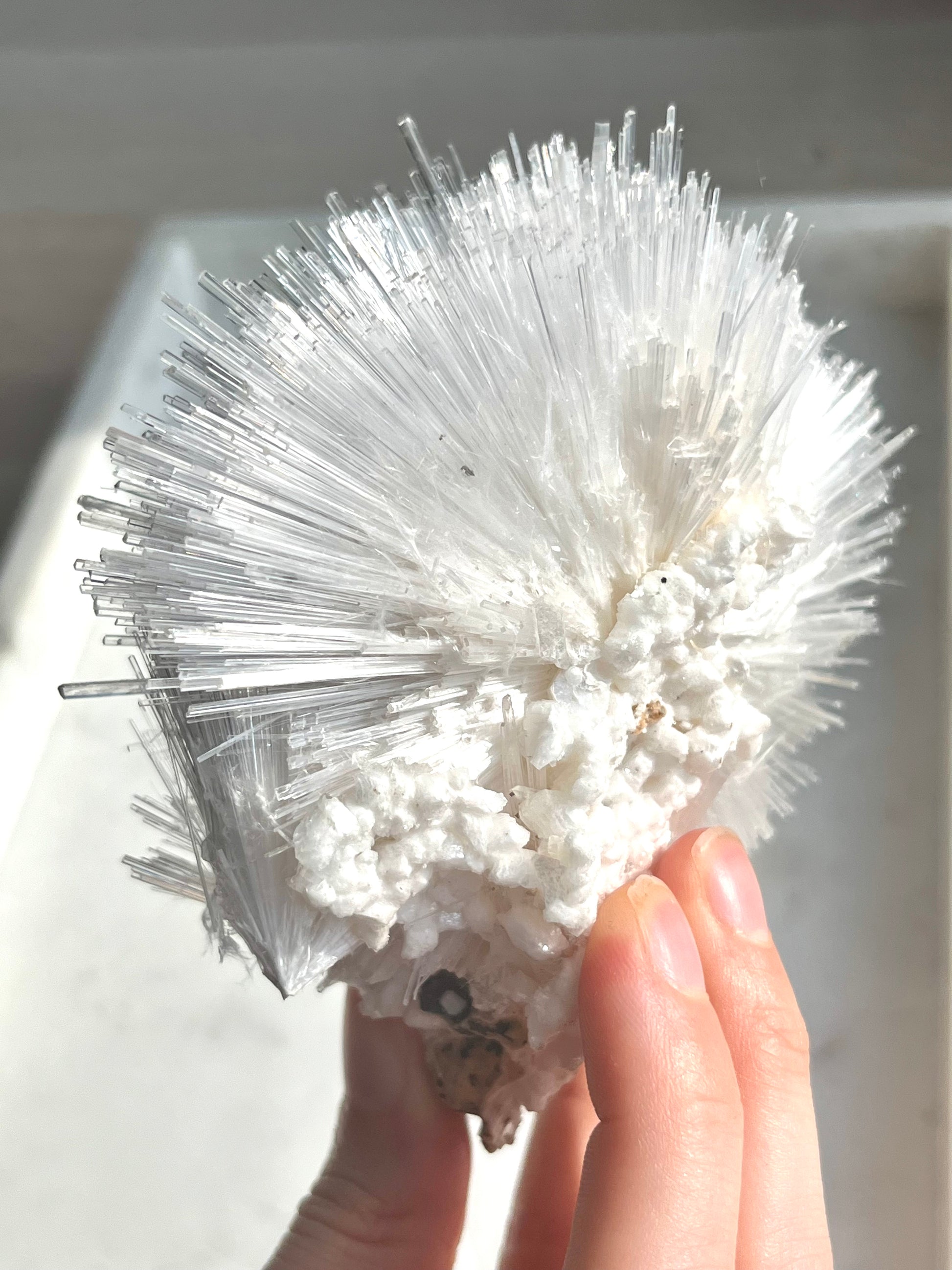 Nota: La mesolita es un ejemplar mineral delicado, por lo que tener algunos puntos sueltos al llegar es muy normal. Priestess Crystals emplea un cuidado extremo y un embalaje especial para garantizar que llegue seguro a usted.