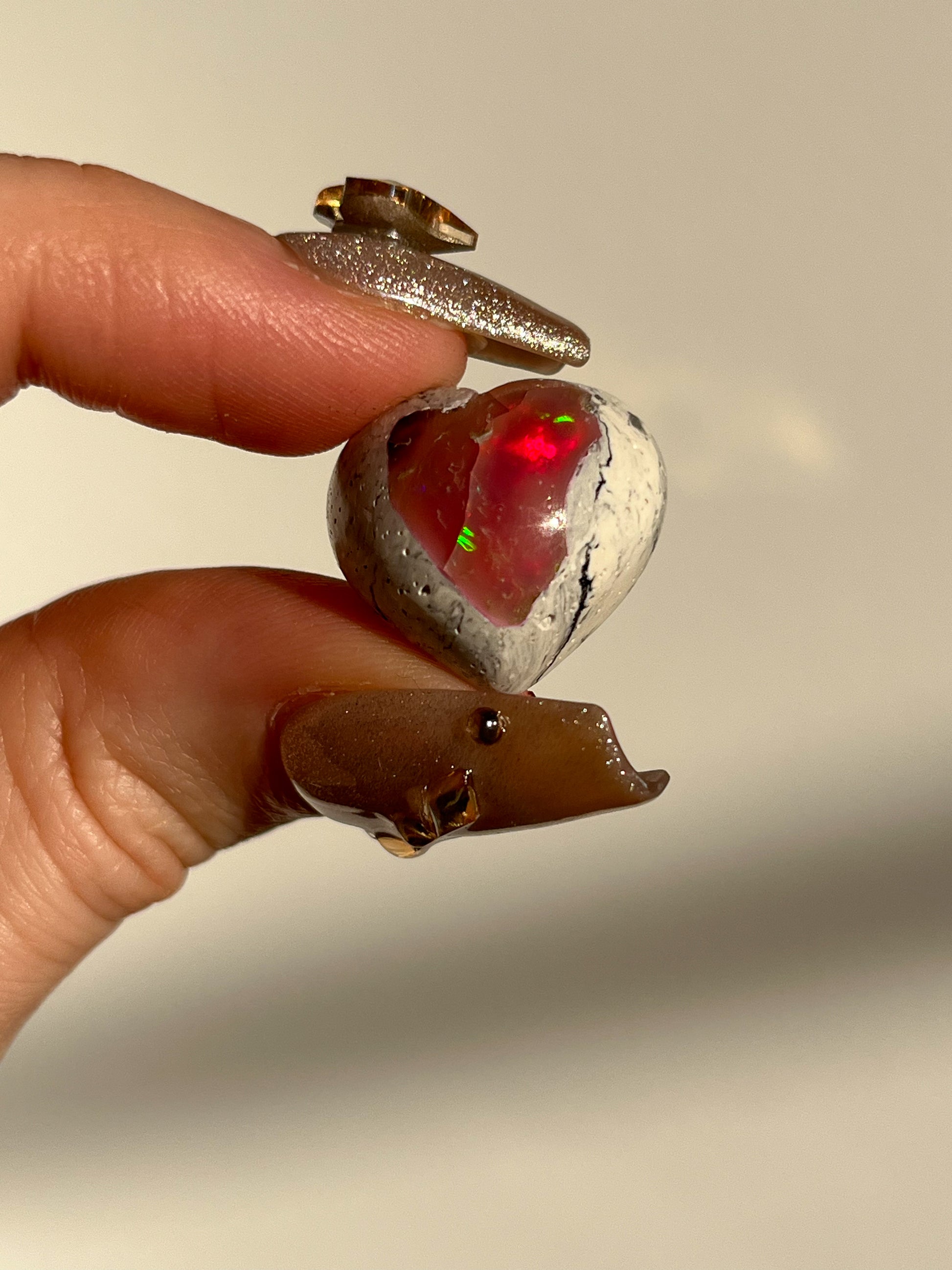 Mexican Fire Opal Heart Carving w/ Dendritic Inclusions #24