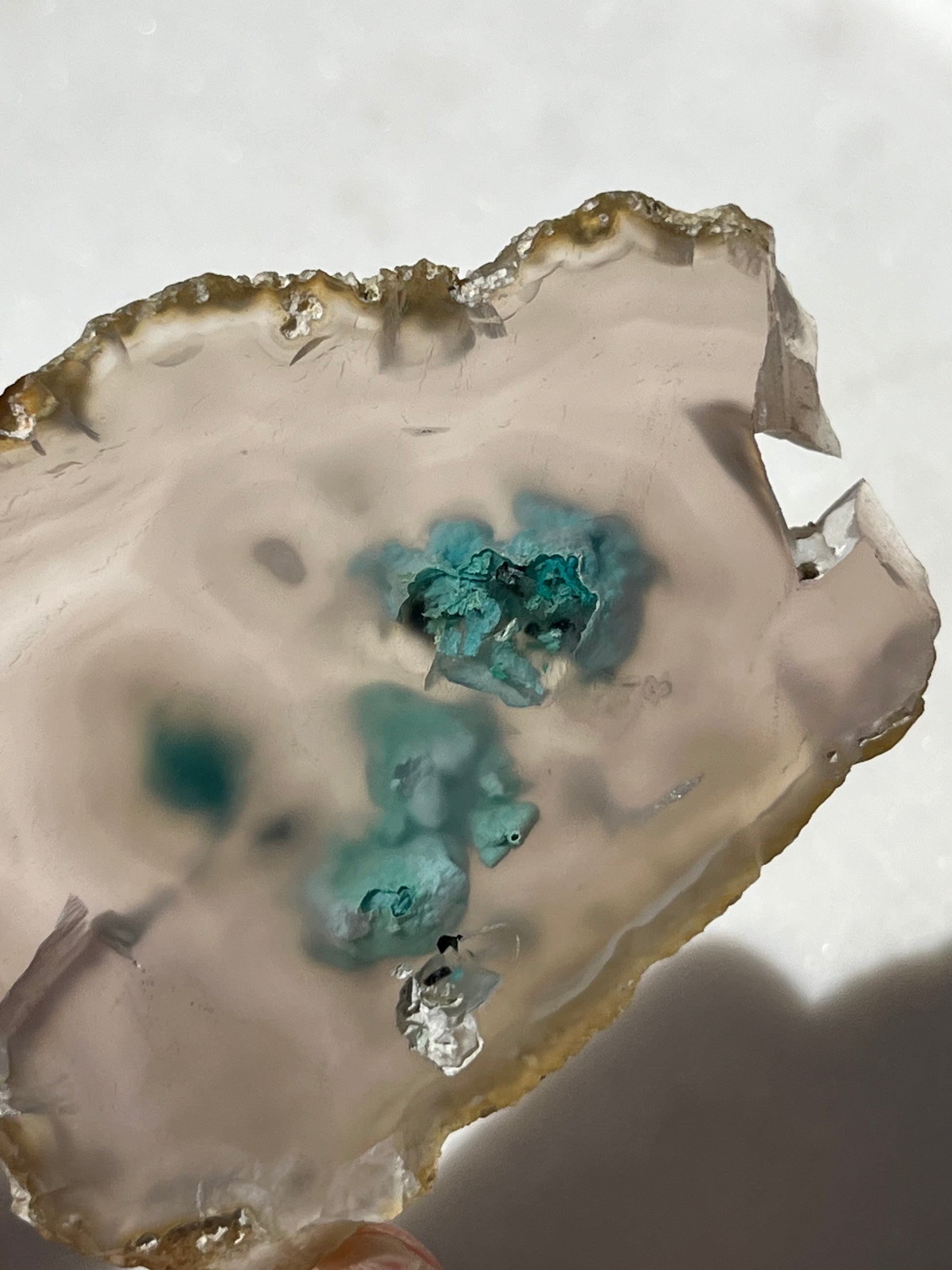 Chrysocolla in Chalcedony Slice w/Dendritic Inclusions