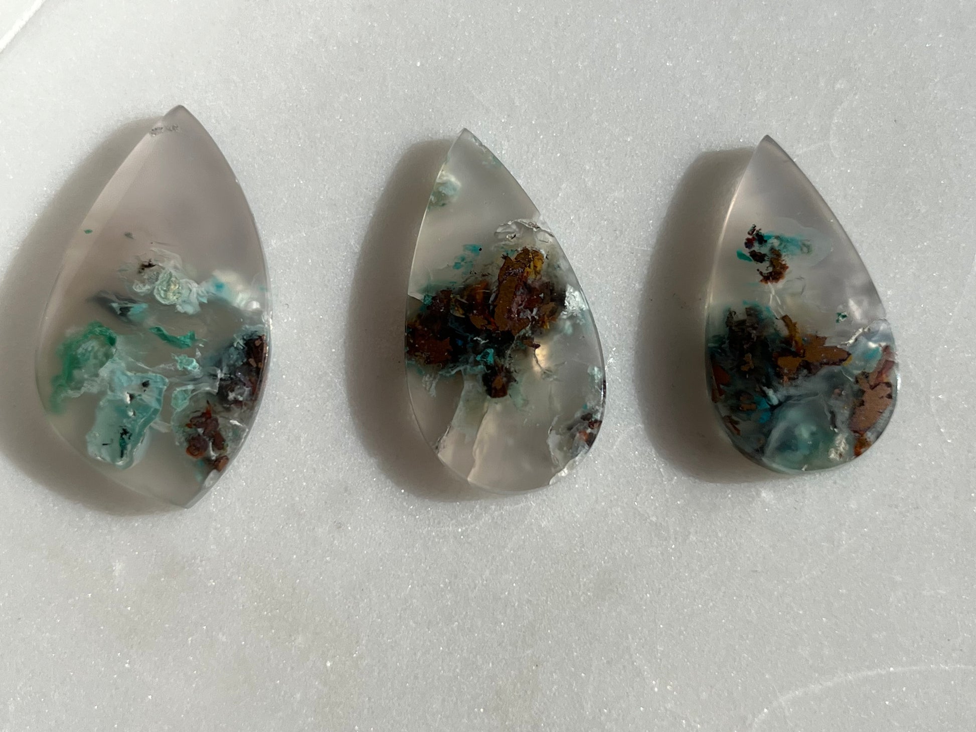 Cobre nativo y crisocola en cabujón de lágrima de calcedonia (usted elige)